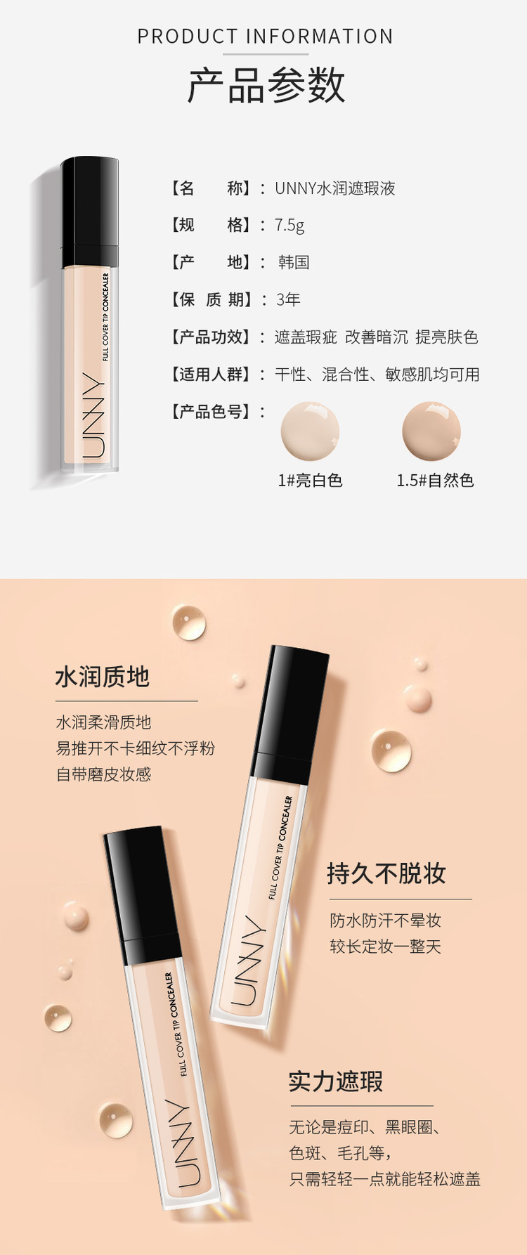 【中欧班列精选】unny遮瑕液/李佳琦推荐/三色可选遮瑕膏/遮盖脸部斑点黑眼圈打造完美妆容