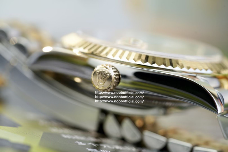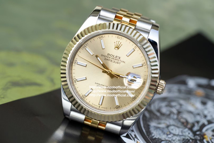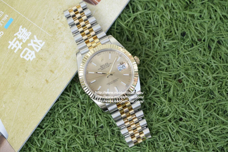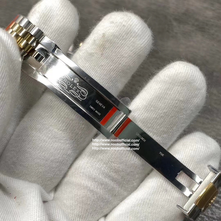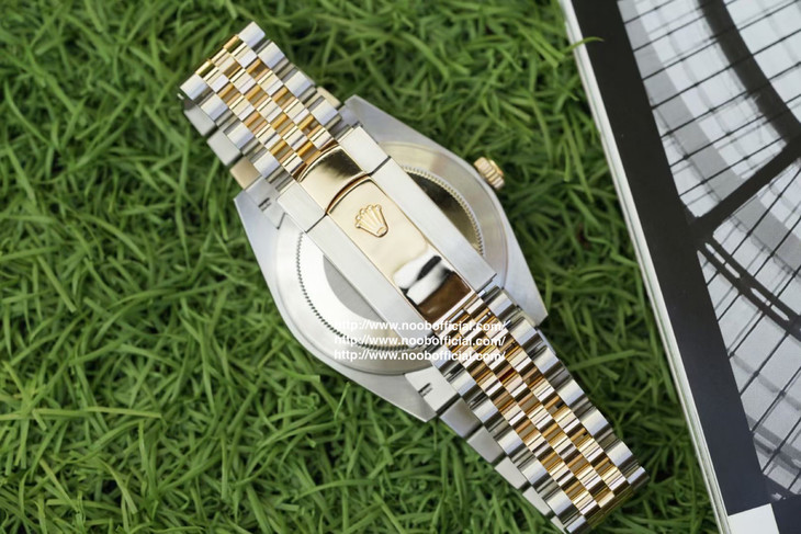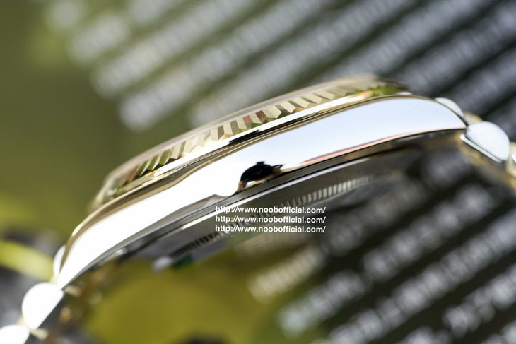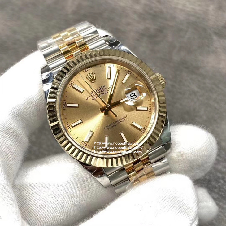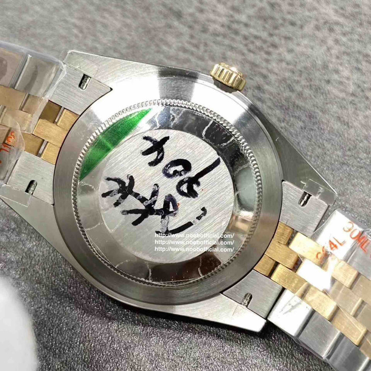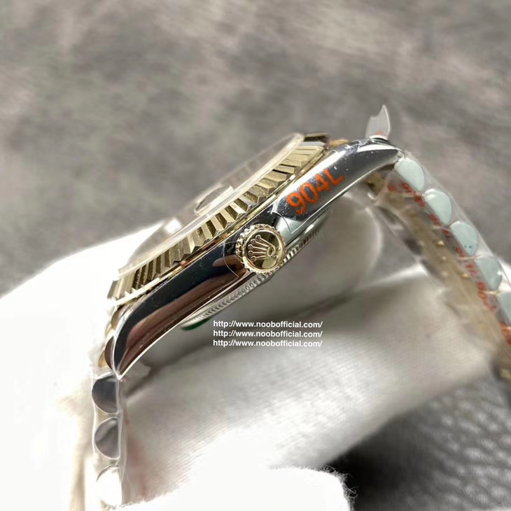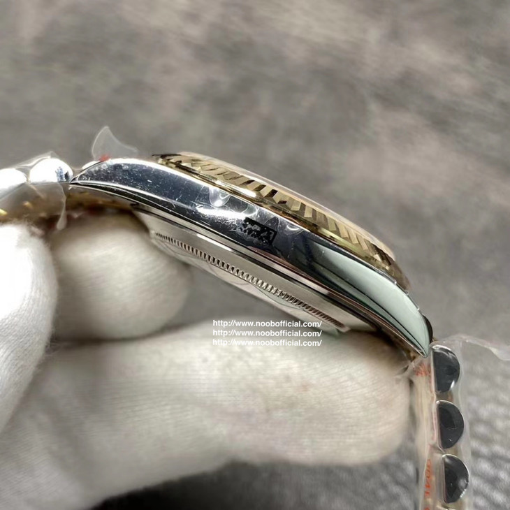 Noob劳力士日志型41mm副本以及修正近年间三角抗纹外圈包金度不够的问题,表壳用精钢材并采用真K金包金用来解决金表变暗、掉色、掉皮的尴尬问题,搭载客户订制的ETA进口2836机芯