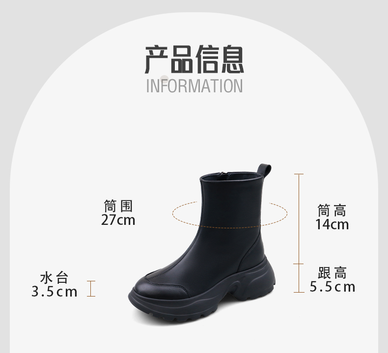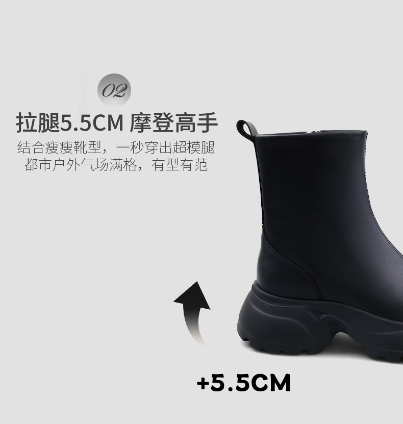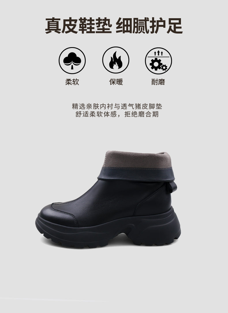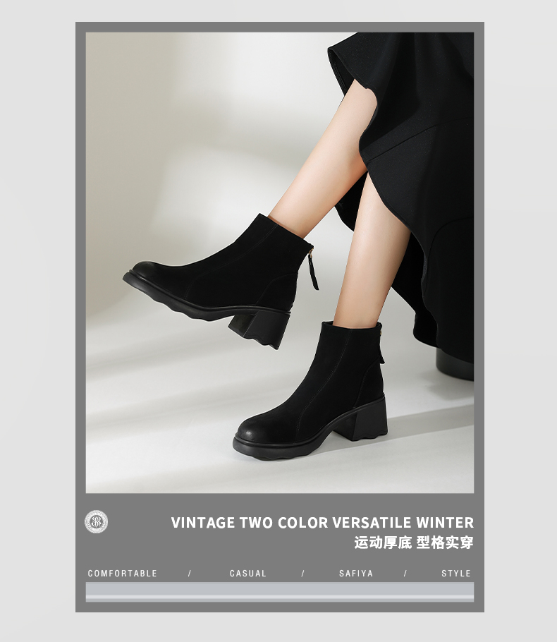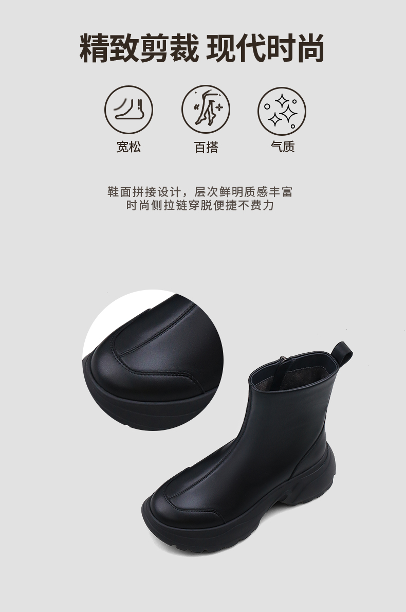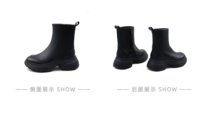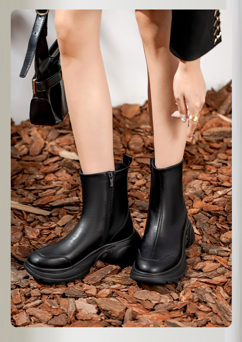 Safiya/索菲娅2024秋冬时尚圆头侧拉链百搭厚底户外运动风短靴 SF44116402