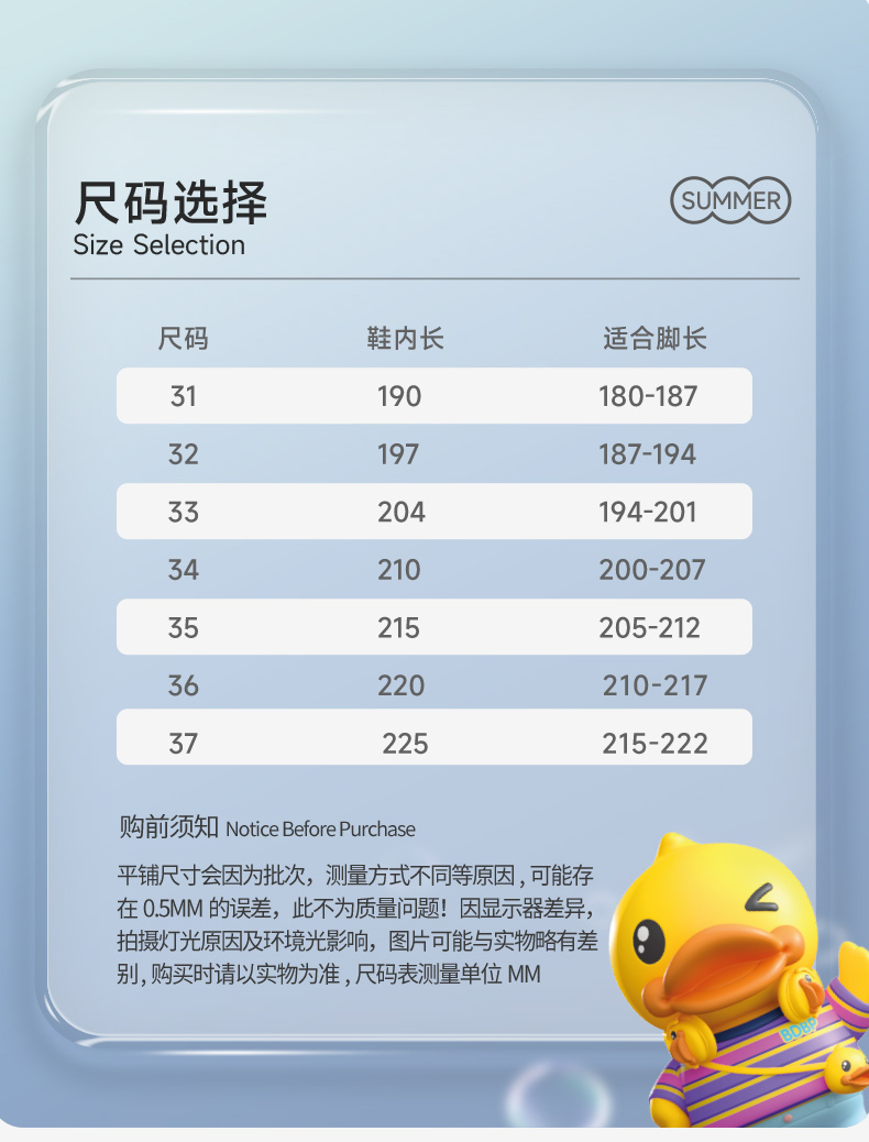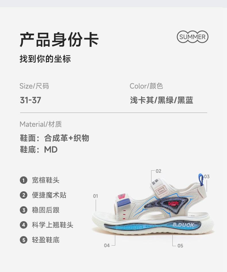 B.Duck小黄鸭童鞋夏季儿童凉鞋31-37 B2485021