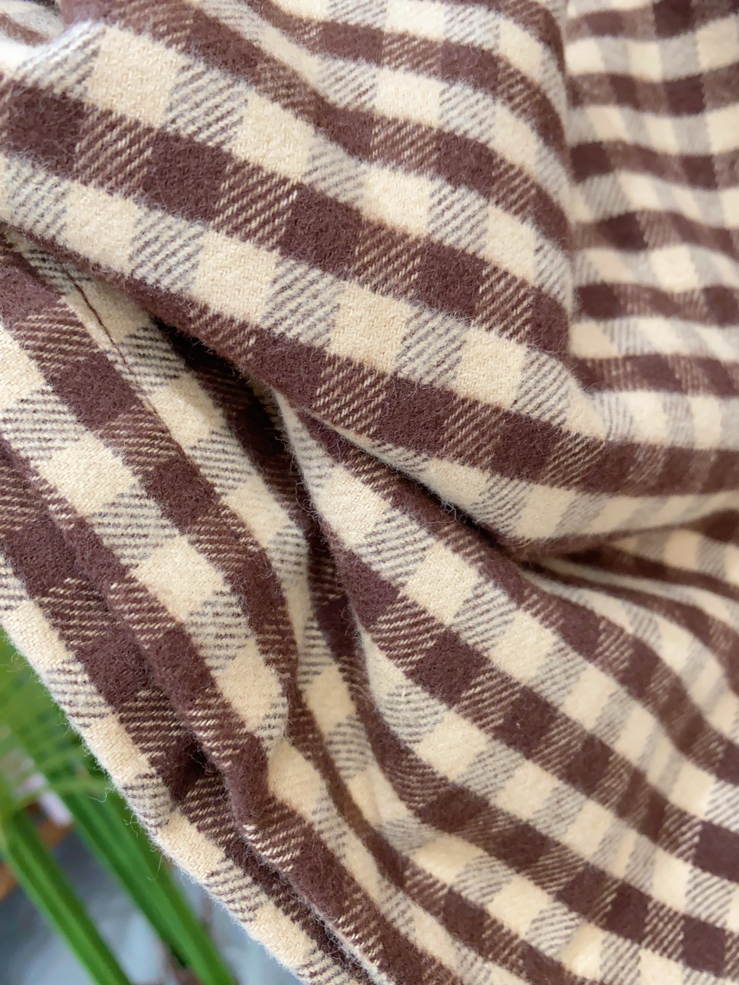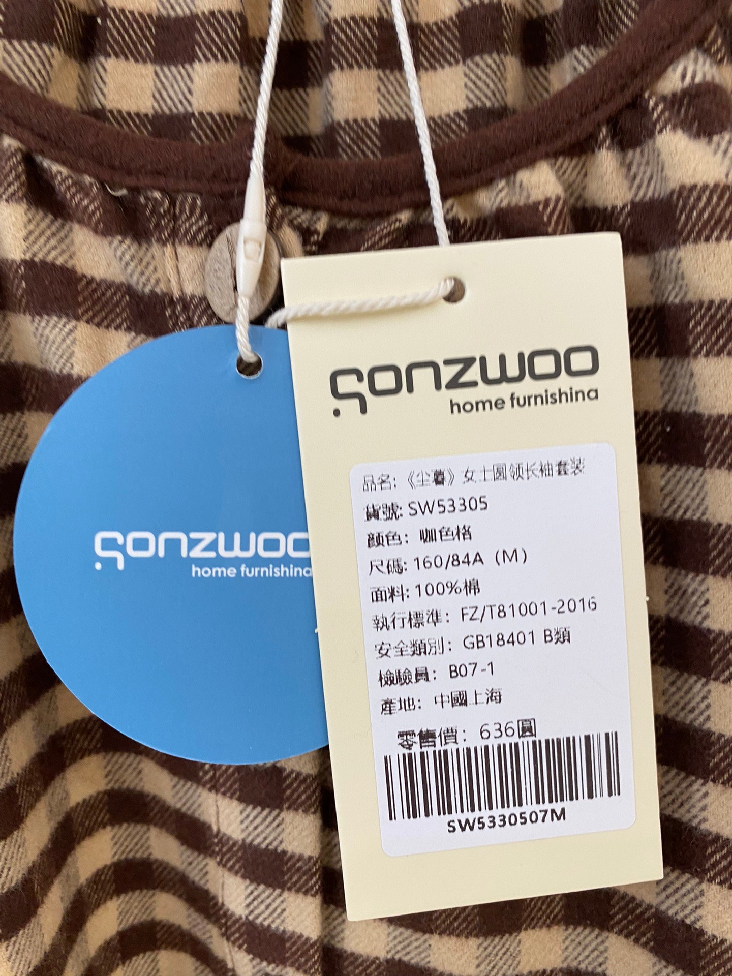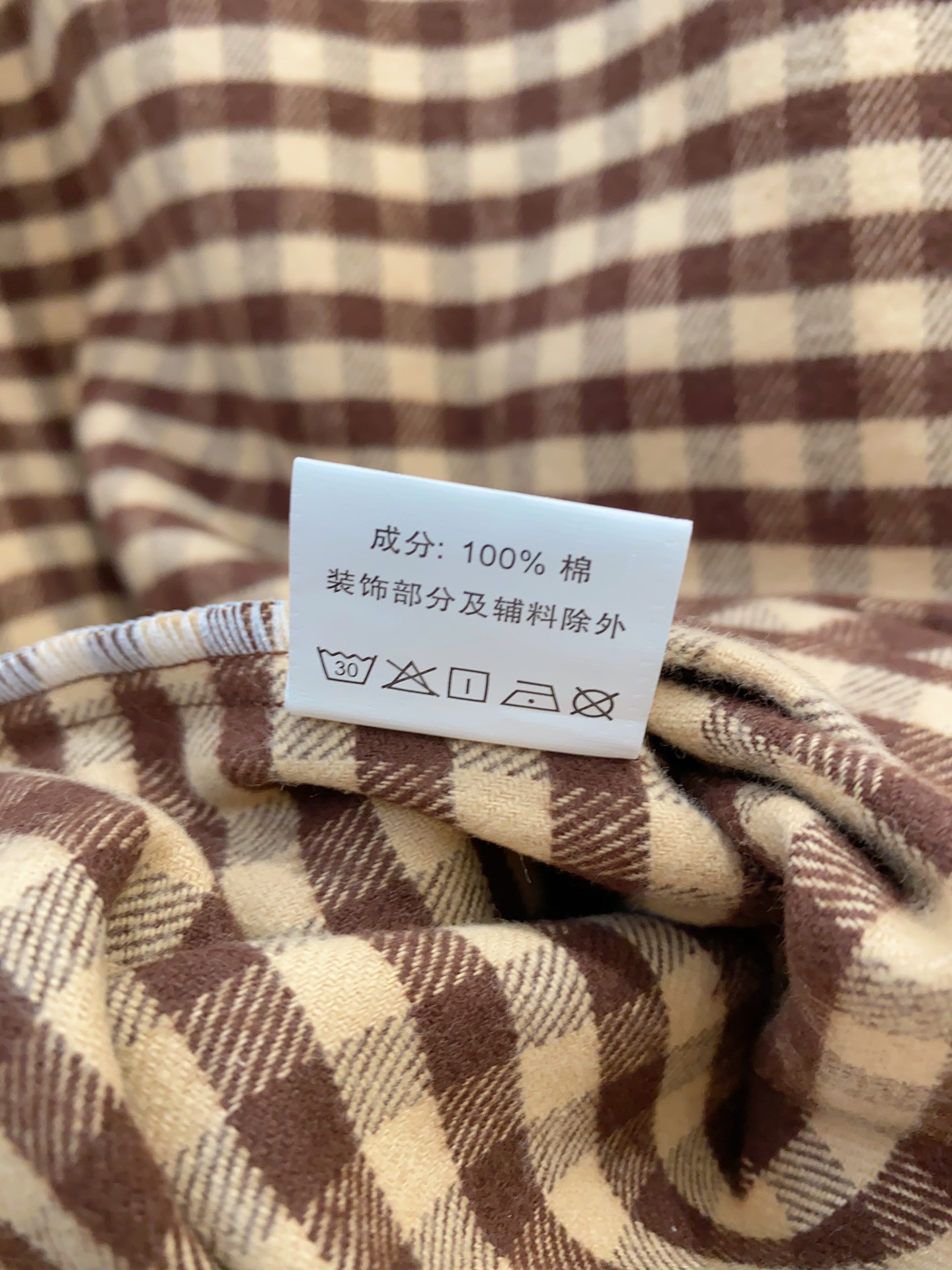 100%棉加厚磨毛,告别秋冬冰凉。 ·经典复古咖格,点缀萌趣小狗刺绣,简约中流露巧思。 · 宽松溜肩圆领上衣+松紧腰裤,行动无拘束,温暖不厚重