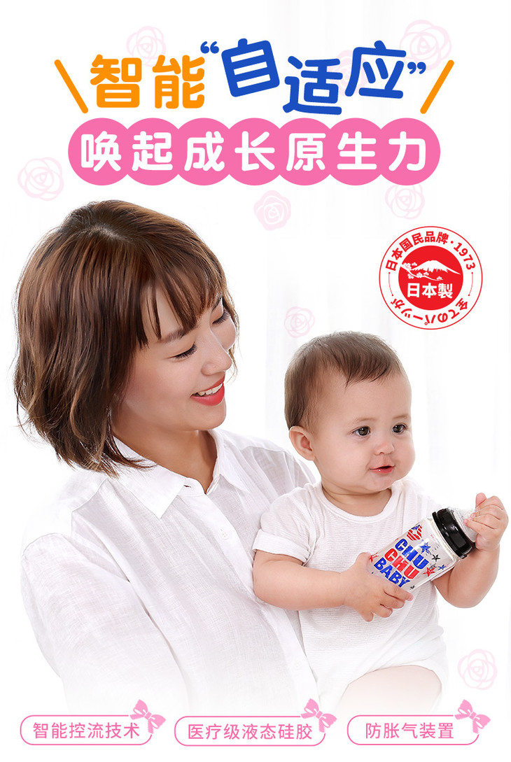 (超值)日本原装chuchubaby啾啾 十字孔硅胶宽口可爱妈妈奶嘴 仿母乳实感