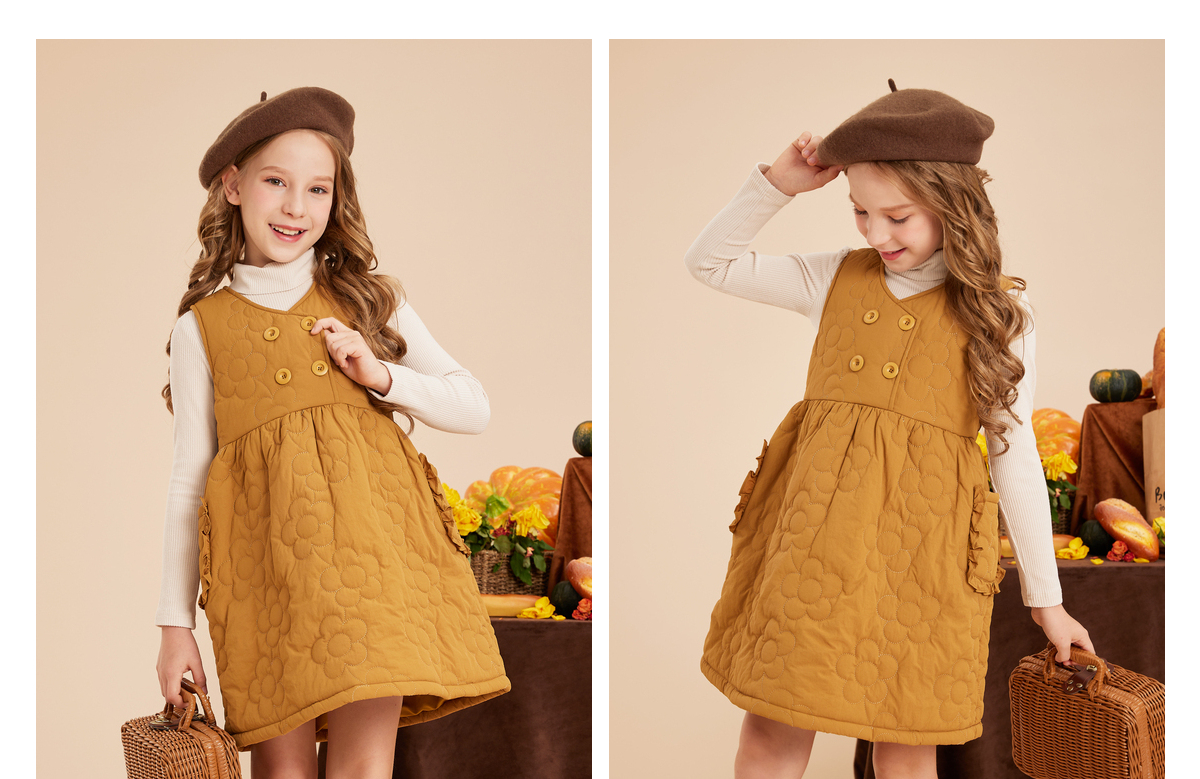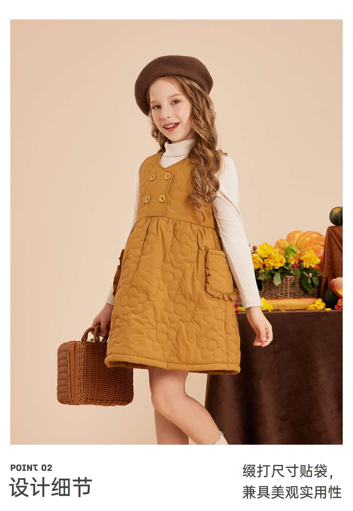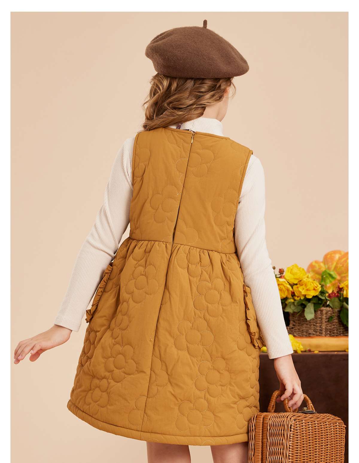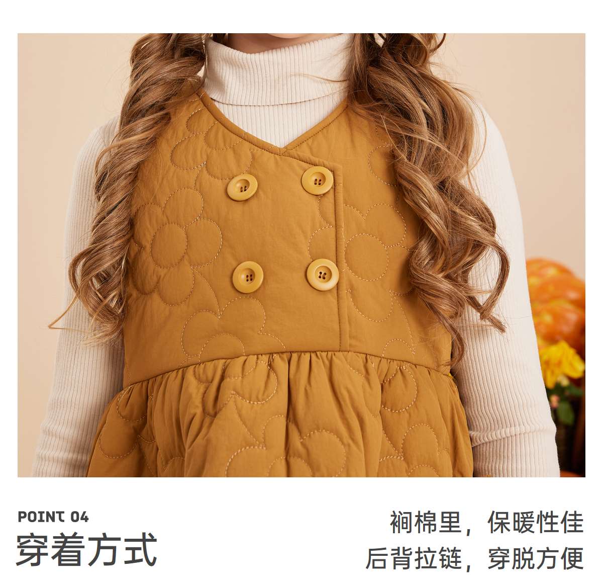 littletime女童花朵背心裙秋冬加厚保暖儿童背心连衣裙