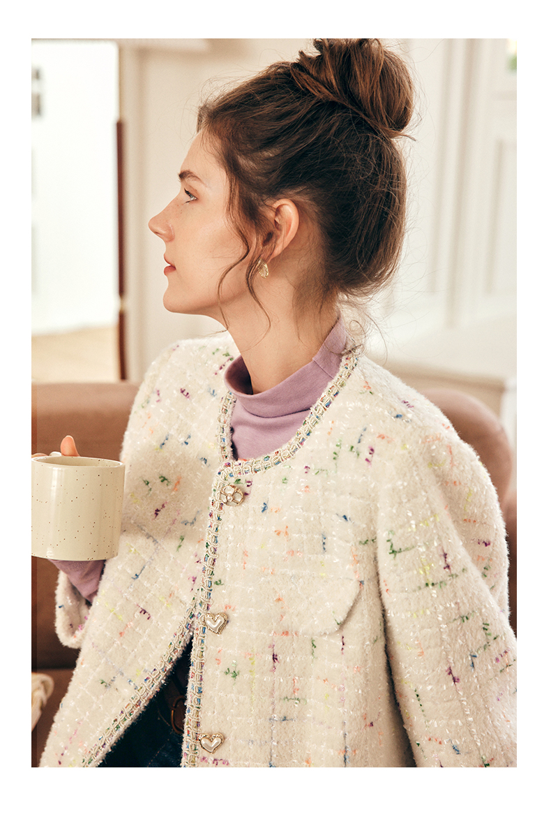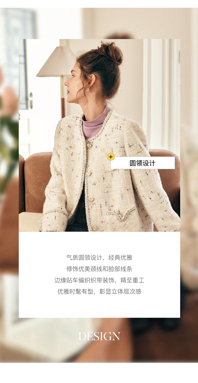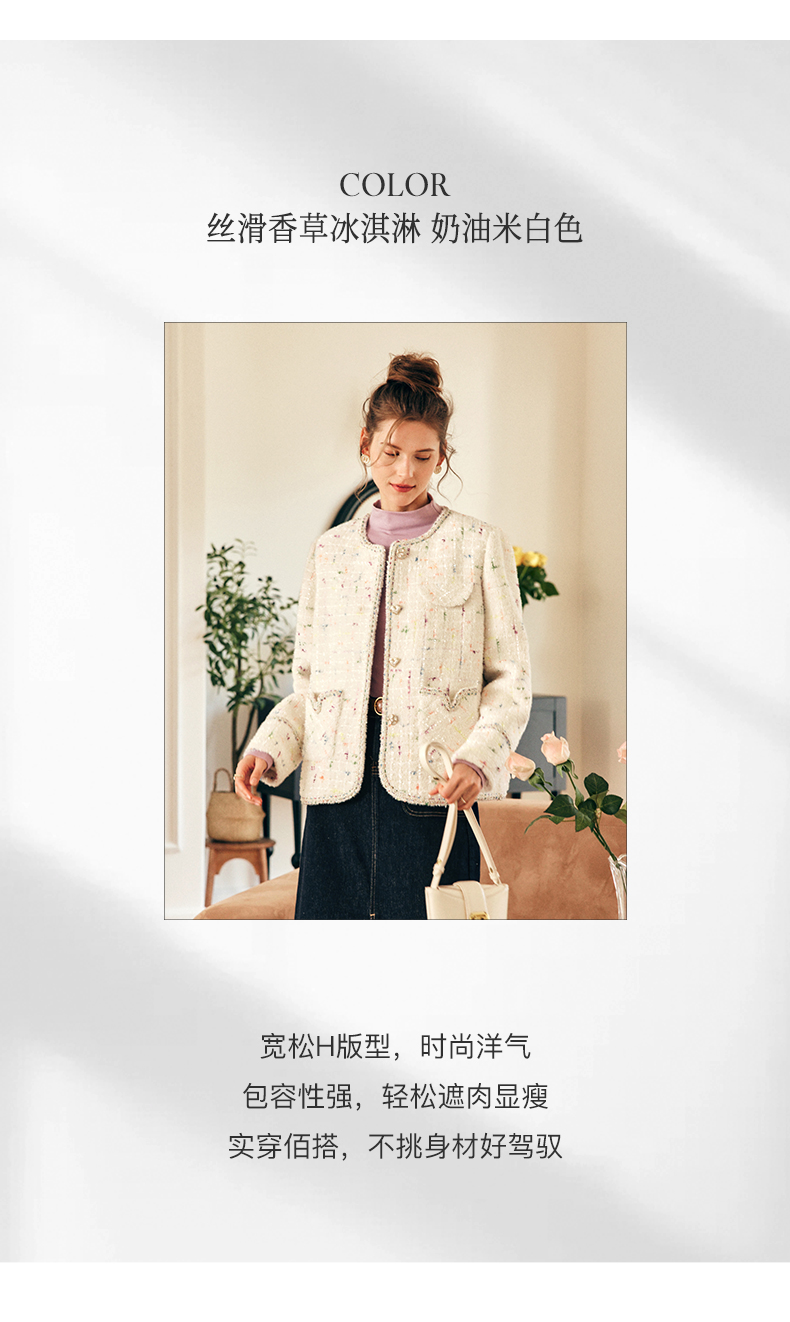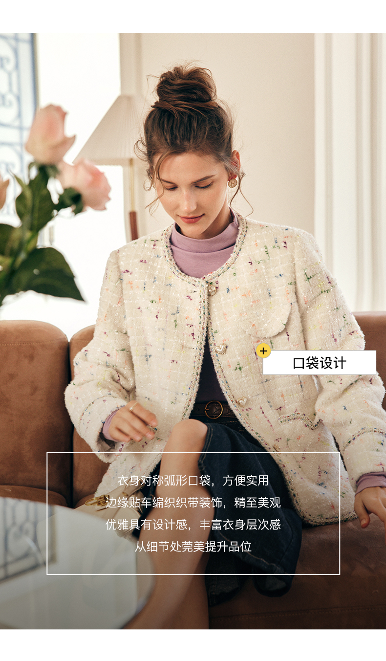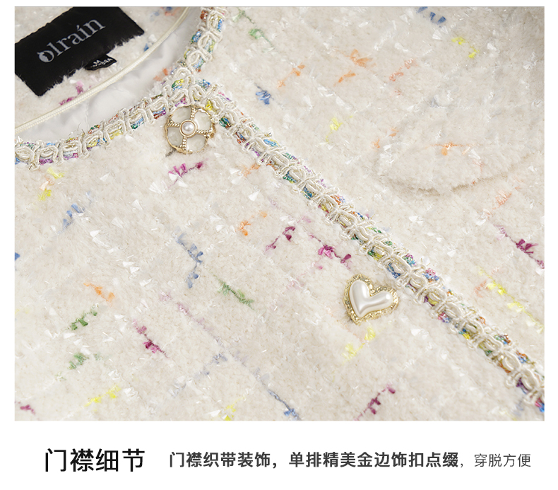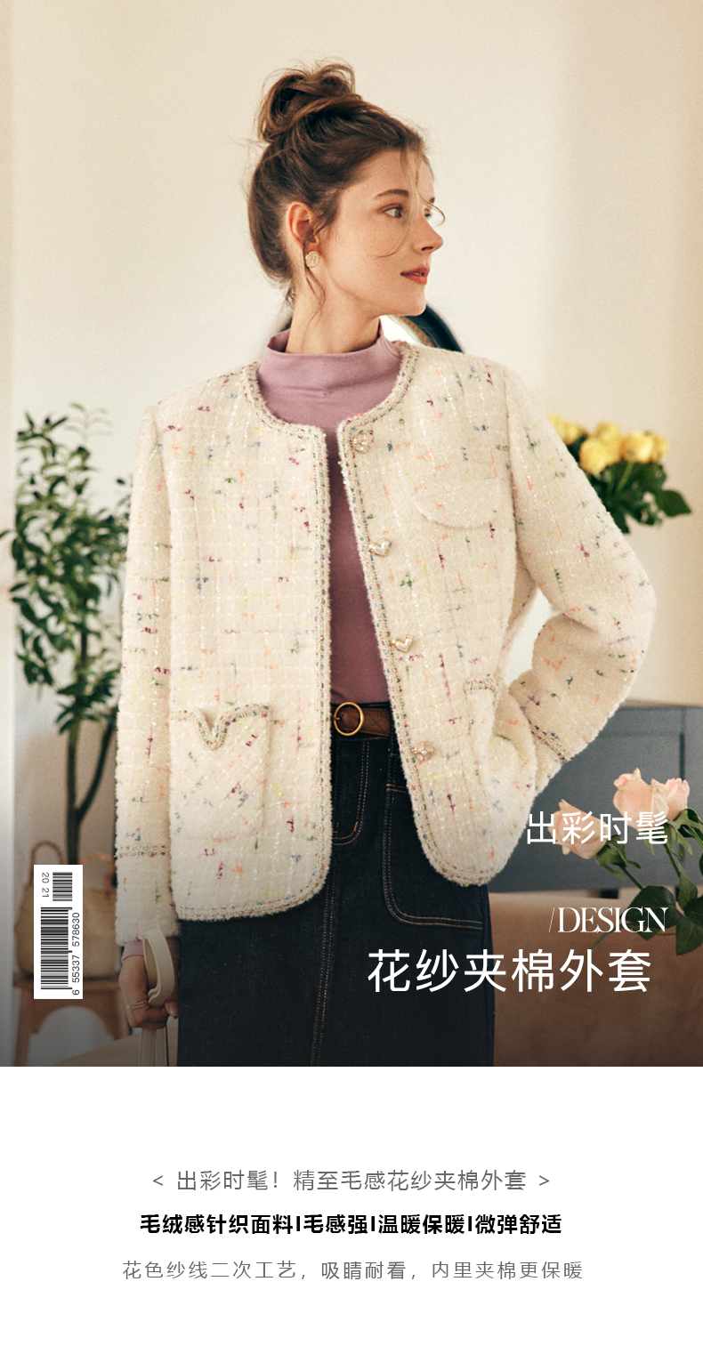 欧芮儿花纱夹棉外套毛绒感针织面料出彩时髦
