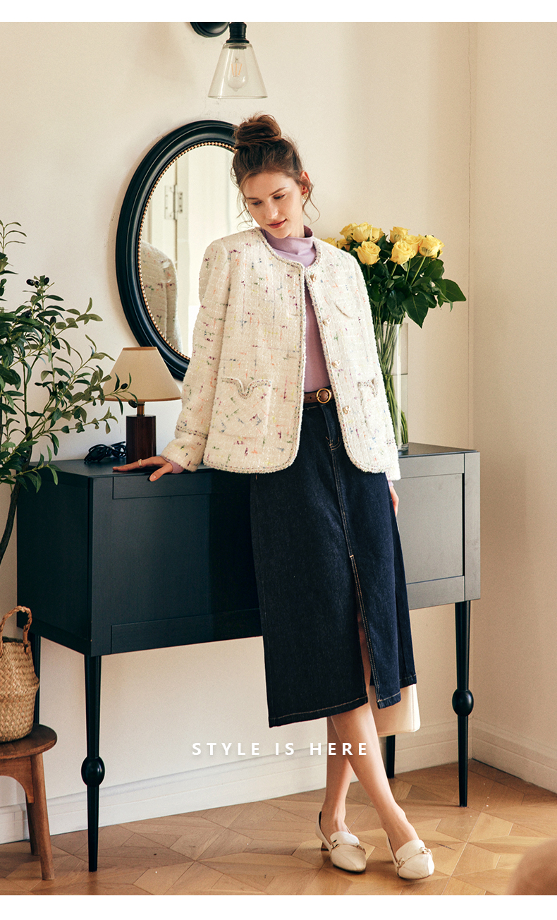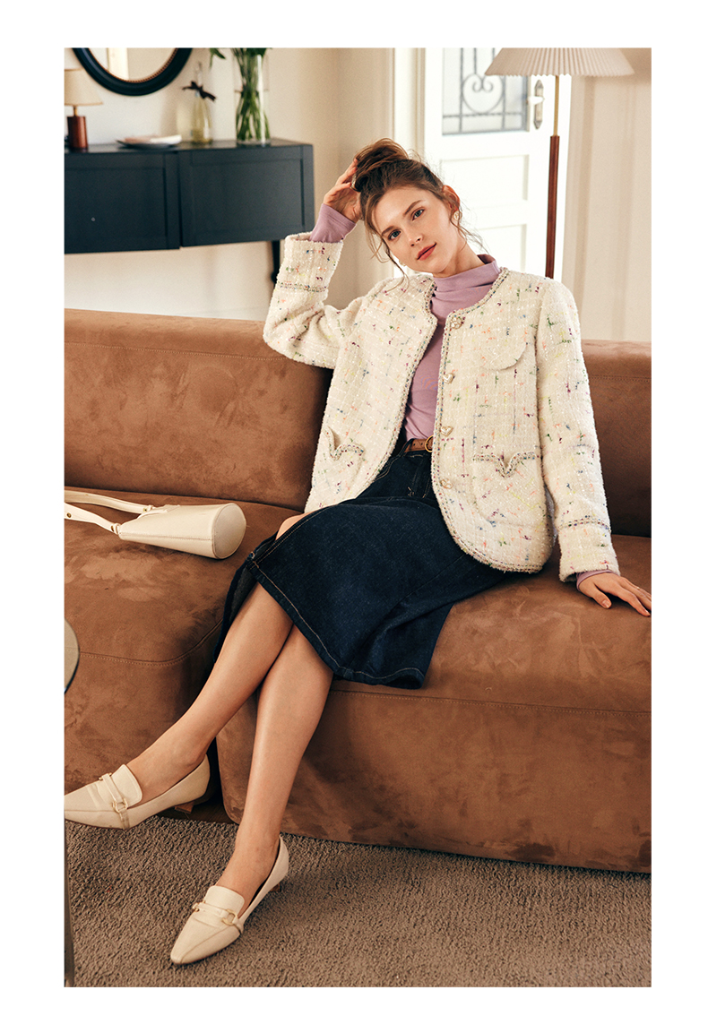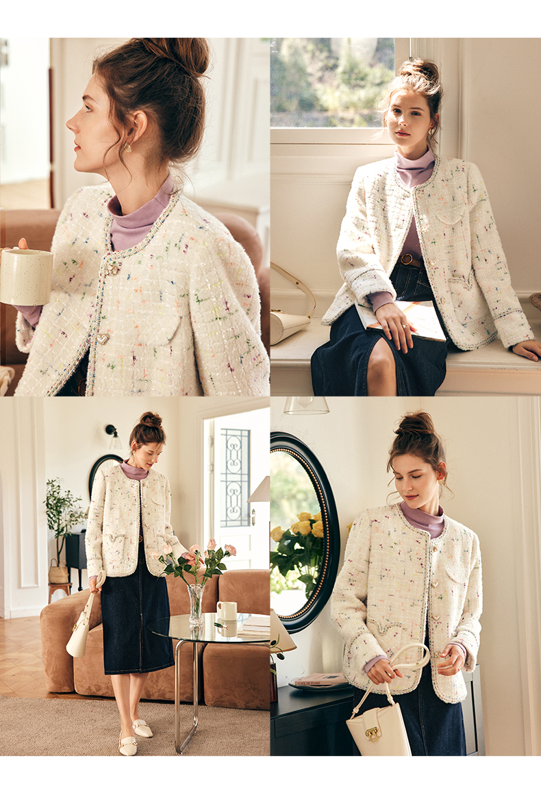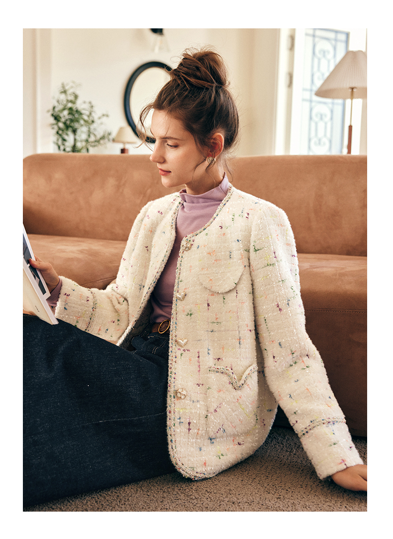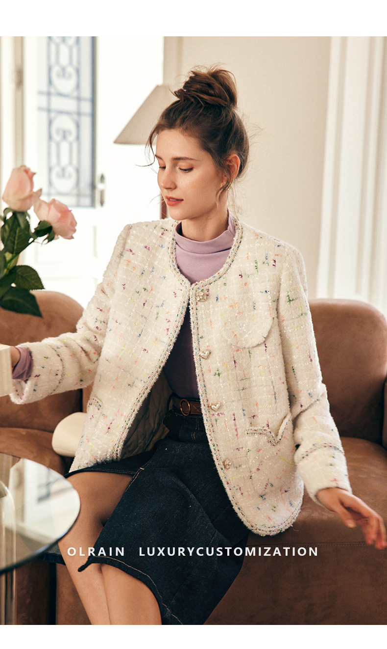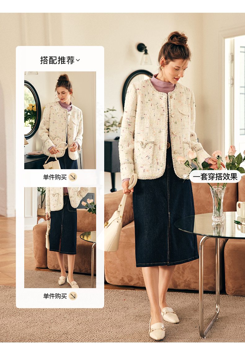 欧芮儿花纱夹棉外套毛绒感针织面料出彩时髦
