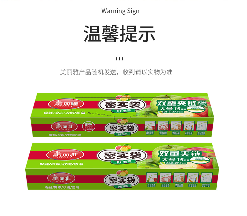 美丽雅双拉链密封袋加厚一次性食品冰箱保鲜收纳