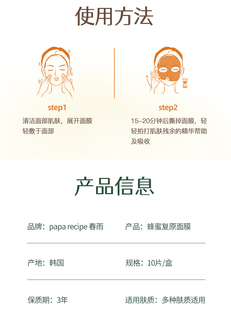 韩国春雨 蜂蜜复原面膜(10片装)