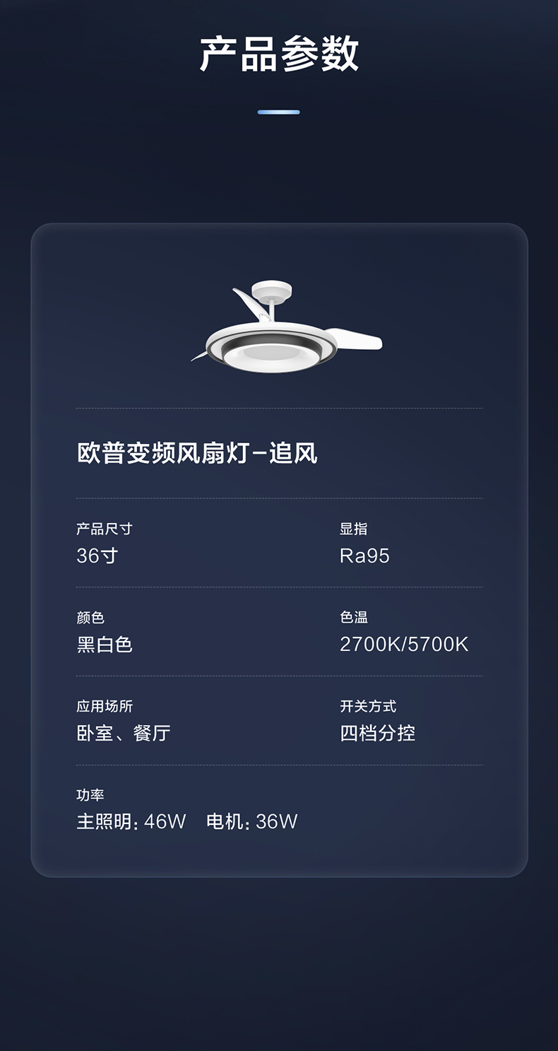 欧普(OPPLE)追风餐厅风扇灯现代简约线面卧室隐形吊扇灯