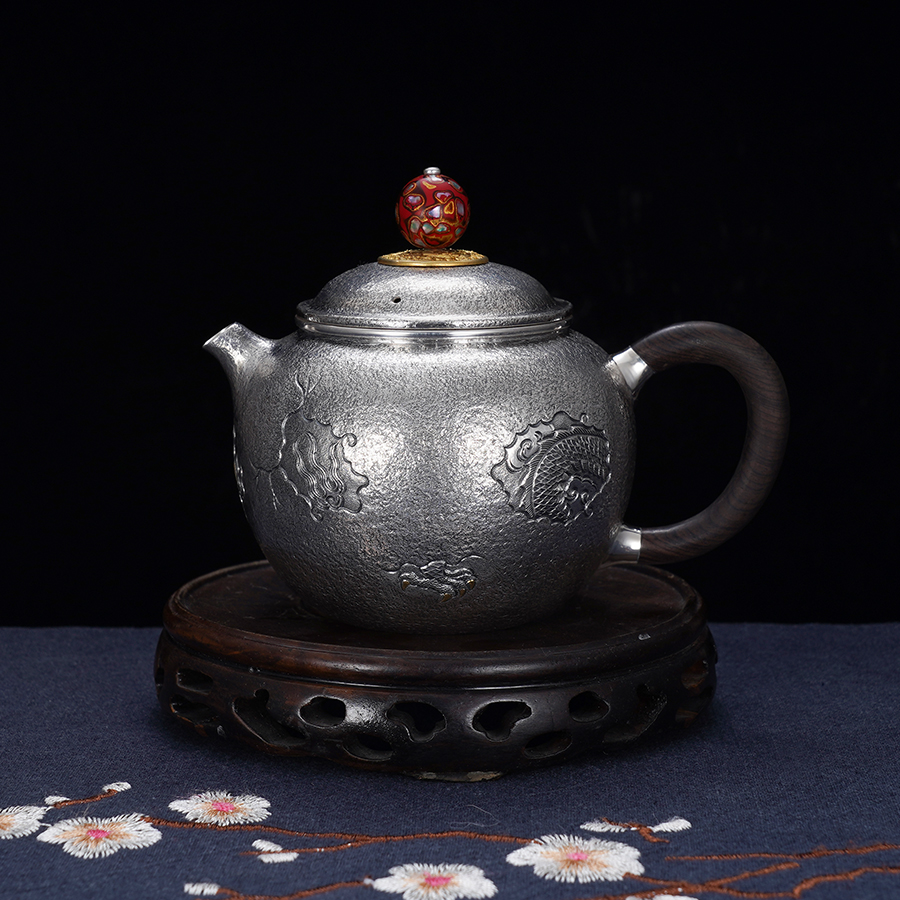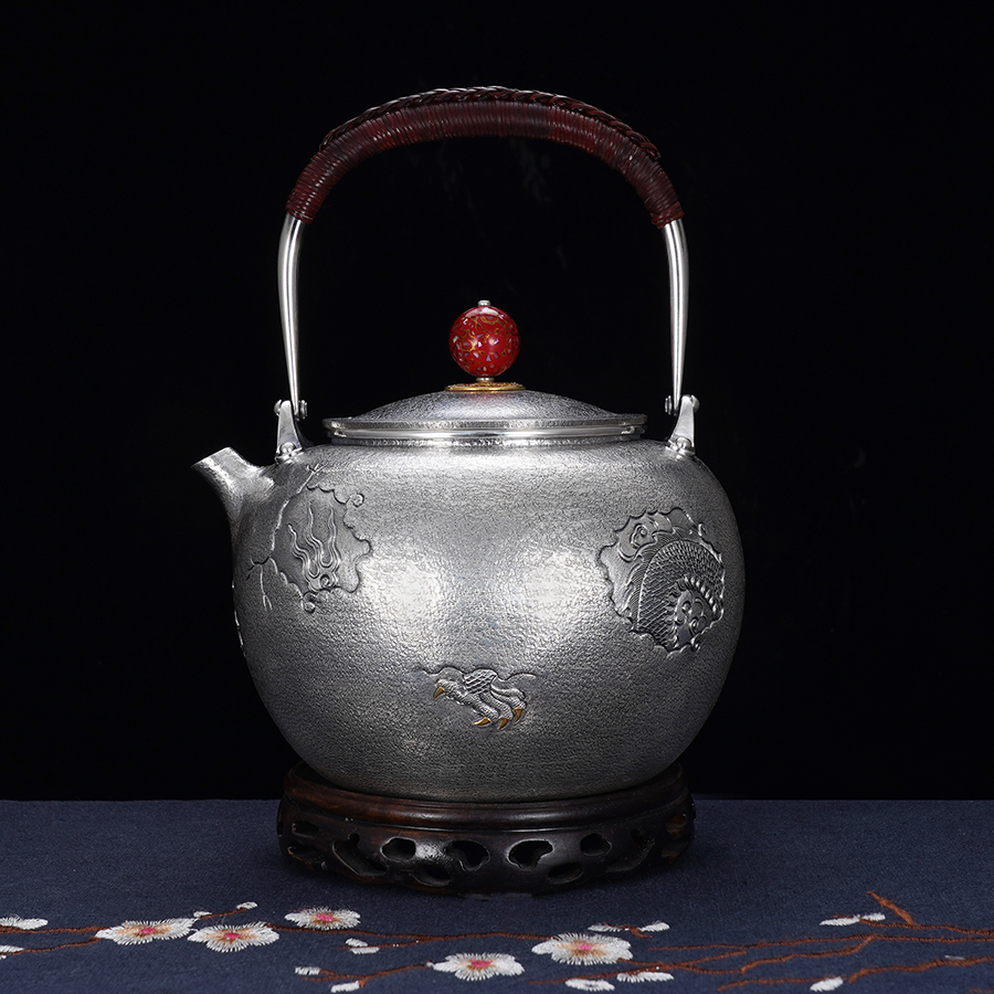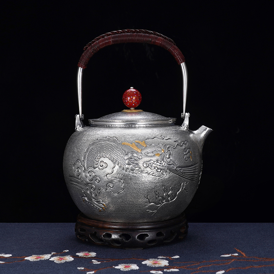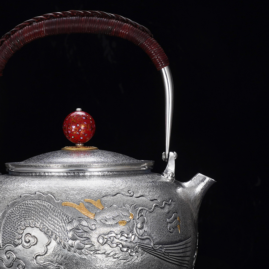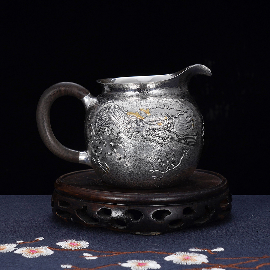 子佩集S990【蛟龙得水】提梁壶小茶壶公道杯摆件套装【MH007】【MH008】【MH009】纯银茶具原创作品2502