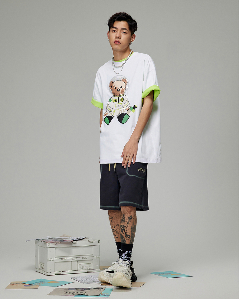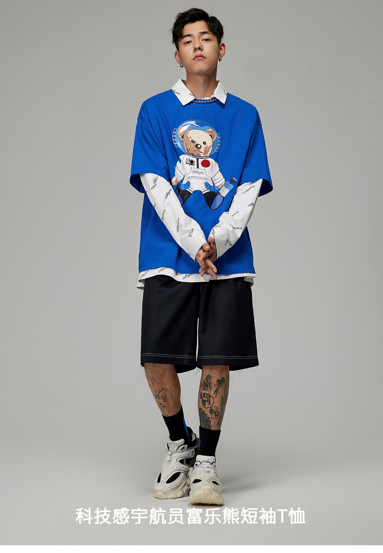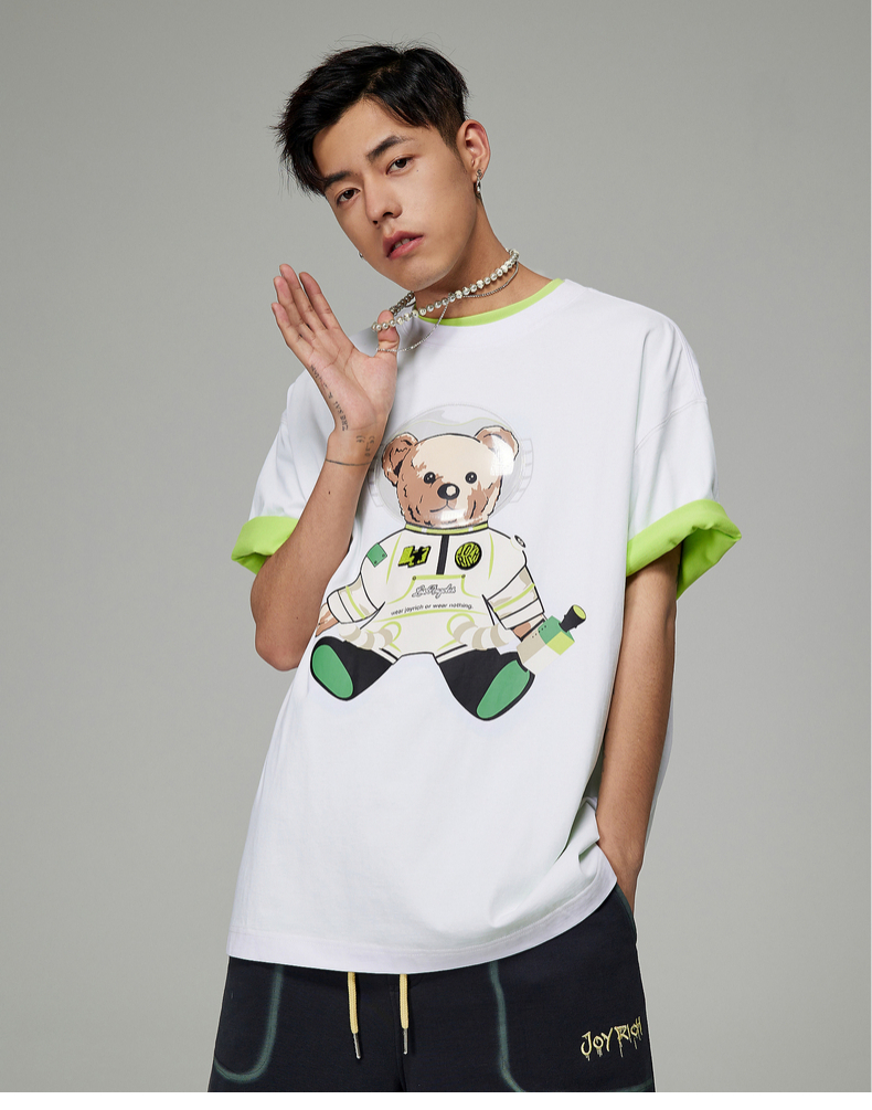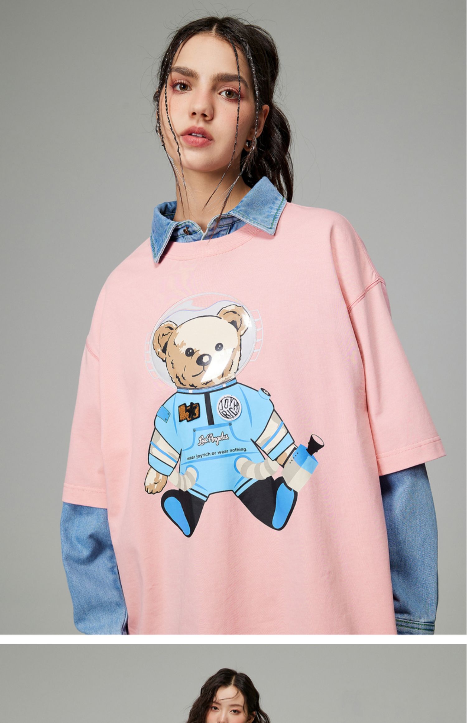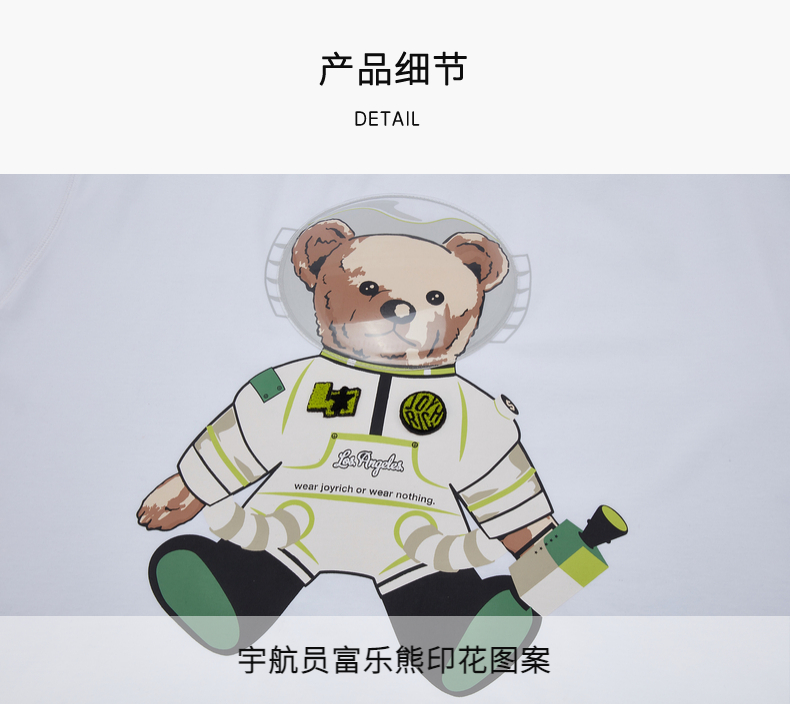 JOYRICH官方早春男女情侣款科技感宇航员富乐熊潮流休闲短袖T恤