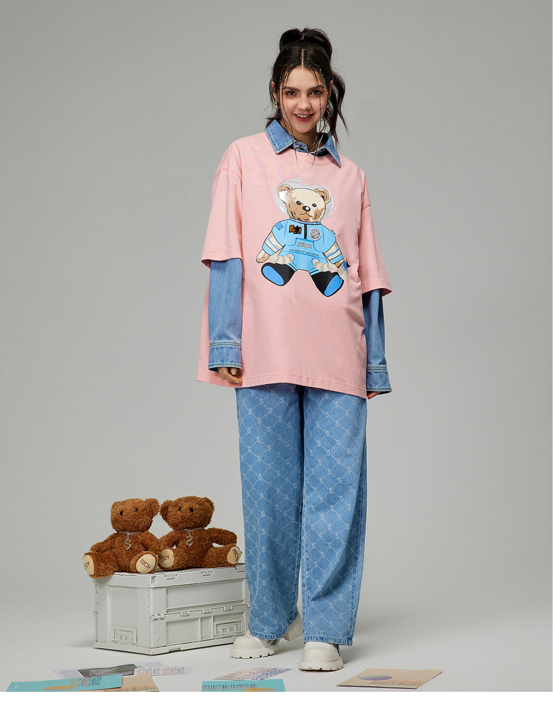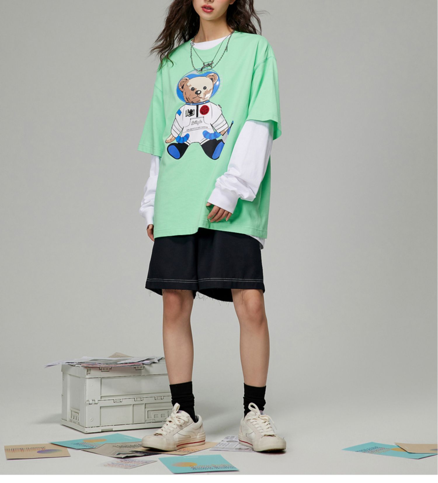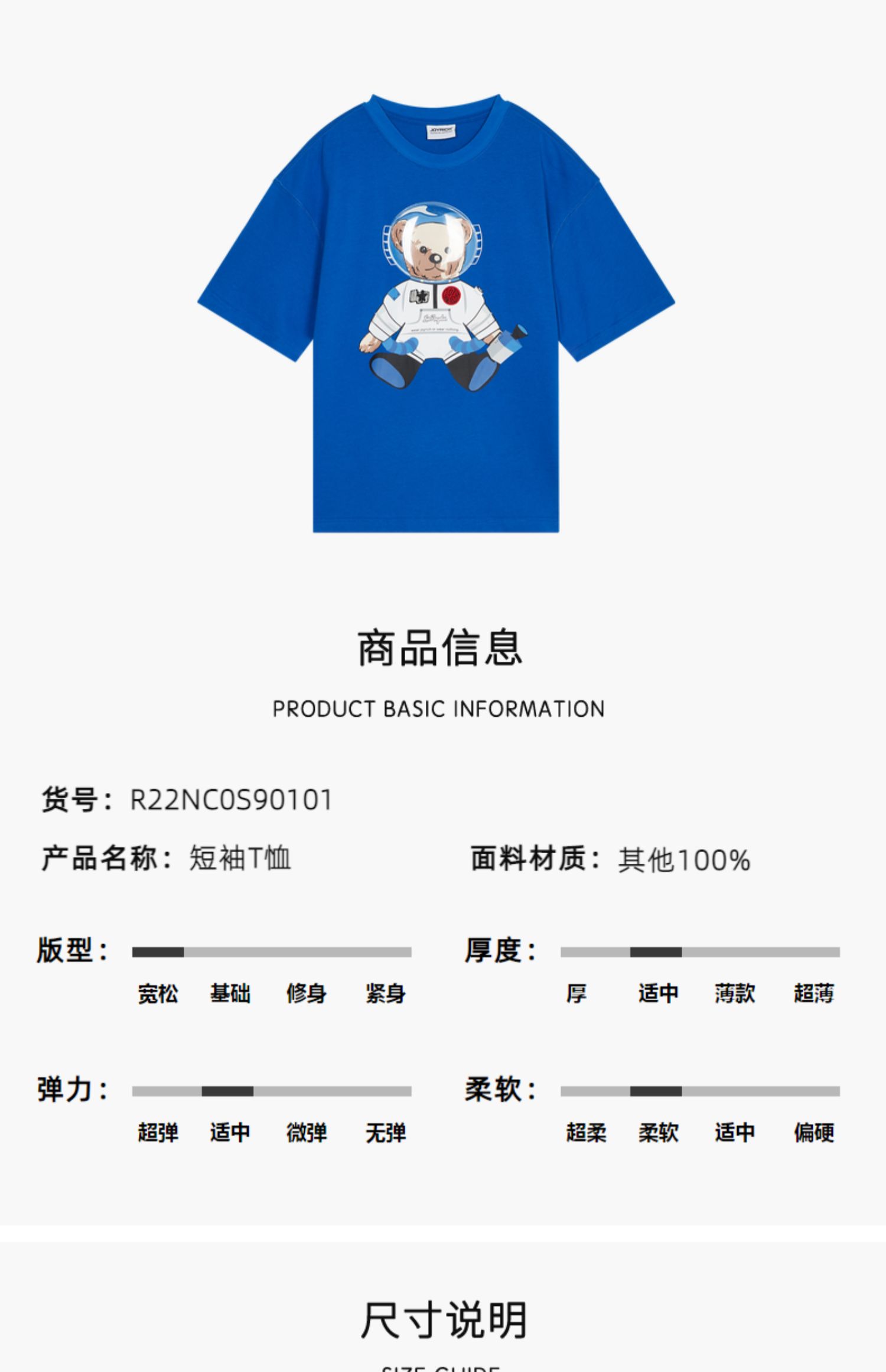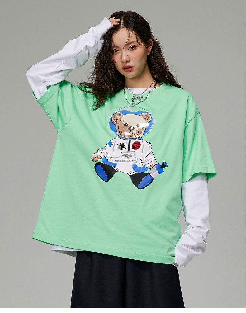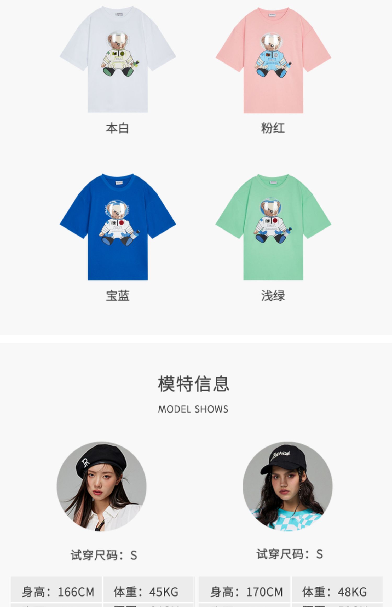 JOYRICH官方早春男女情侣款科技感宇航员富乐熊潮流休闲短袖T恤