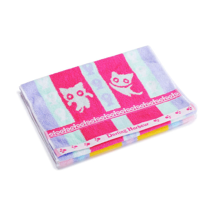 蜜儿港猫和小鱼缎档提花面巾/黄AS253#33*72