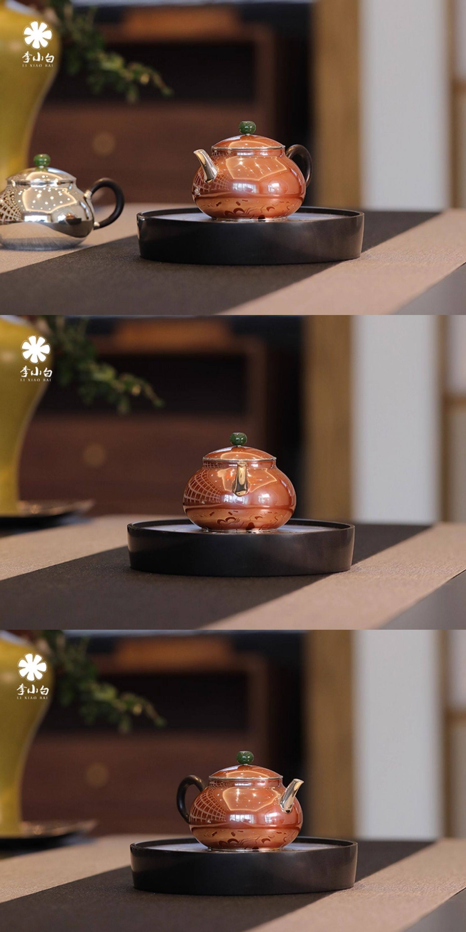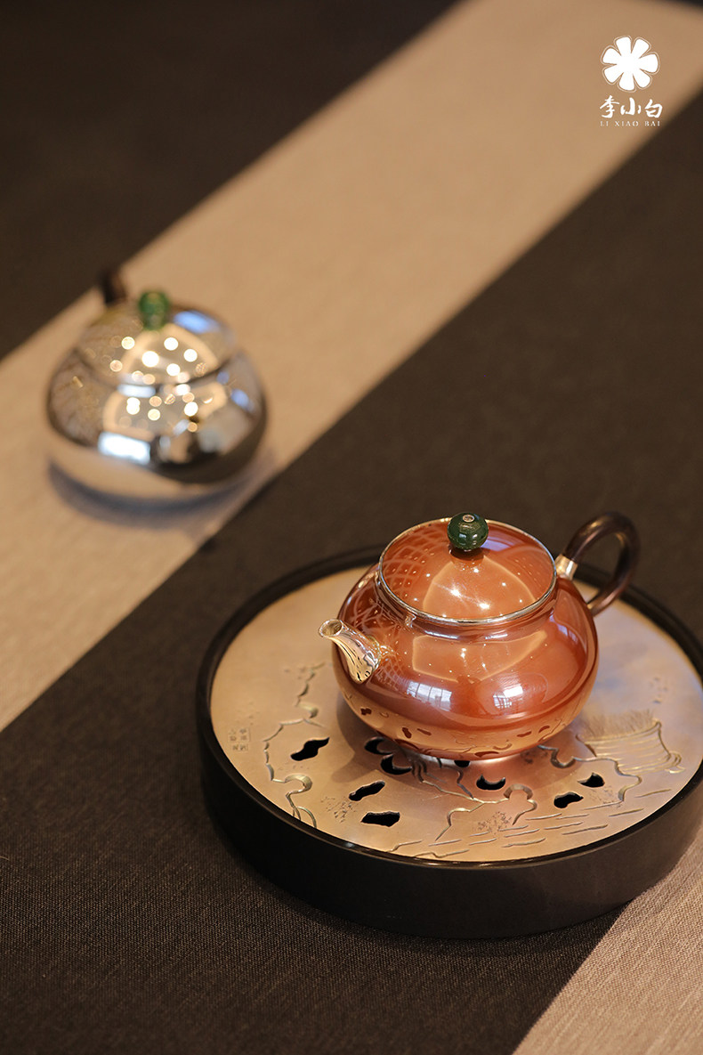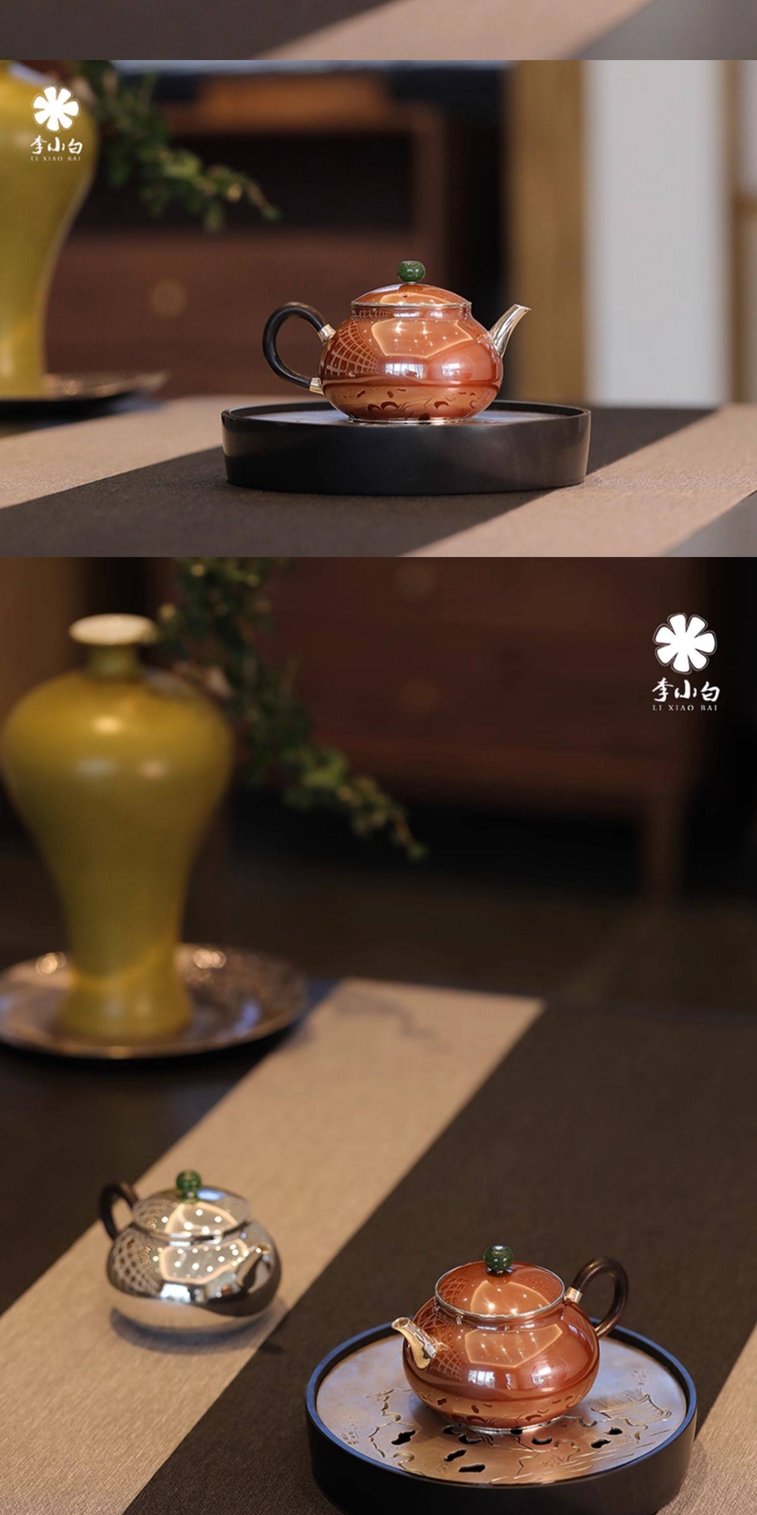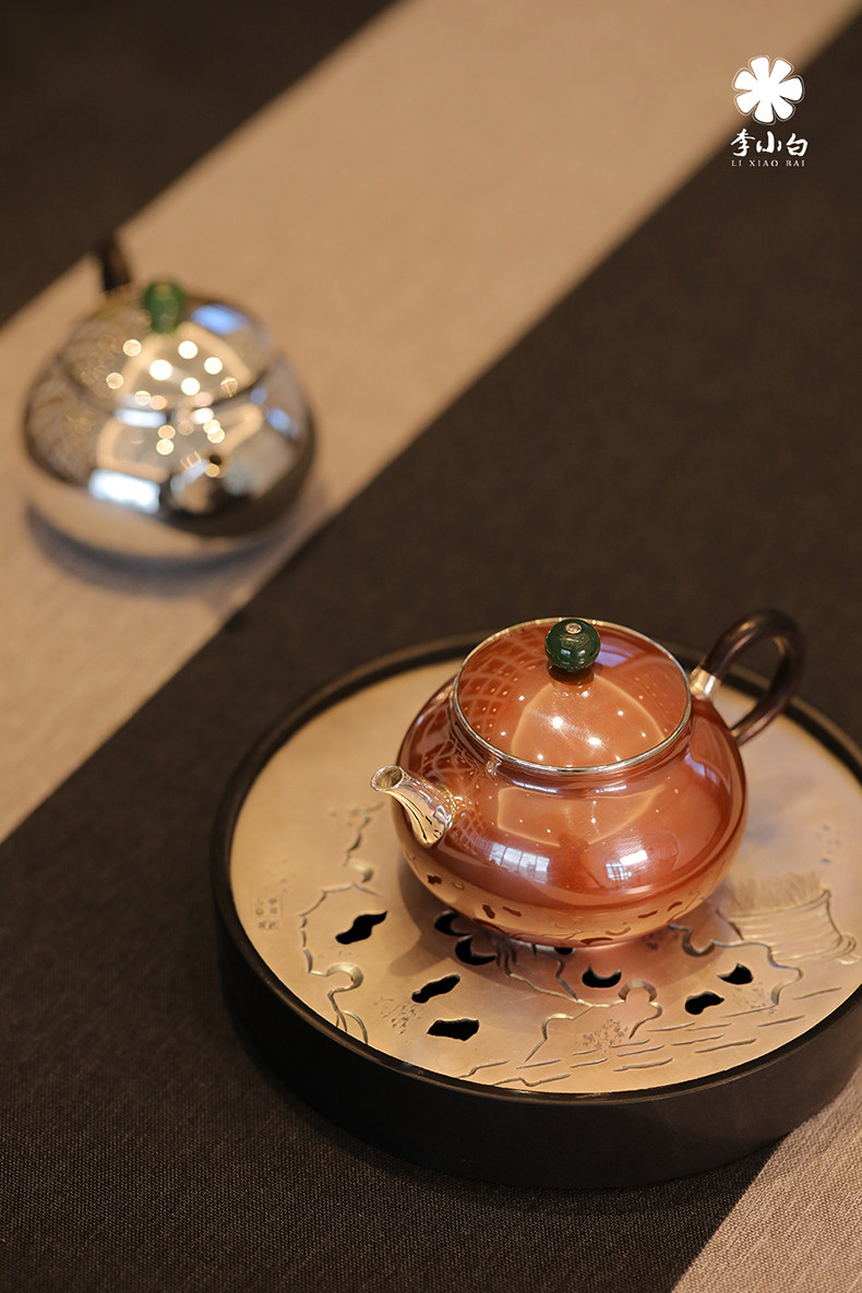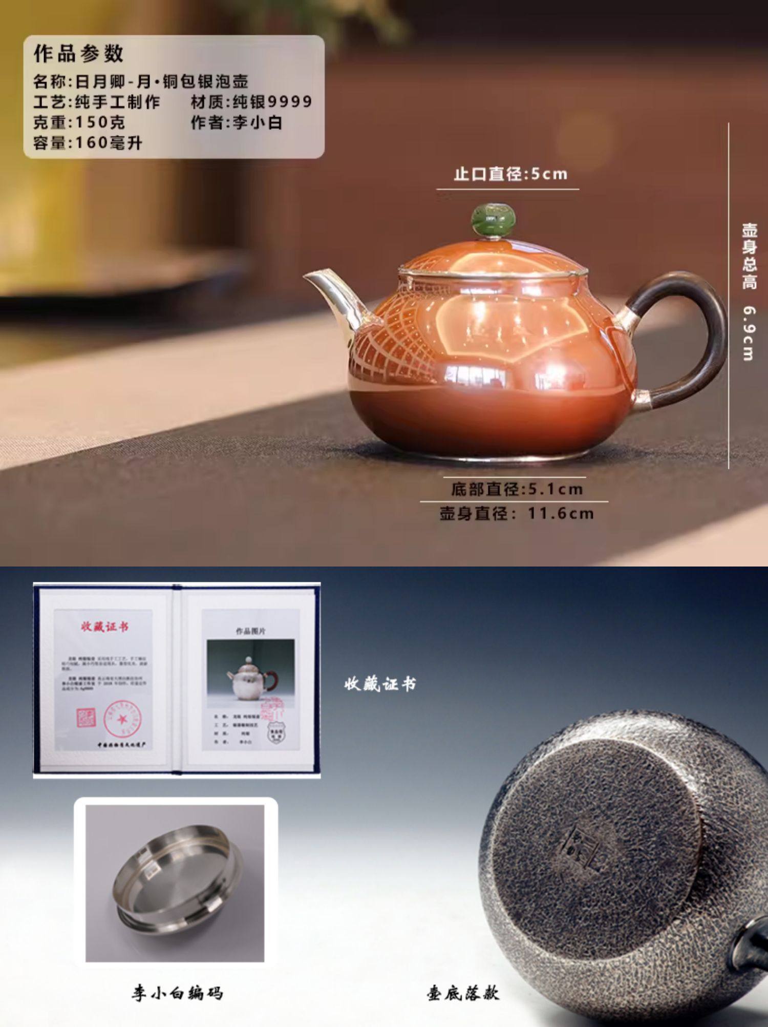 李小白银壶 纯银9999泡茶银壶 纯银泡茶壶 泡茶银壶 日月卿-月 铜包银