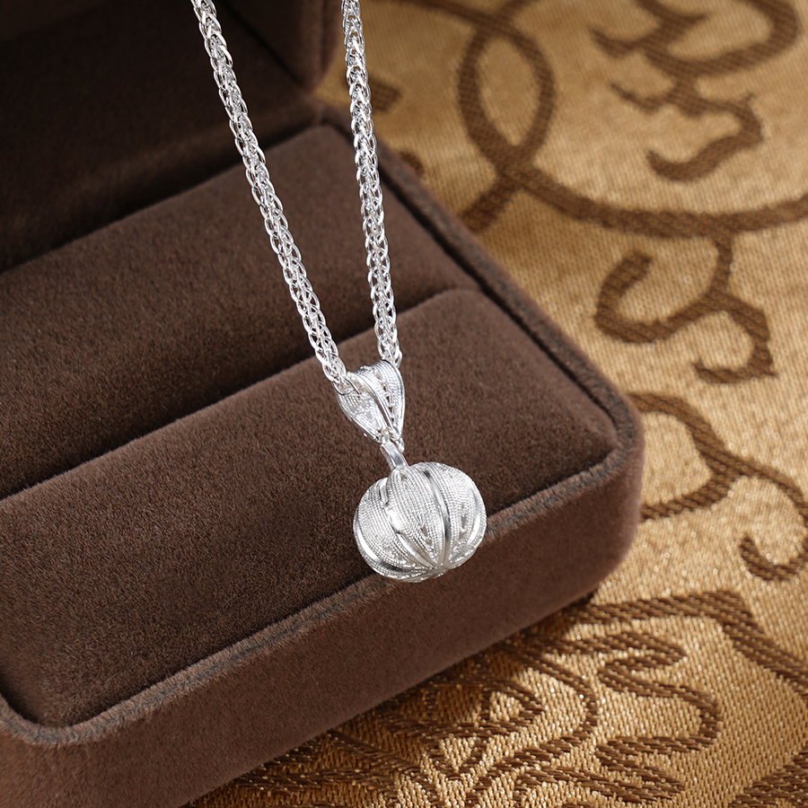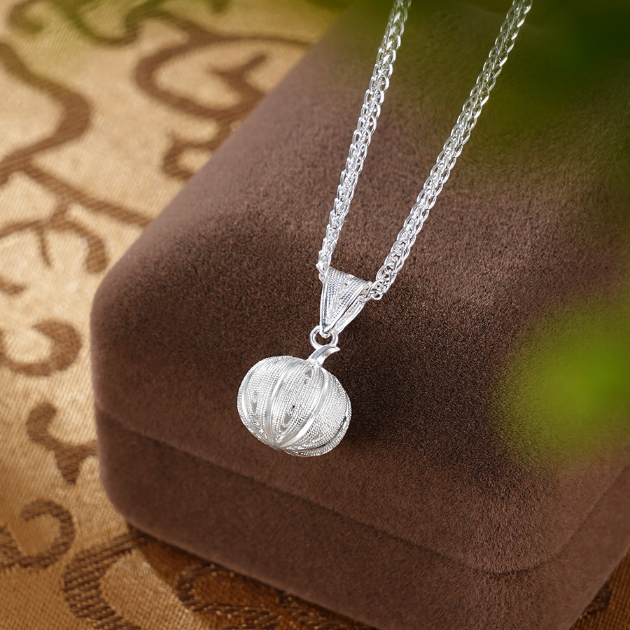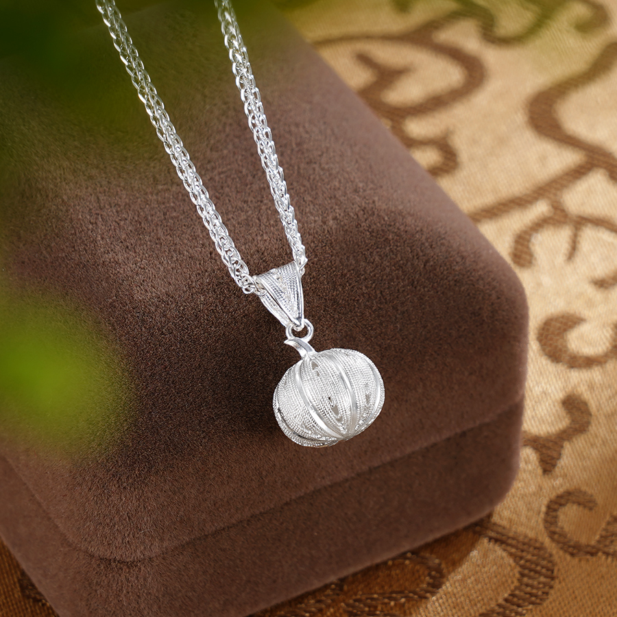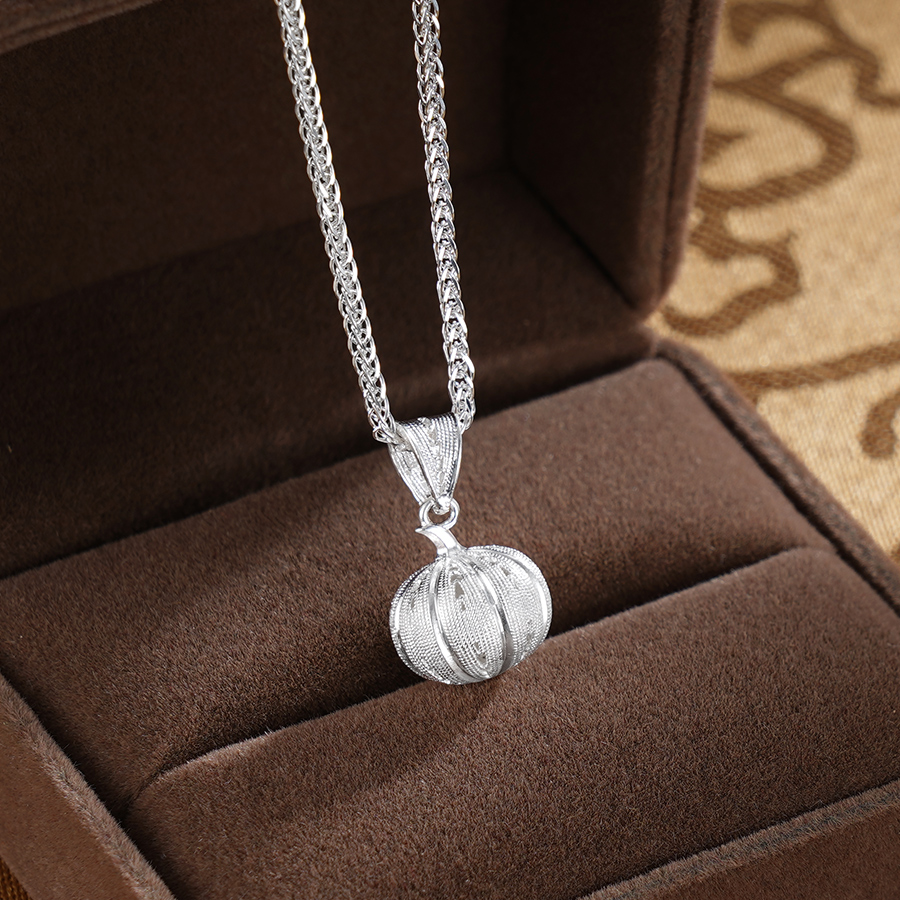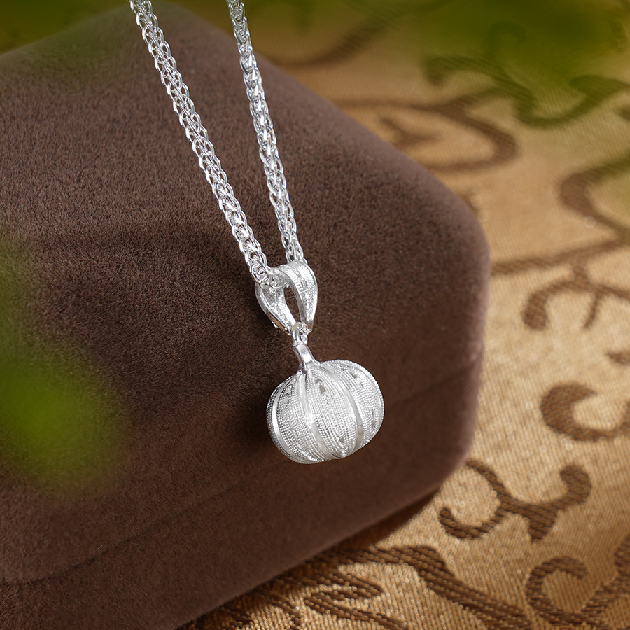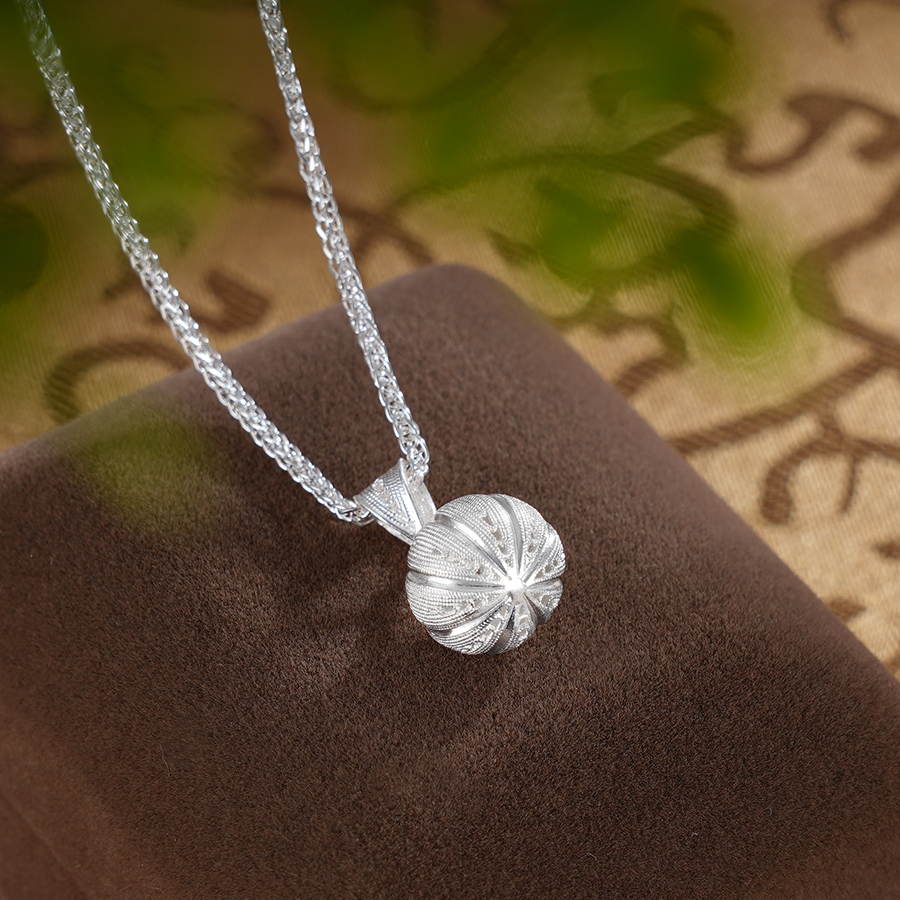 【寓意】:一枚精致可爱的小南瓜吊坠。福瓜采用银花丝工艺打造,圆润细腻,清新通透。南瓜象征着丰收和富足,此款吊坠,寓意好运吉祥、福运长远。