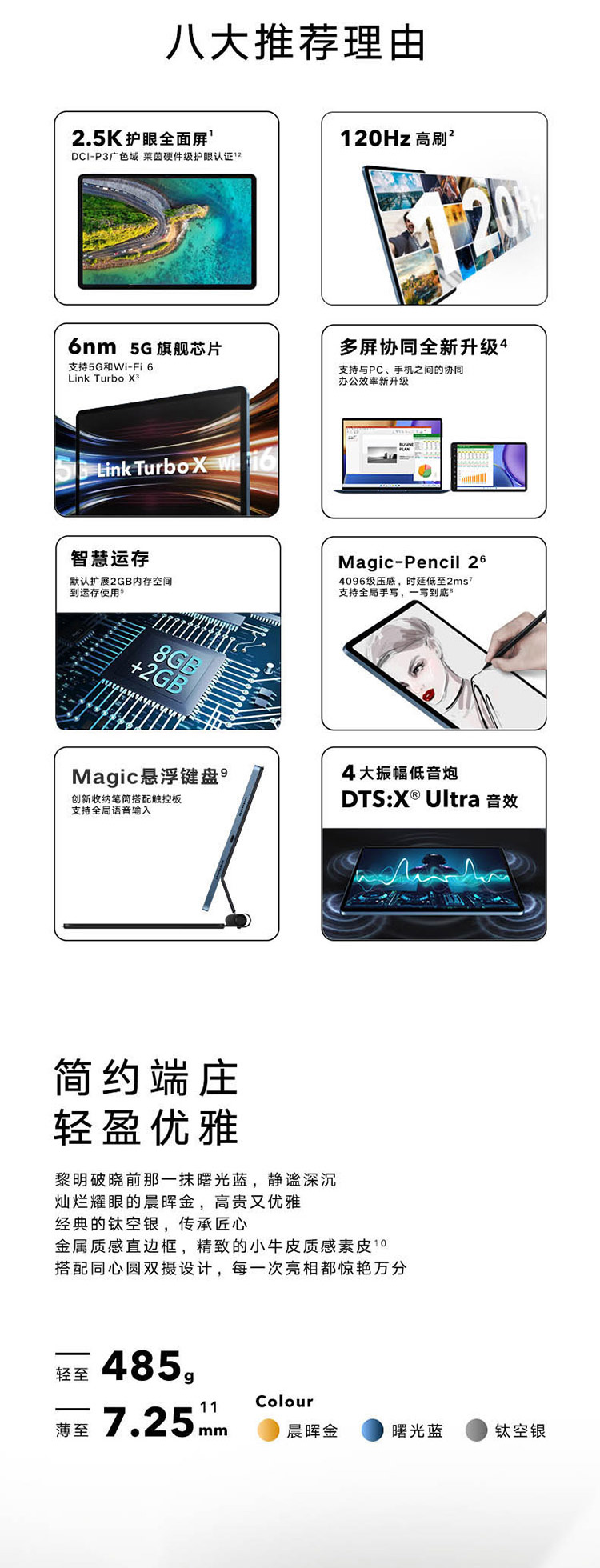 荣耀平板V7 Pro 8GB+256GB WIFI版 晨晖金
