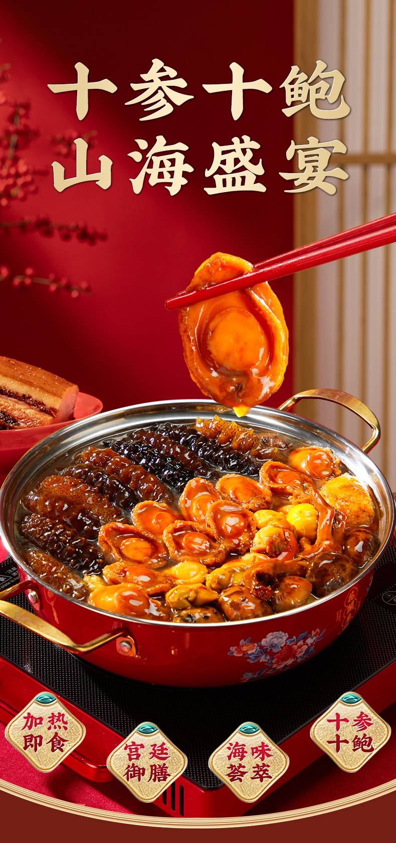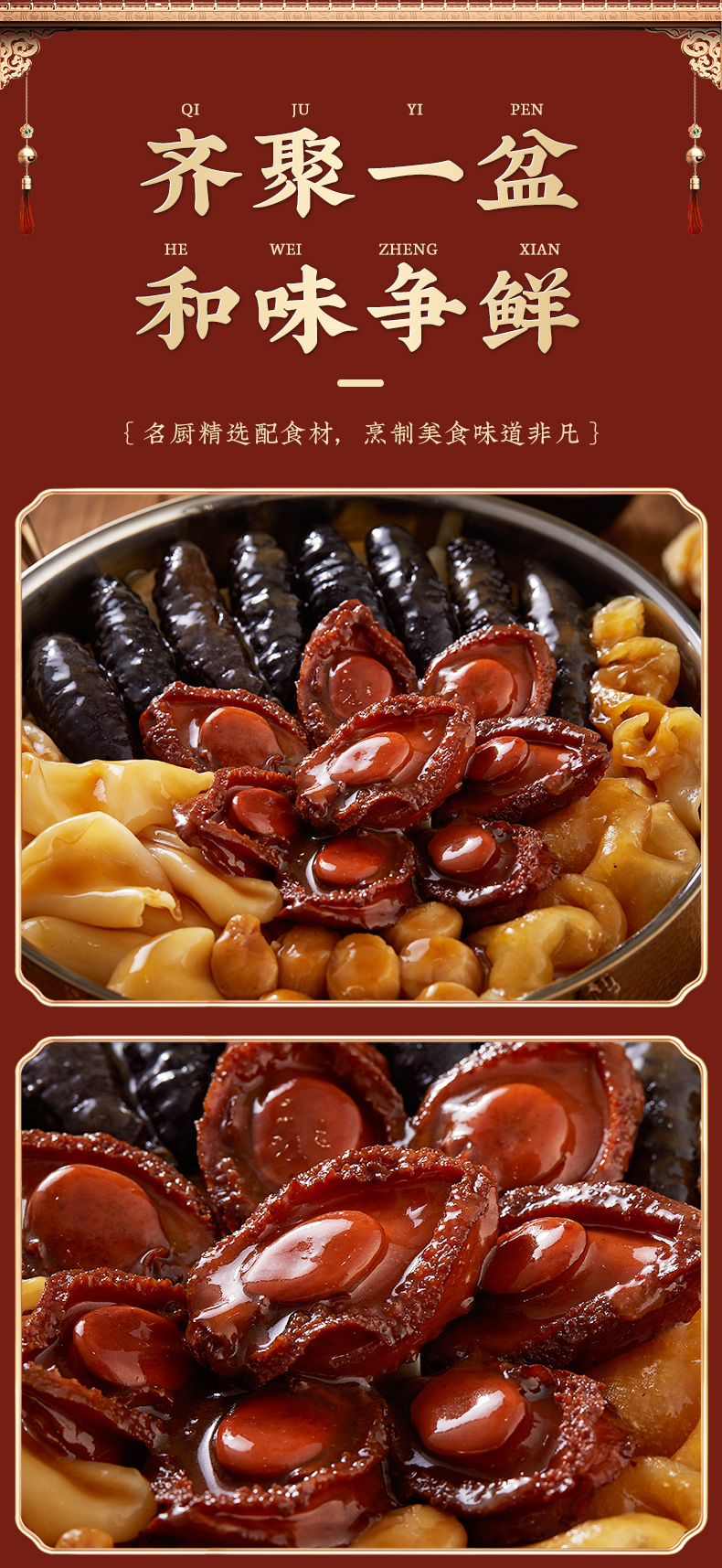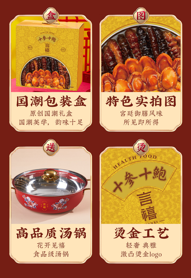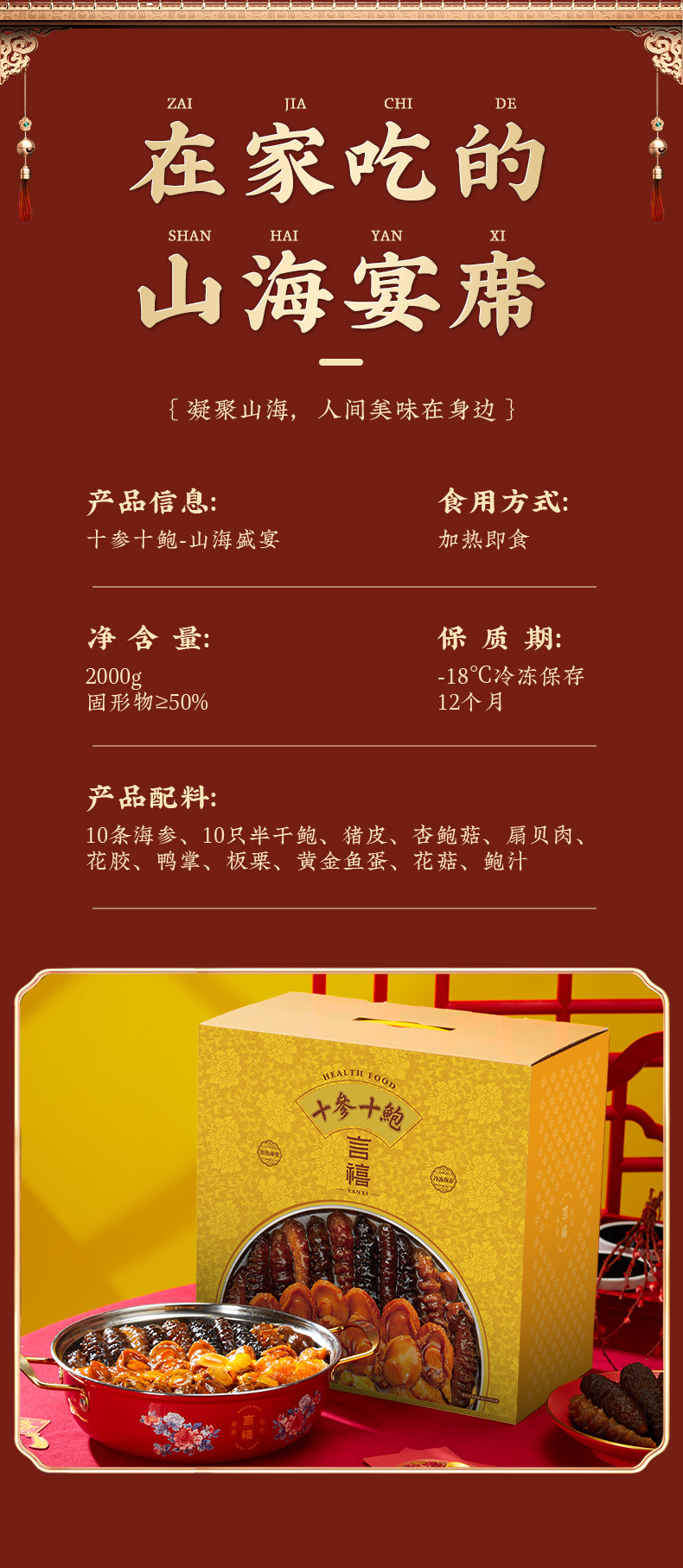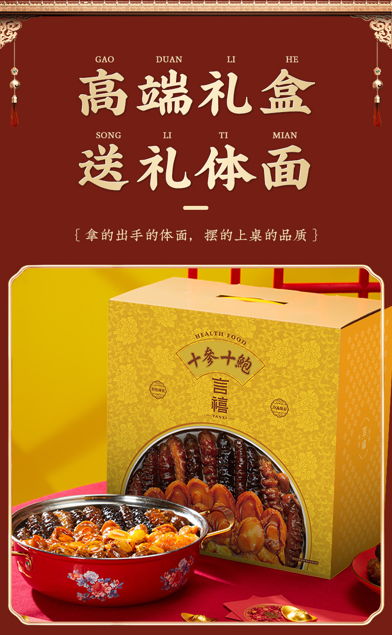 言禧十参十鲍·山海盛宴正宗佛跳墙加热即食大盆菜家用海鲜鲍鱼年夜饭年货送礼盒装 2000g (固形物≥50%)