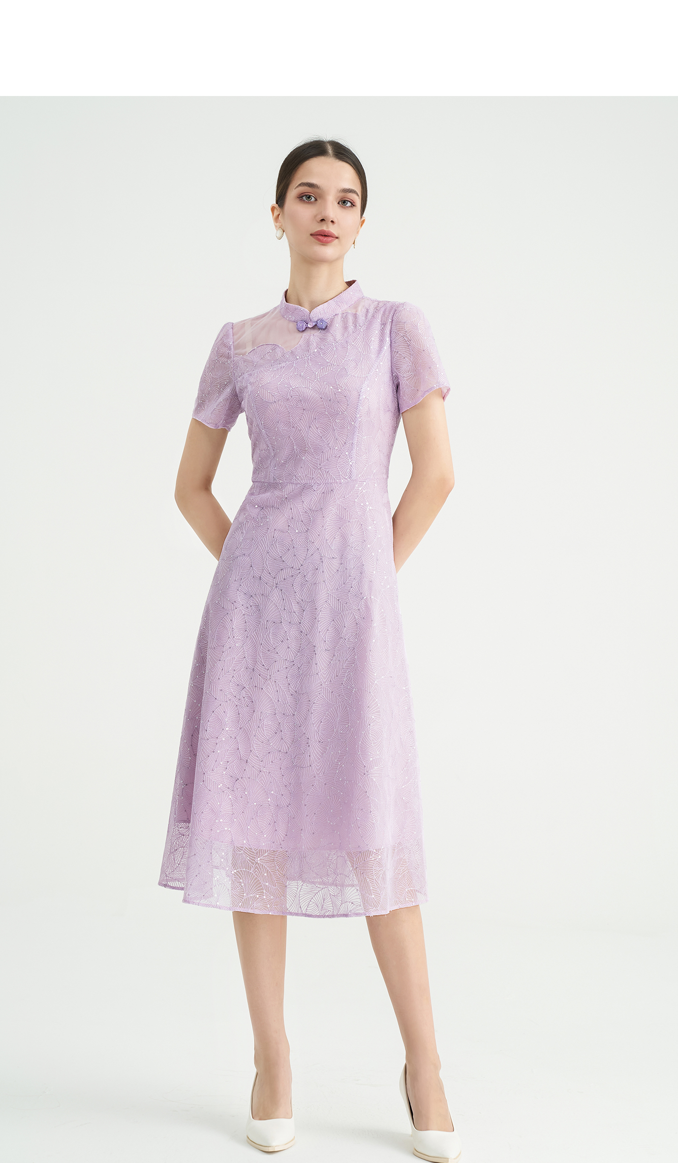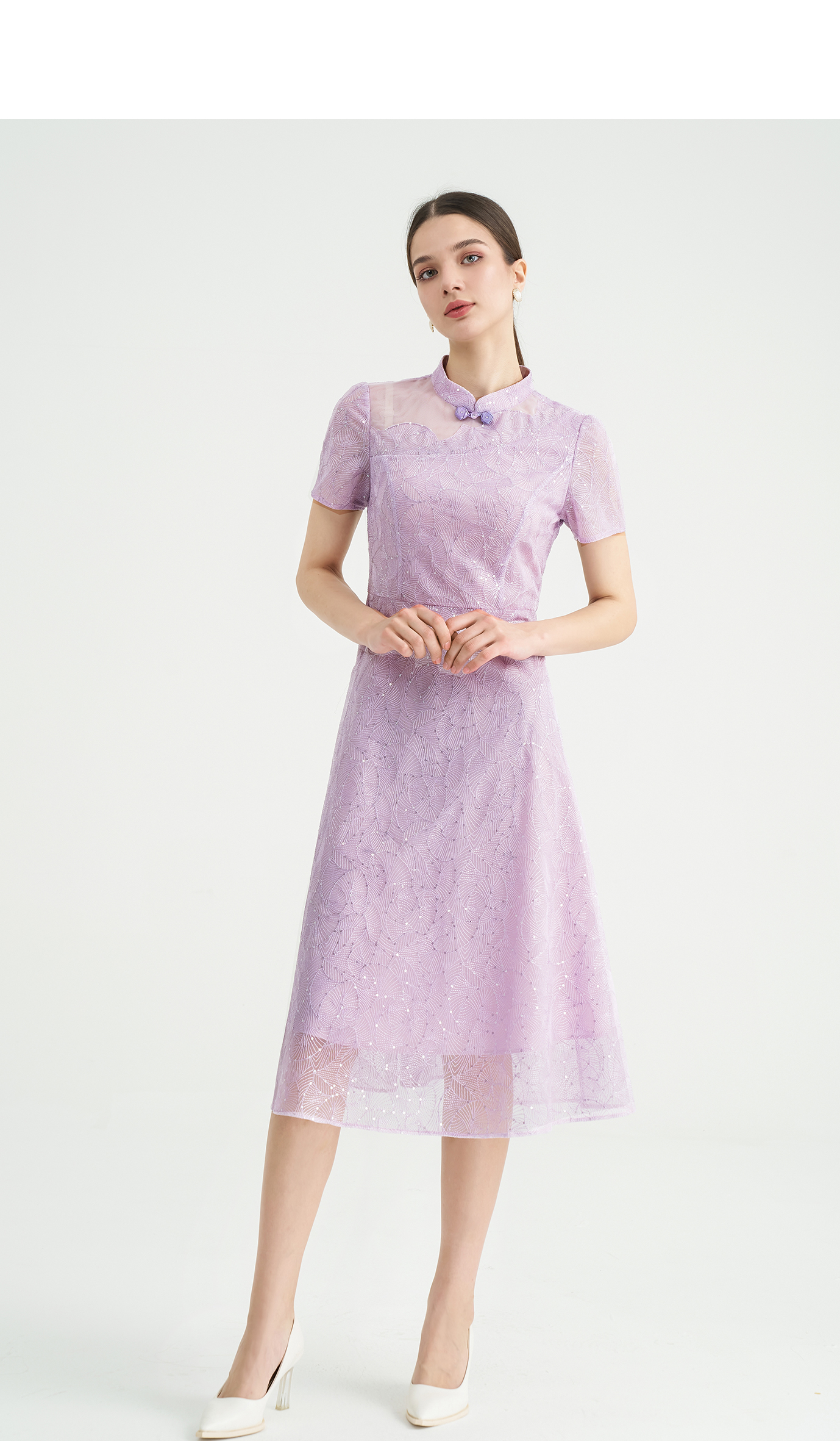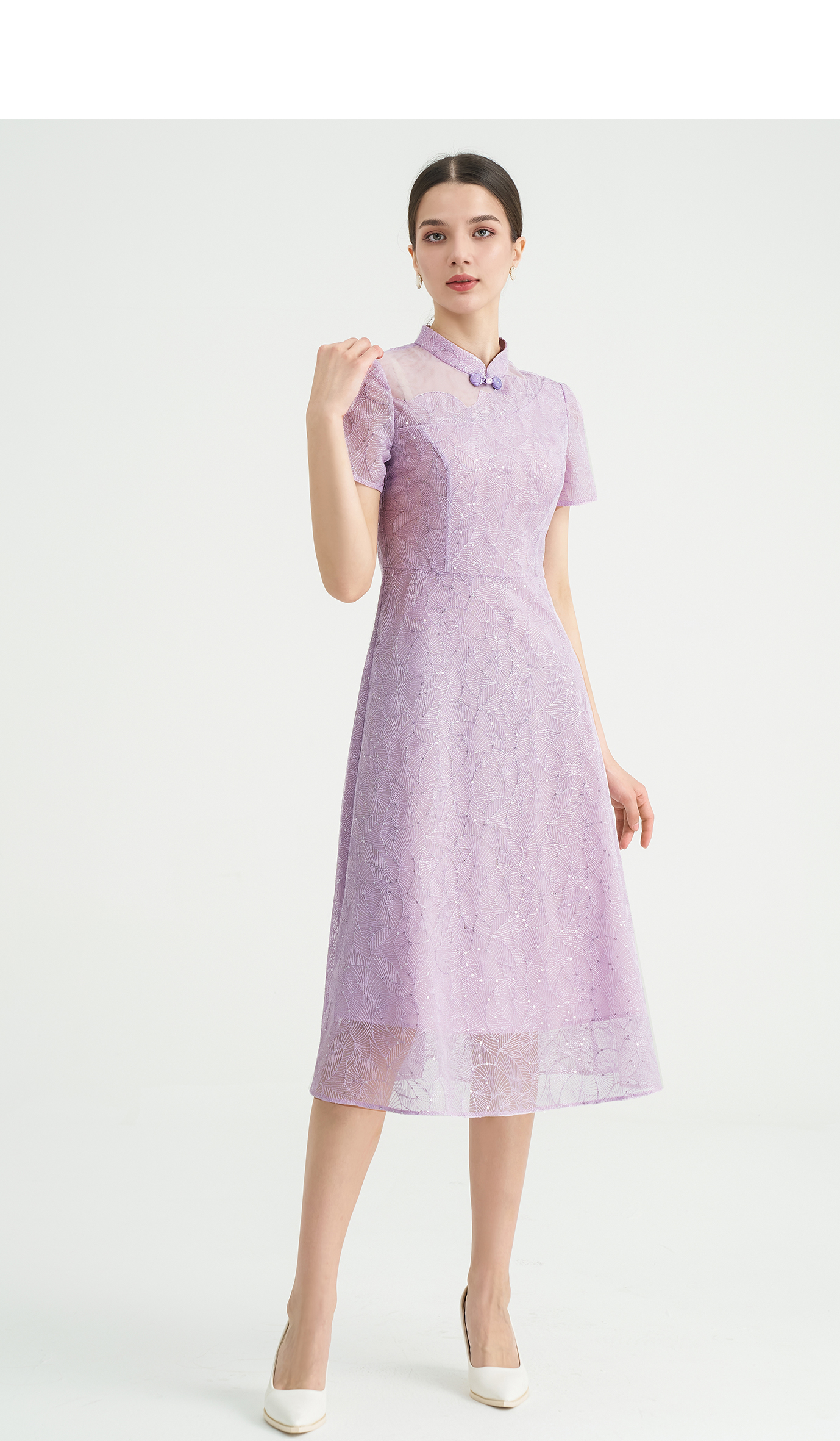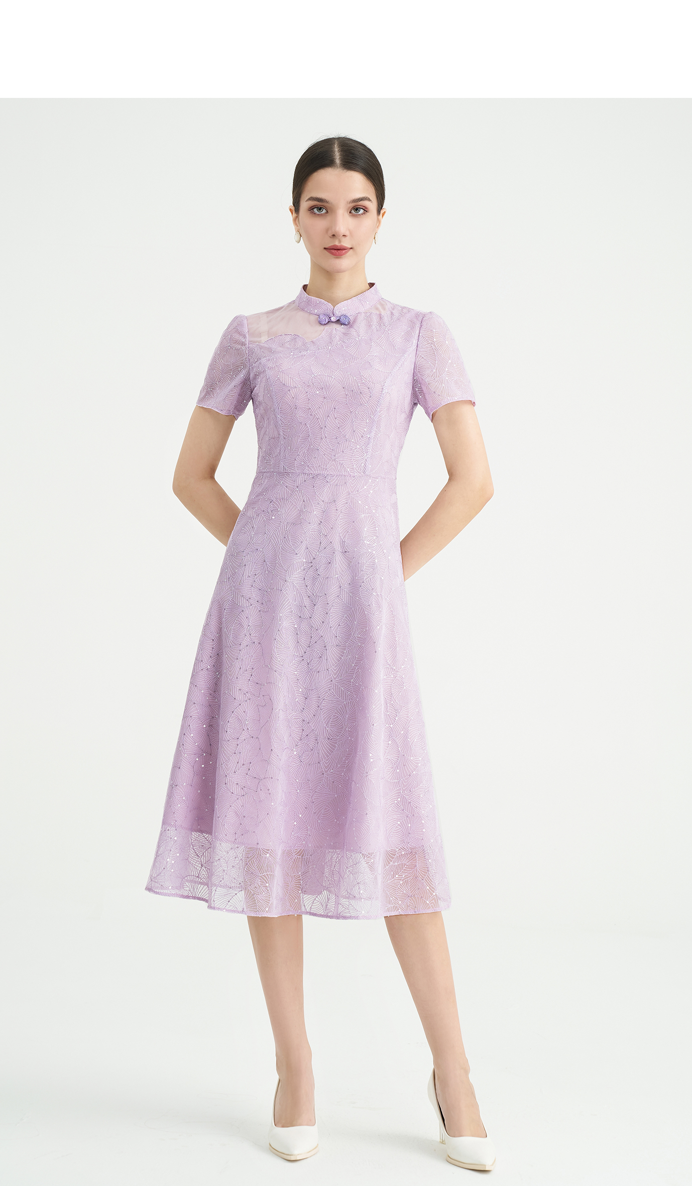 司歌刺绣国风优雅短袖连衣裙收腰显瘦A891445M