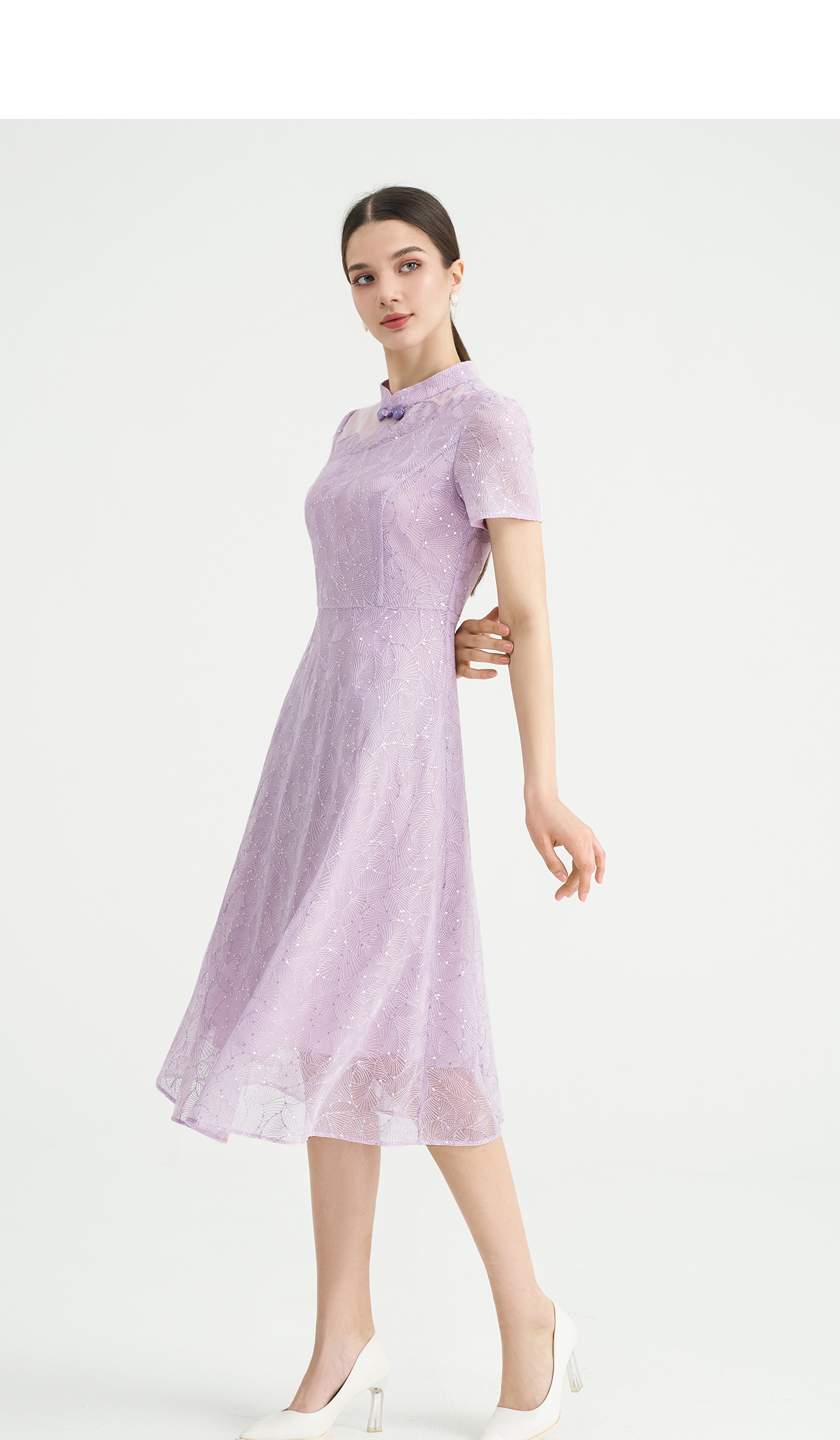 司歌刺绣印花短袖优雅先手短款连衣裙A871108