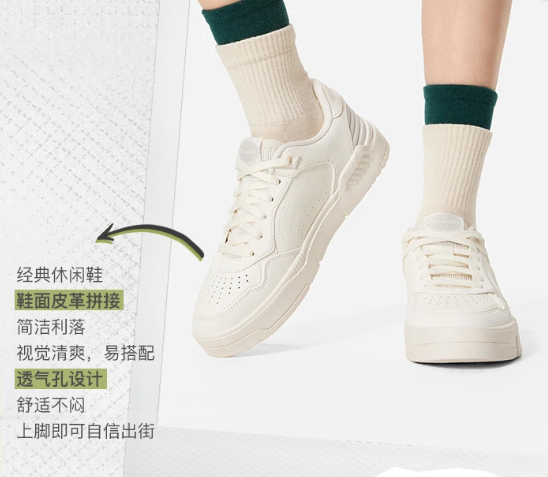 李宁COMMON 80s女子小白鞋舒适软弹经典休闲鞋AGCU084-2
