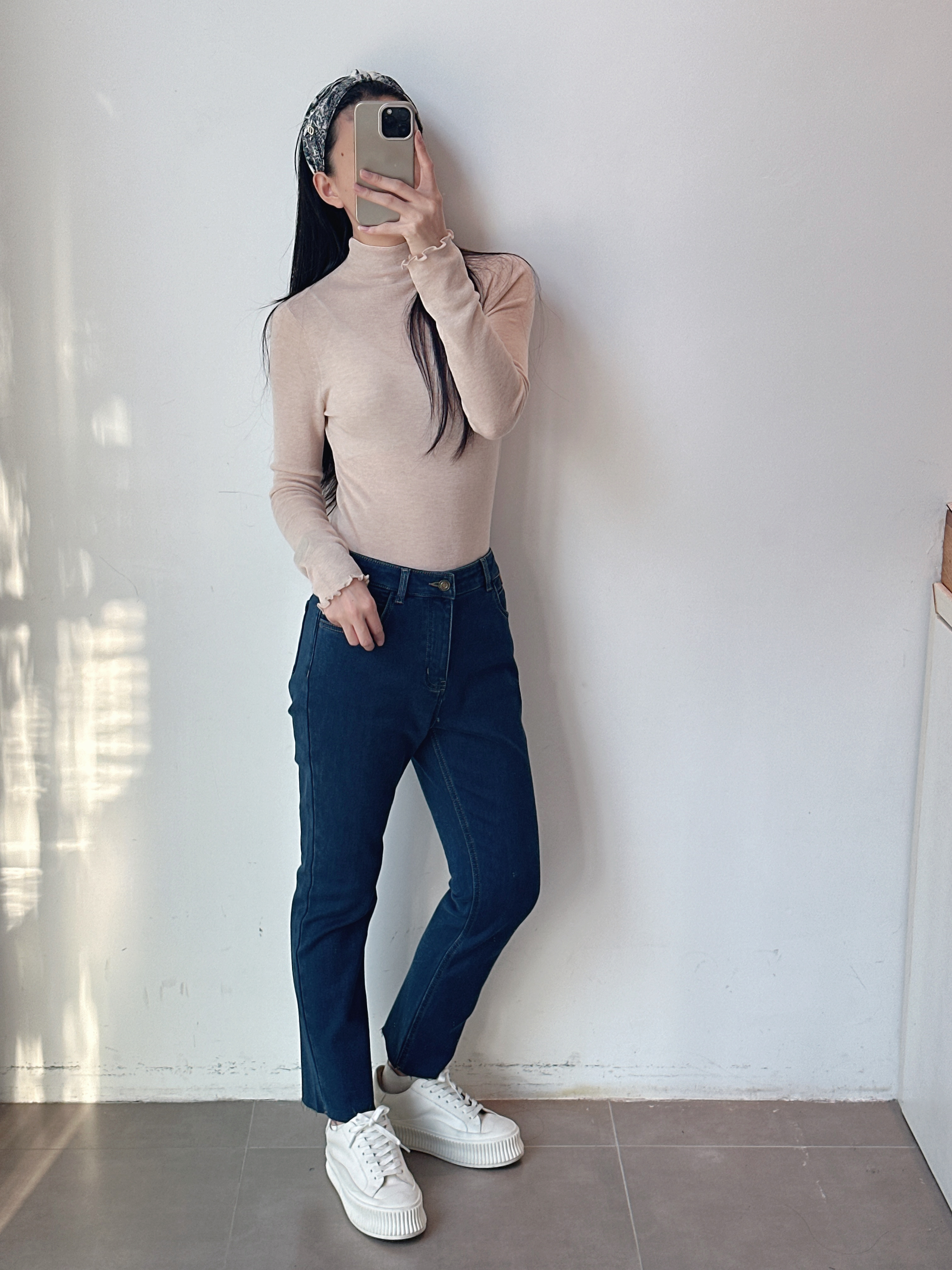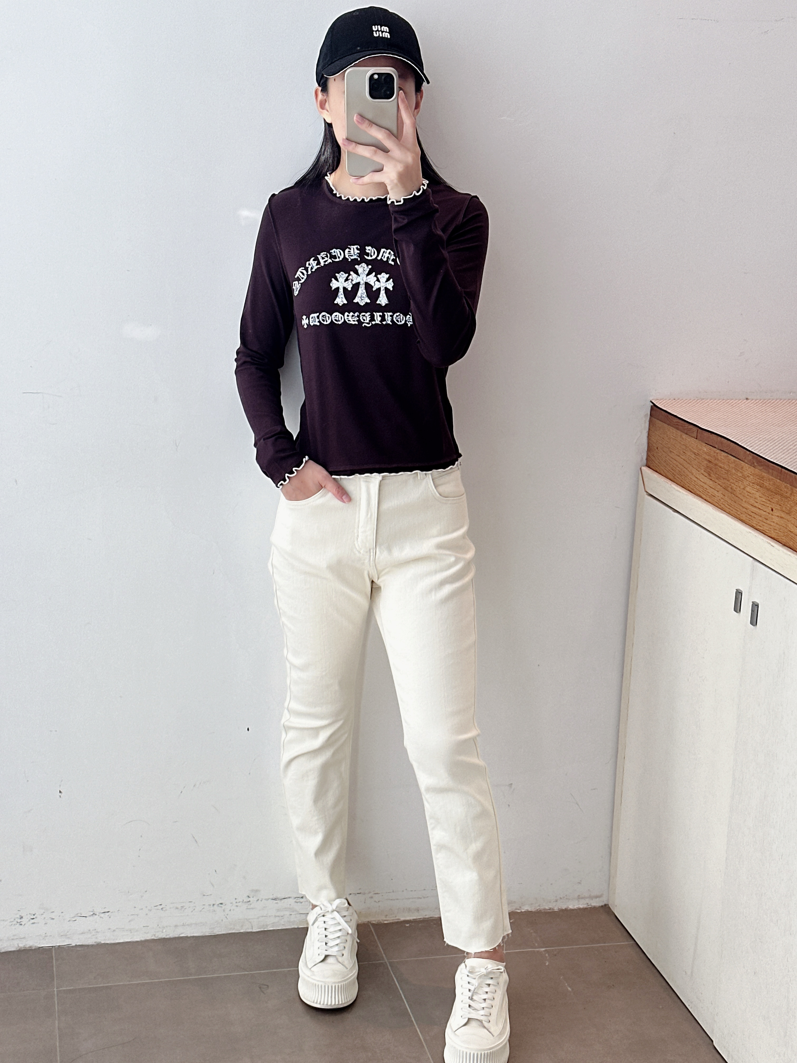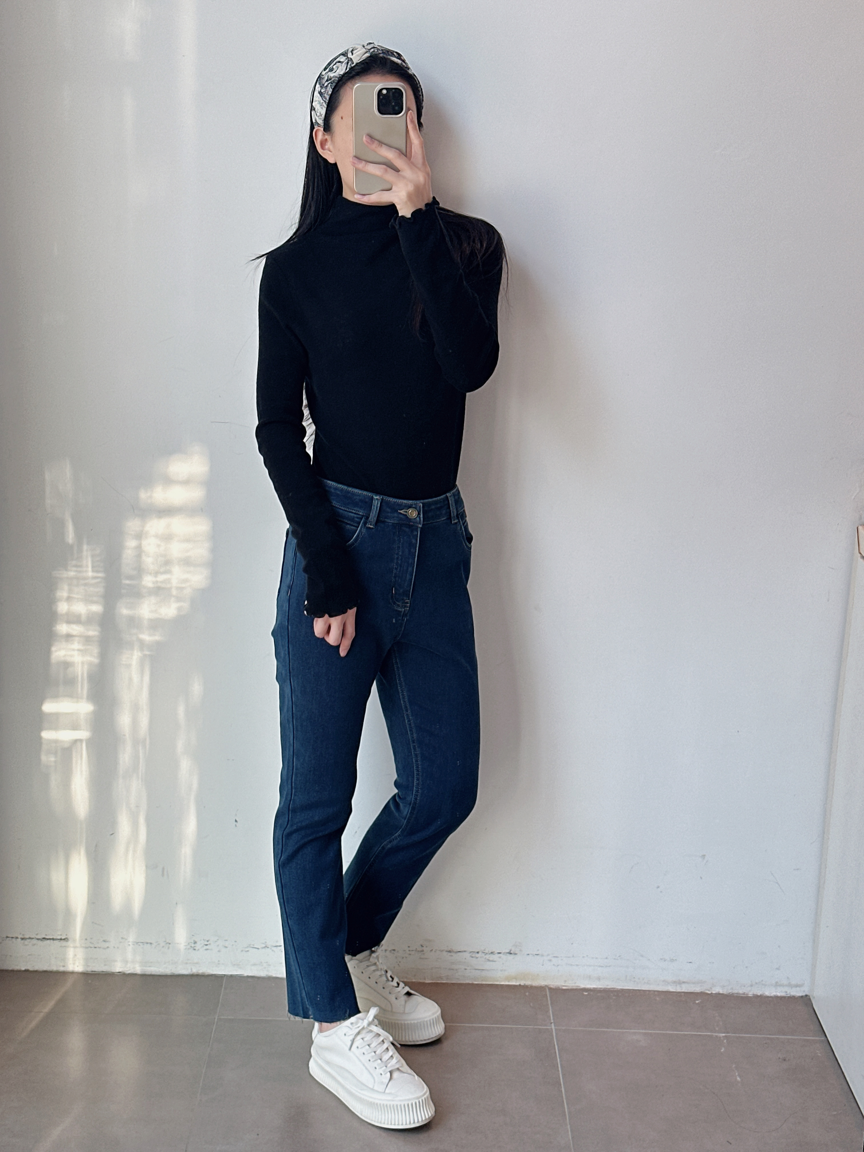 秋季新款九分直筒裤欧货高腰撞色烟管裤
