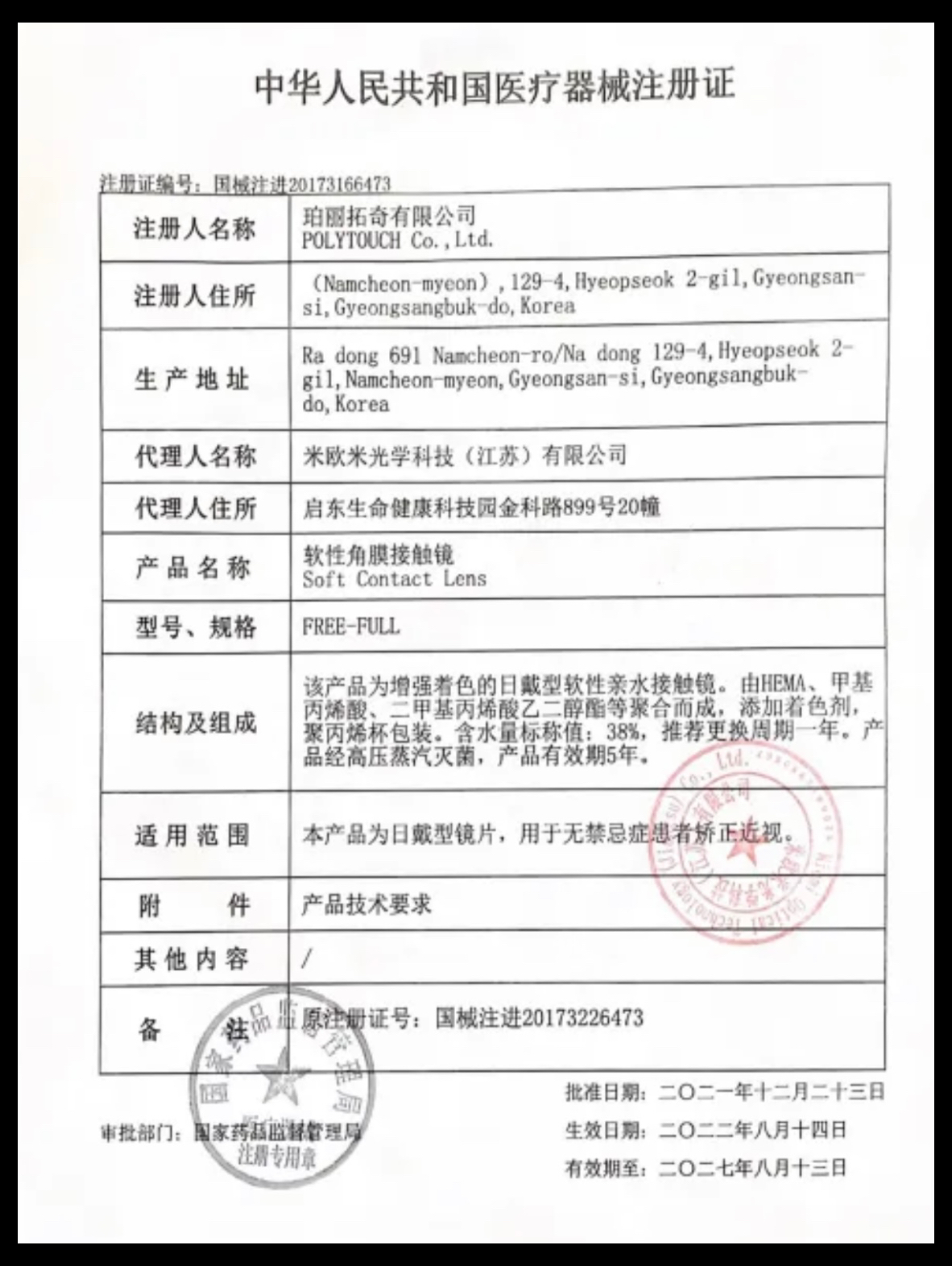 注册证编号:国械注进20173166473