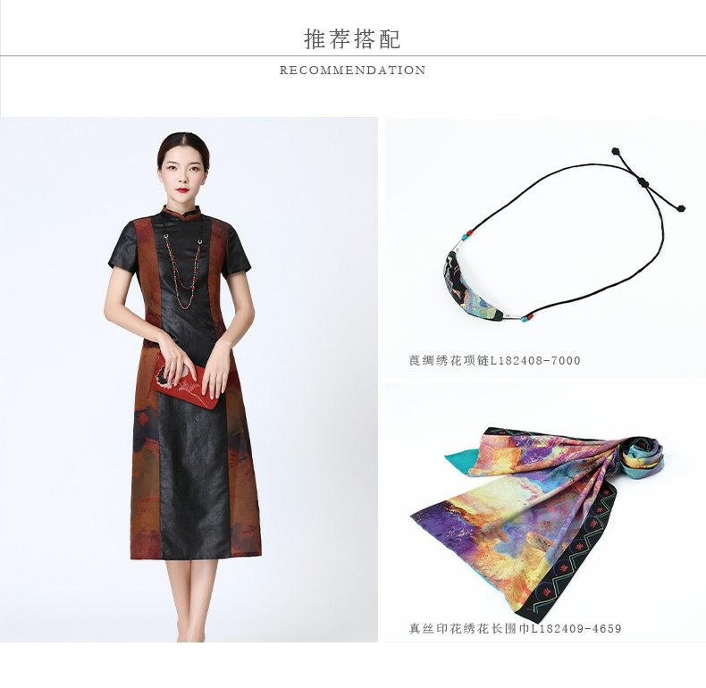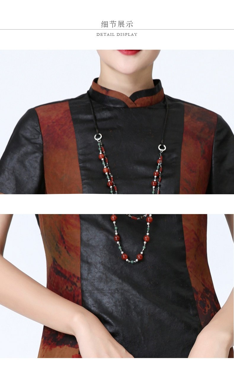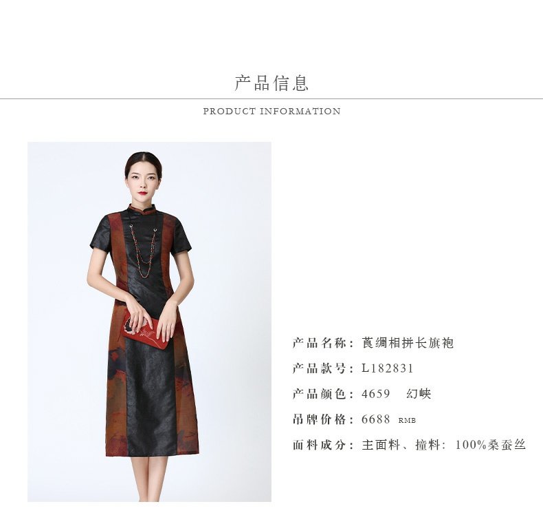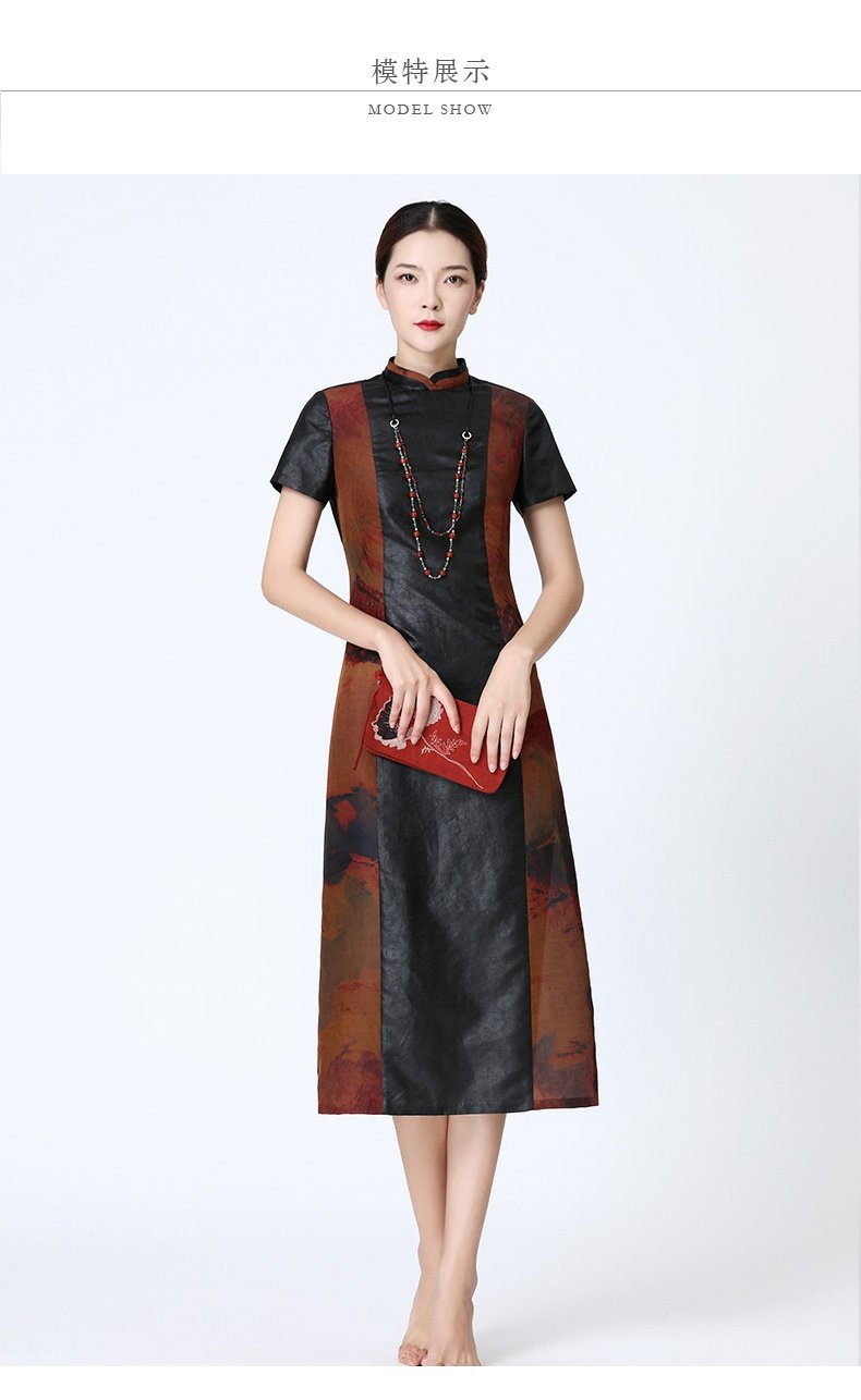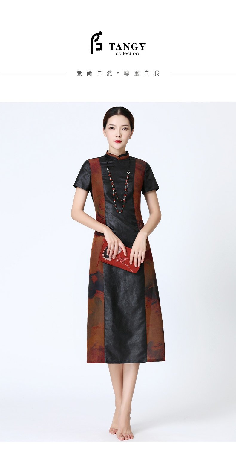 TANGY Collection/天意精品春夏款换侠系列莨绸相拼长旗袍连衣裙