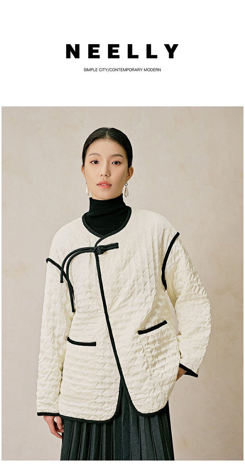 NEELLY纳俪商场同款冬季新款新中式轻薄简约棉服女千金风棉衣外套N23104K03310