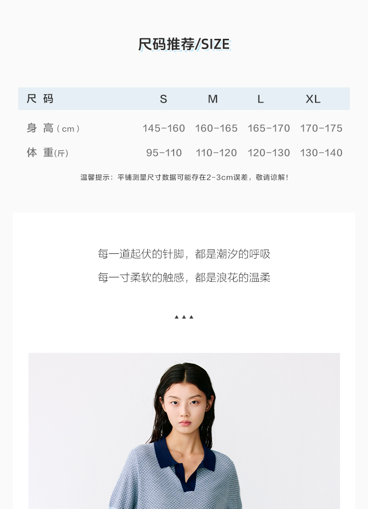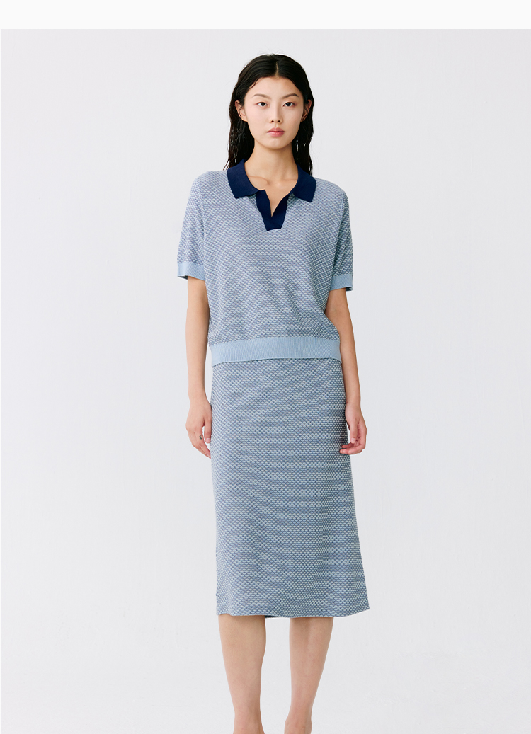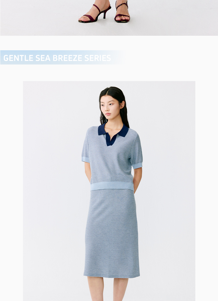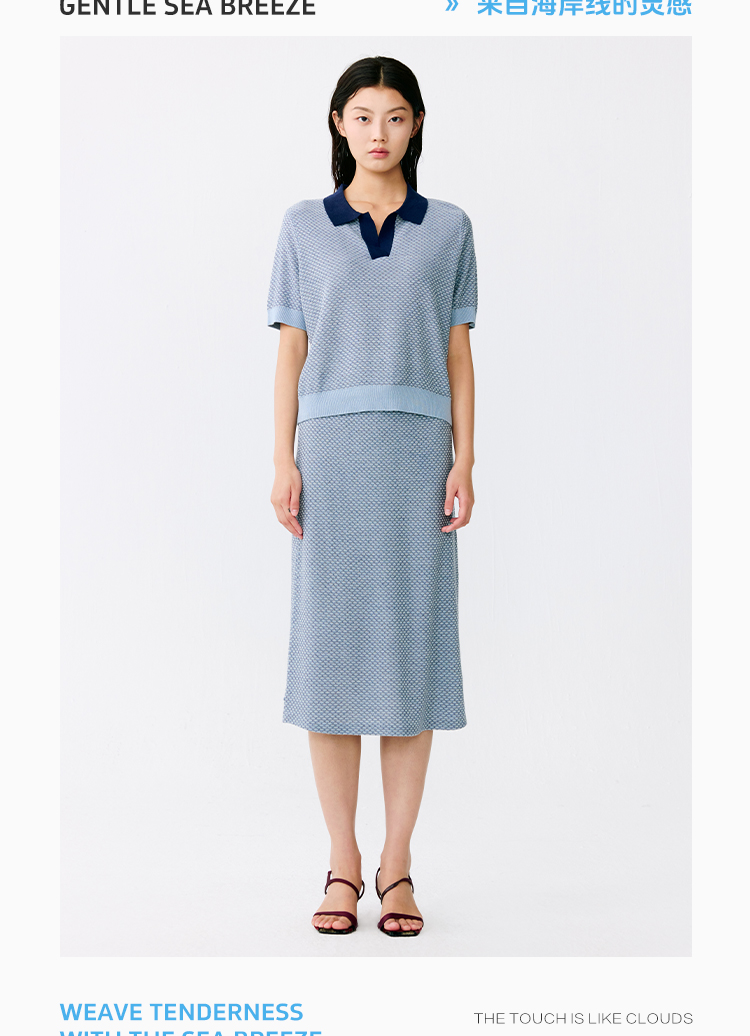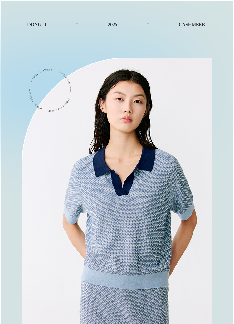 东黎 • 温柔的海风 桑蚕丝山羊绒女士T恤领提花套衫 5265