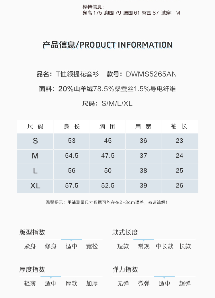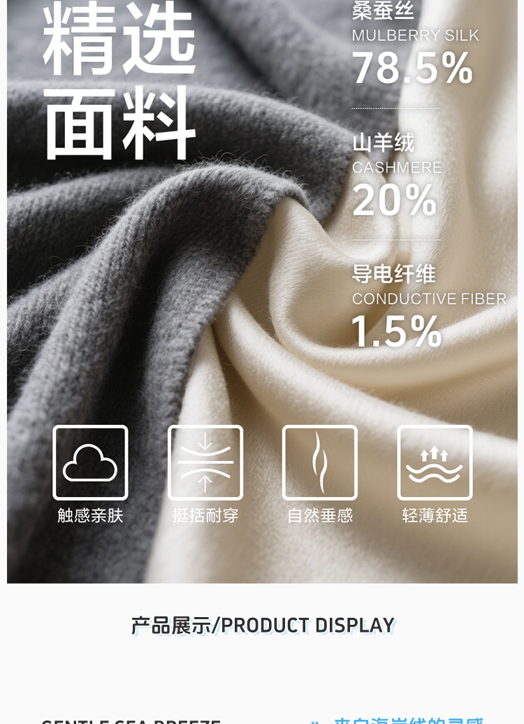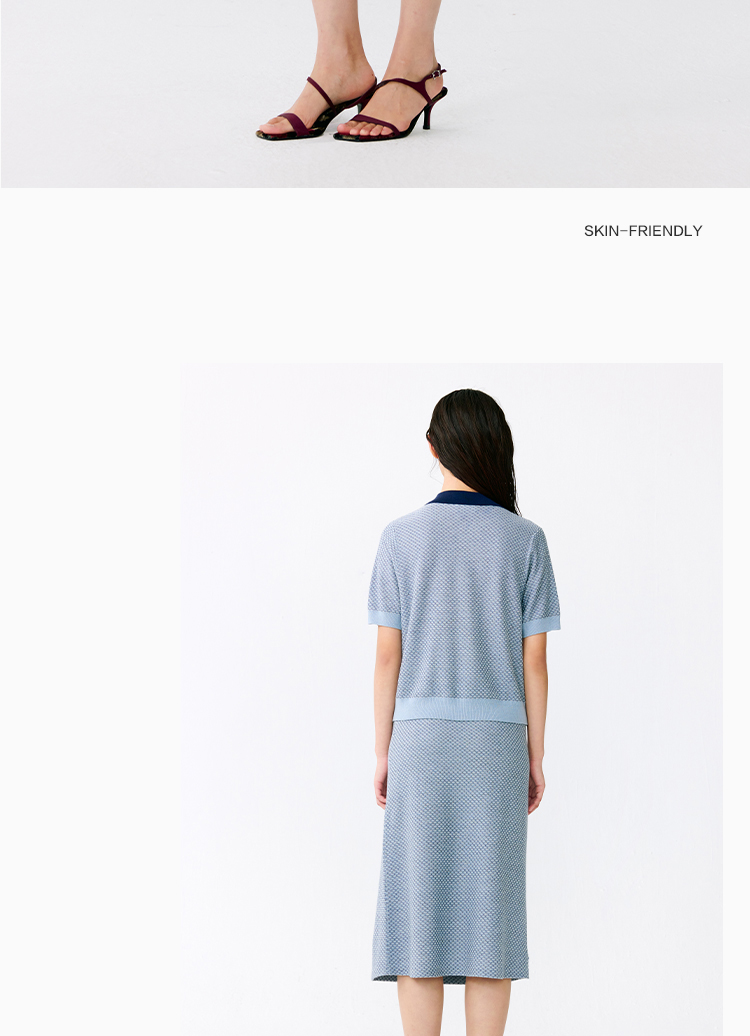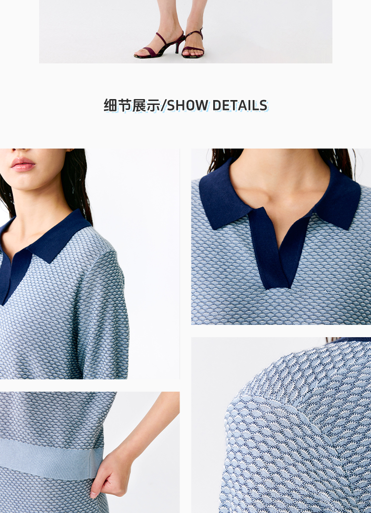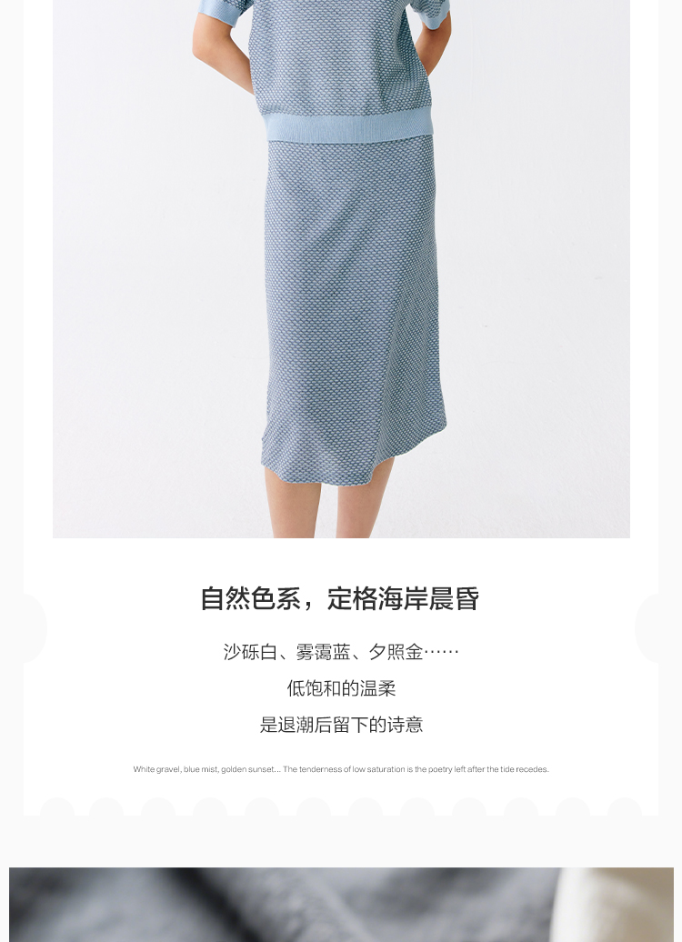 东黎 • 温柔的海风 桑蚕丝山羊绒女士T恤领提花套衫 5265