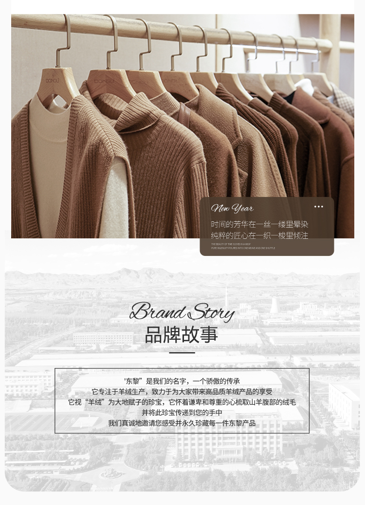 东黎羊绒是赤峰东荣集团自主品牌,自有牧场/羊绒制品全产业链优势,实现了羊绒从“牧场”到“商场”的华丽转变。