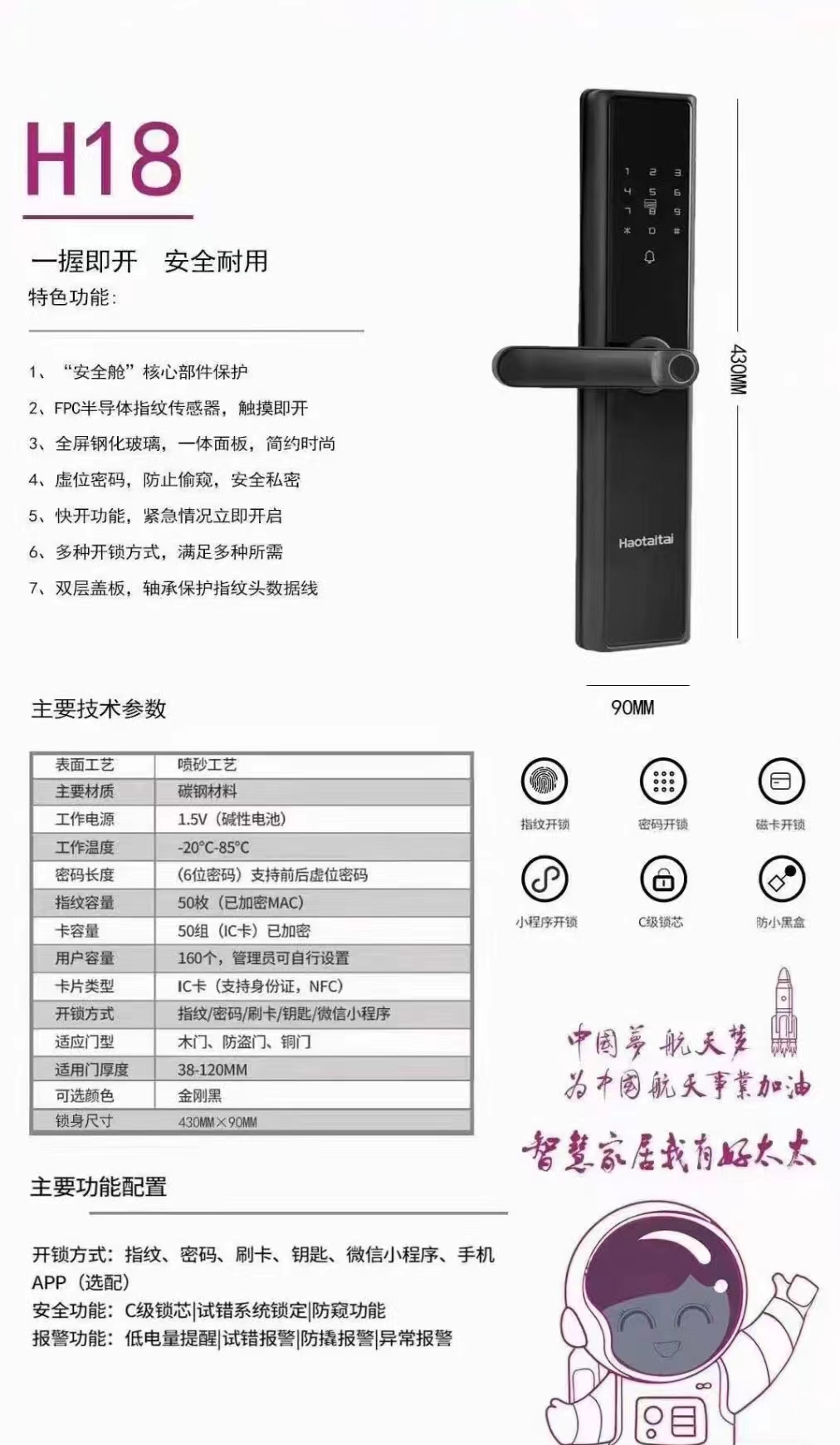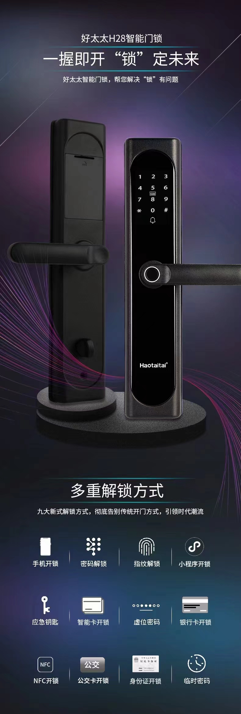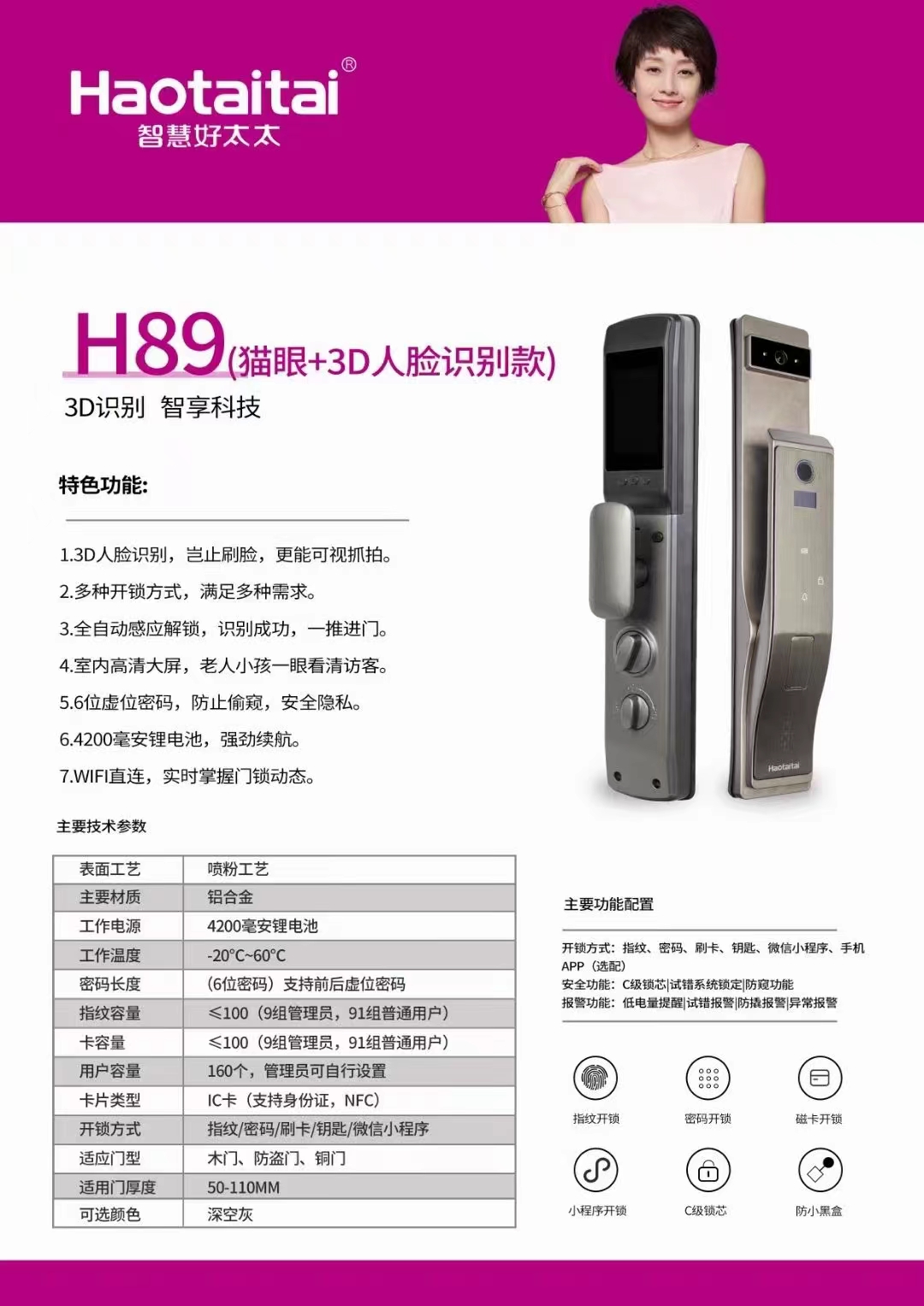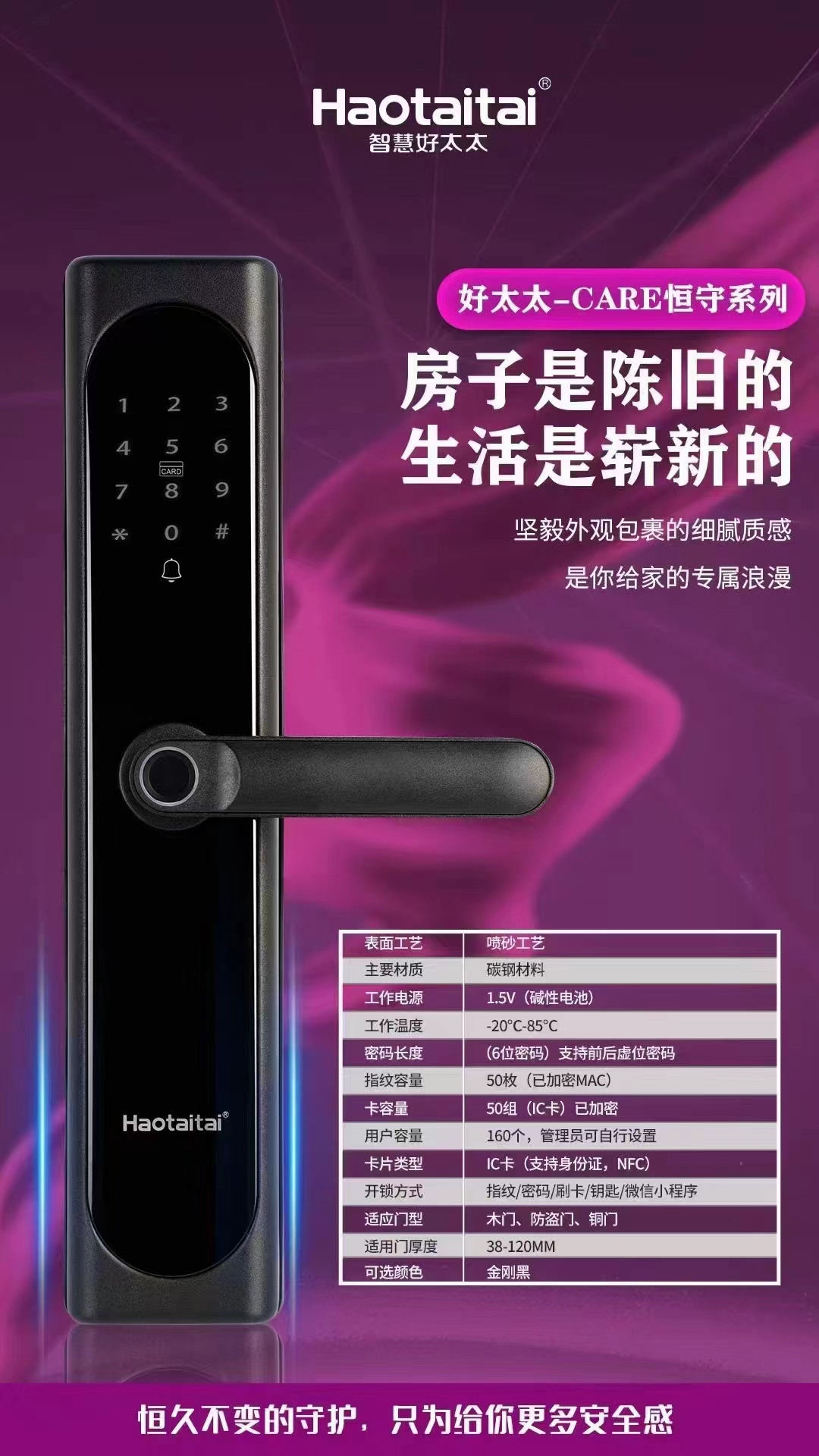 好太太智能指纹锁 C级锁芯+多重开锁设计 简单实用 终身维护 智能锁十大品牌 品质值得信赖