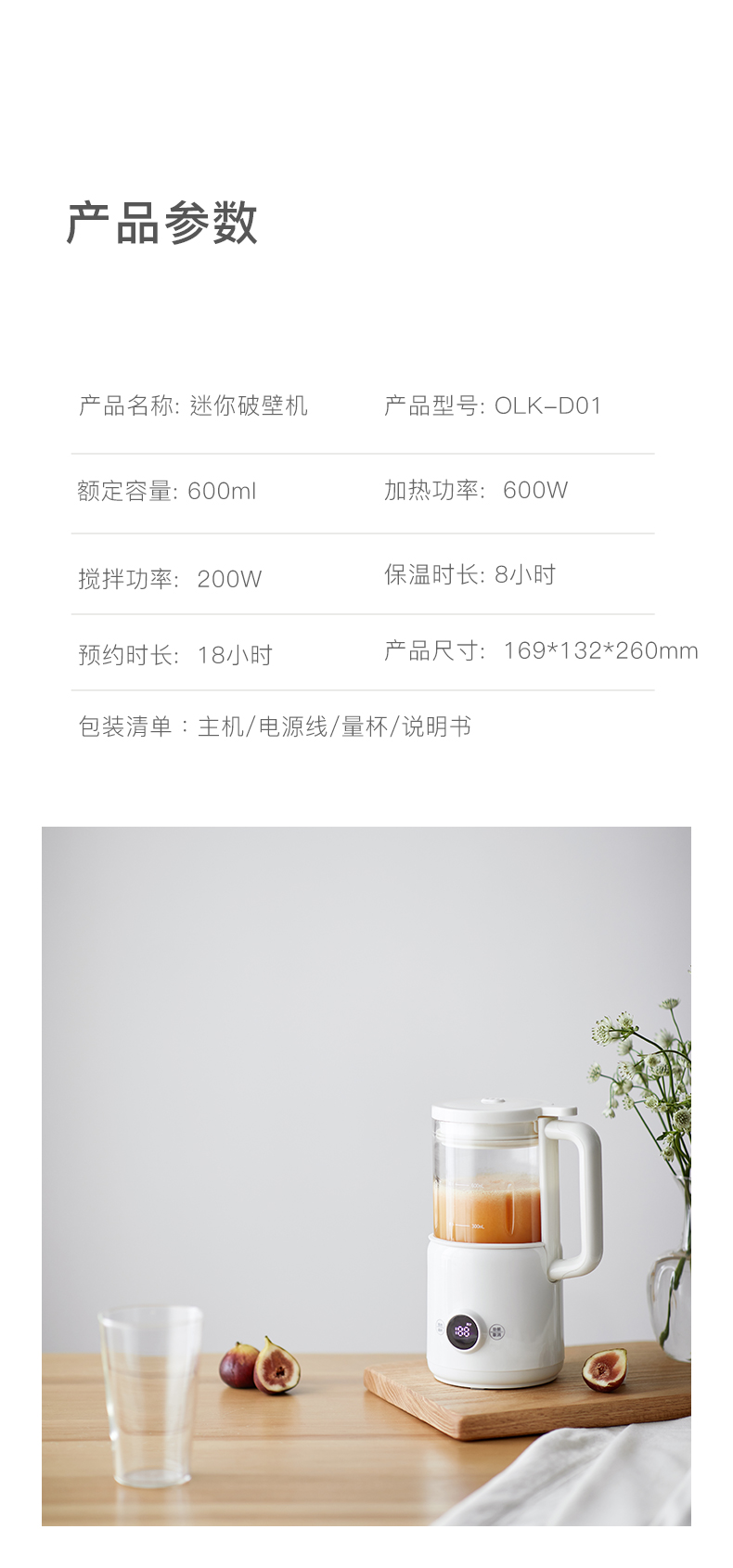 olayks欧莱克破壁机豆浆机家用小型多功能静音迷你破壁料理机高温自清洗
