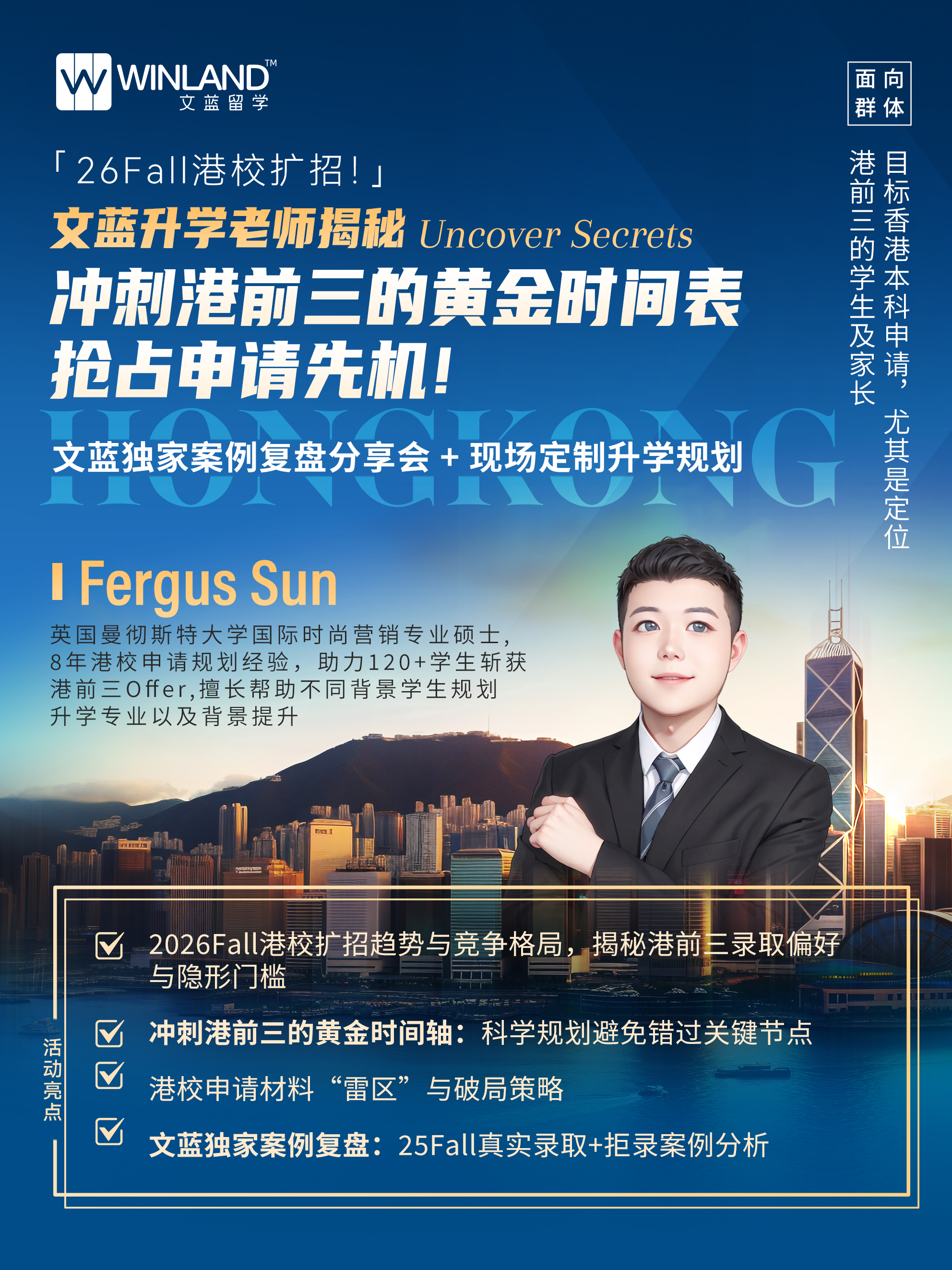 26Fall港校扩招!文蓝升学老师揭秘冲刺港前三的黄金时间表,抢占申请先机!文蓝独家案例复盘分享会+现场定制升学规划