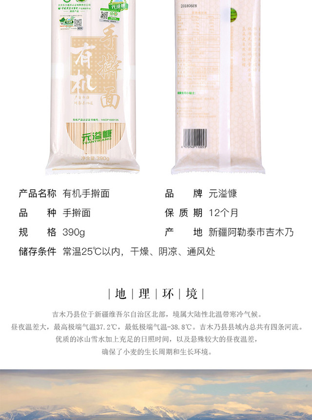 元溢慷有机手擀面390g/袋