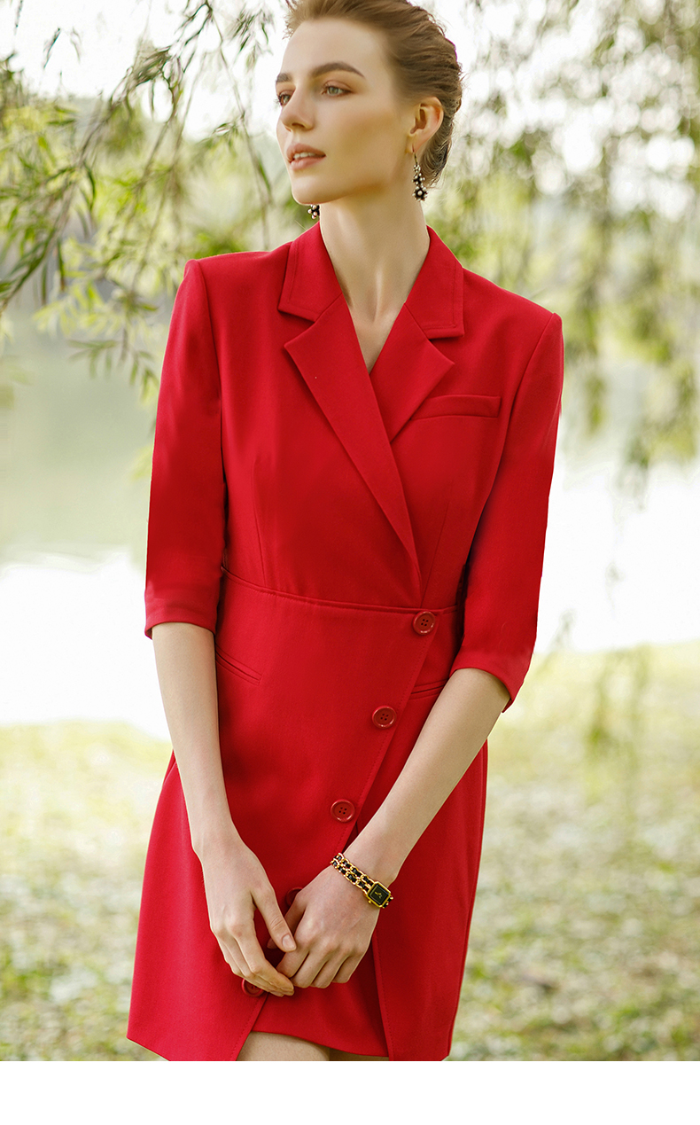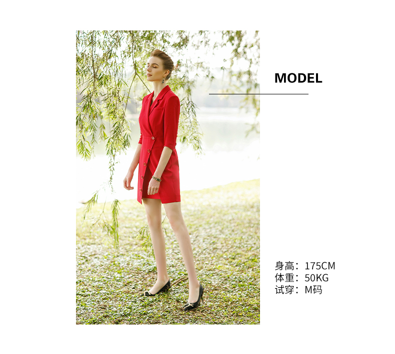 IWY/红色西装连衣裙女2022夏季高级感上镜主持工作服职业套装气质正装222070Q1