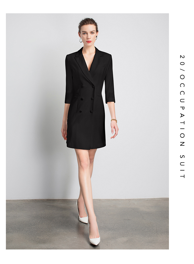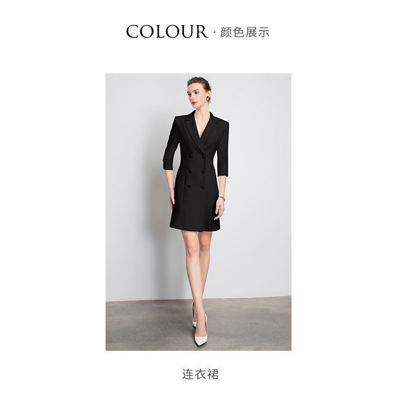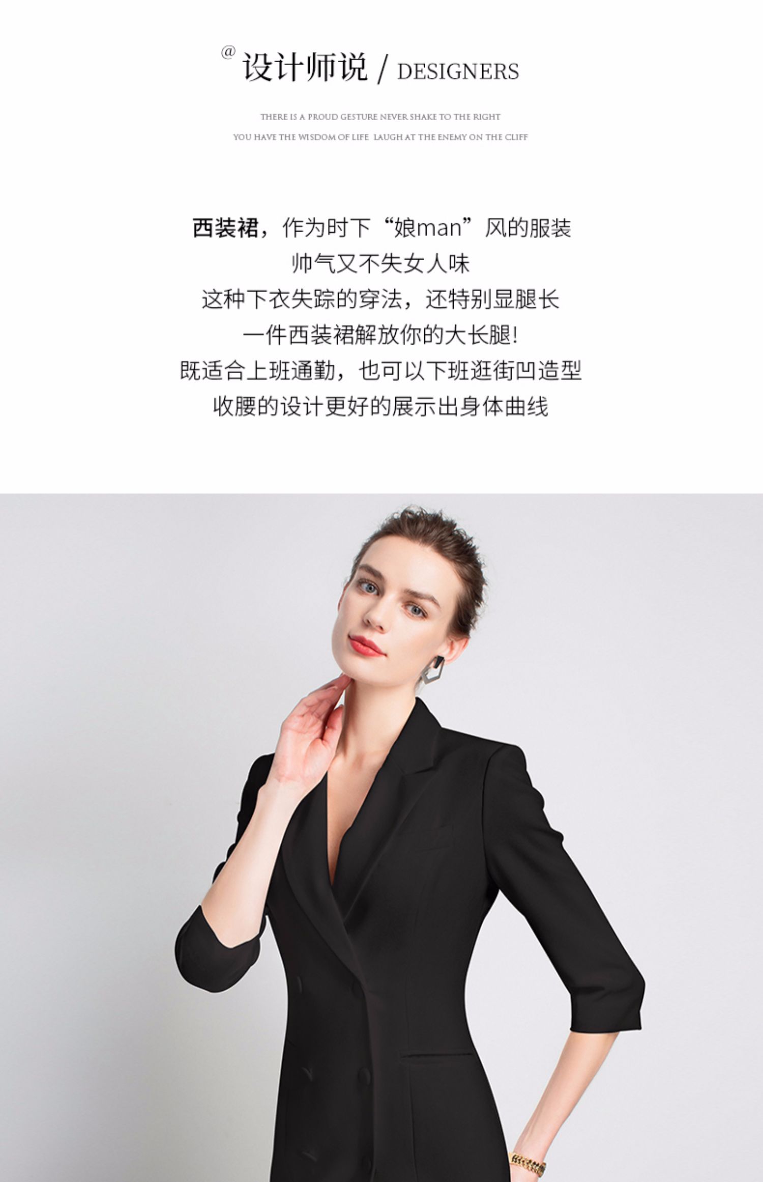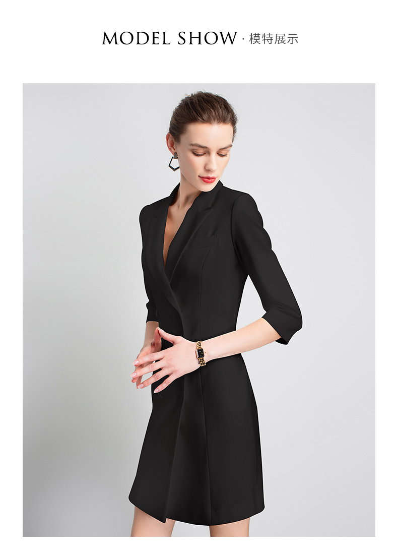IWY/黑色七分袖职业连衣裙显瘦轻奢员工服时尚制服工作装上镜Q14096B