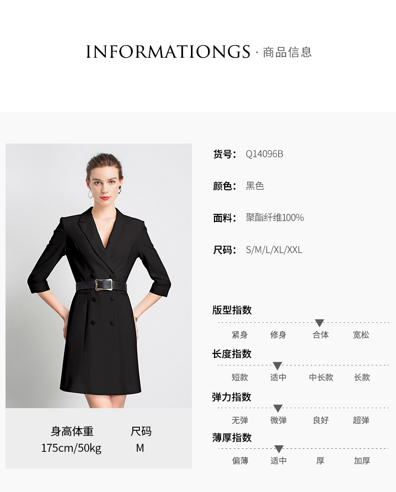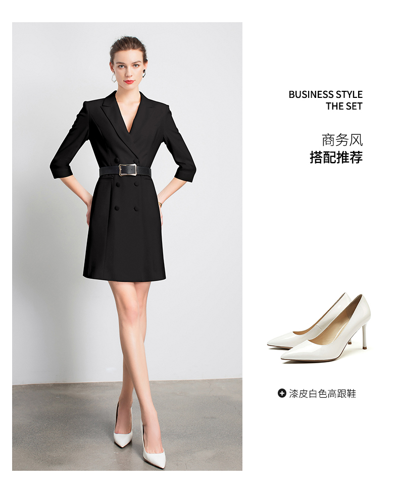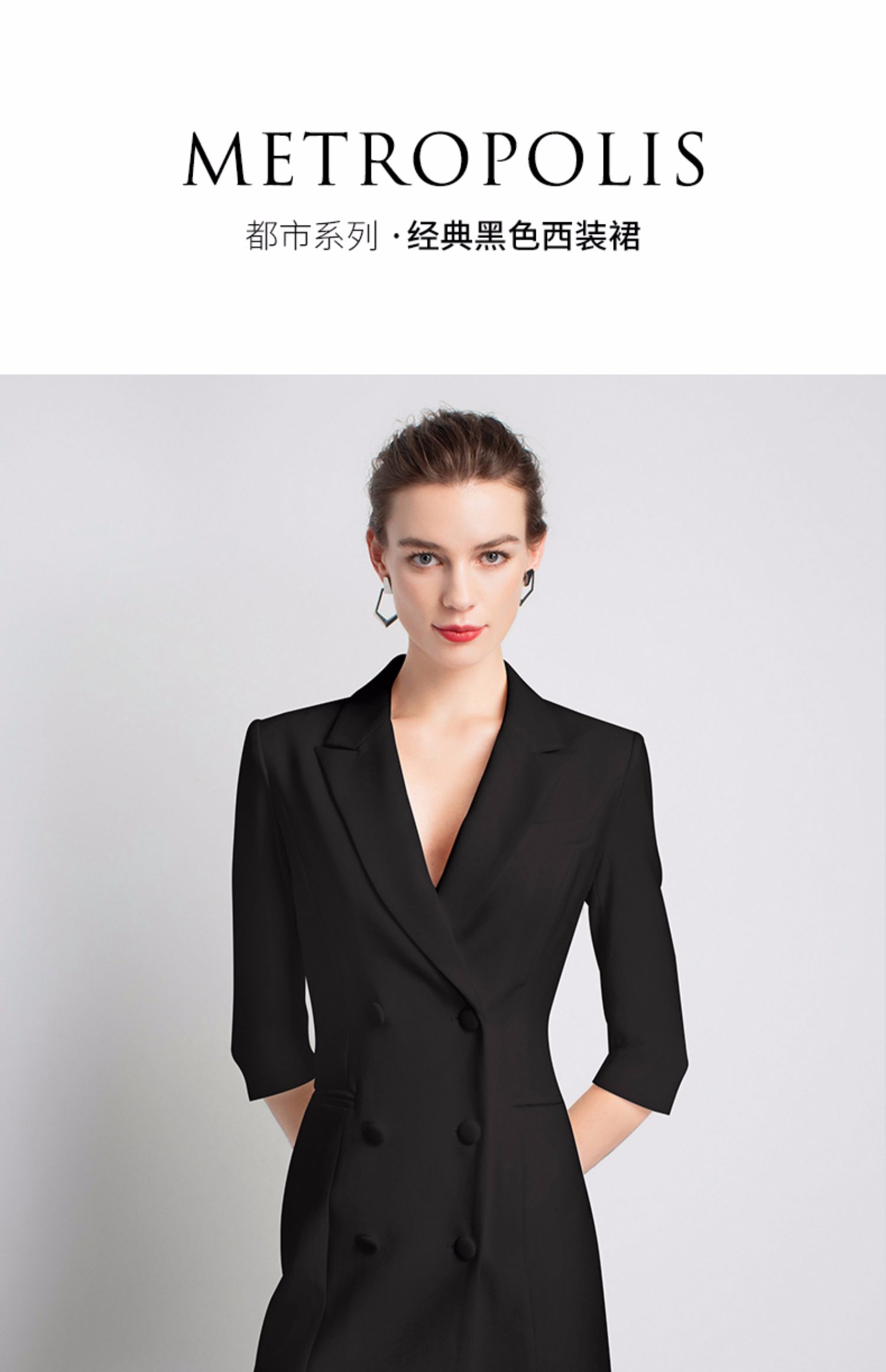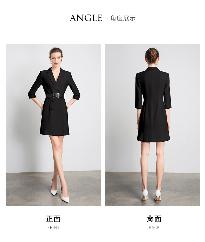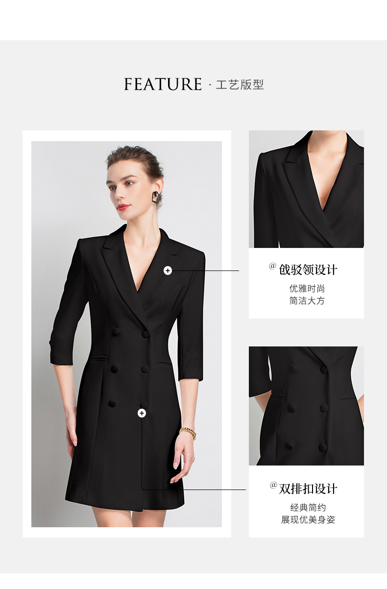 IWY/黑色七分袖职业连衣裙显瘦轻奢员工服时尚制服工作装上镜Q14096B
