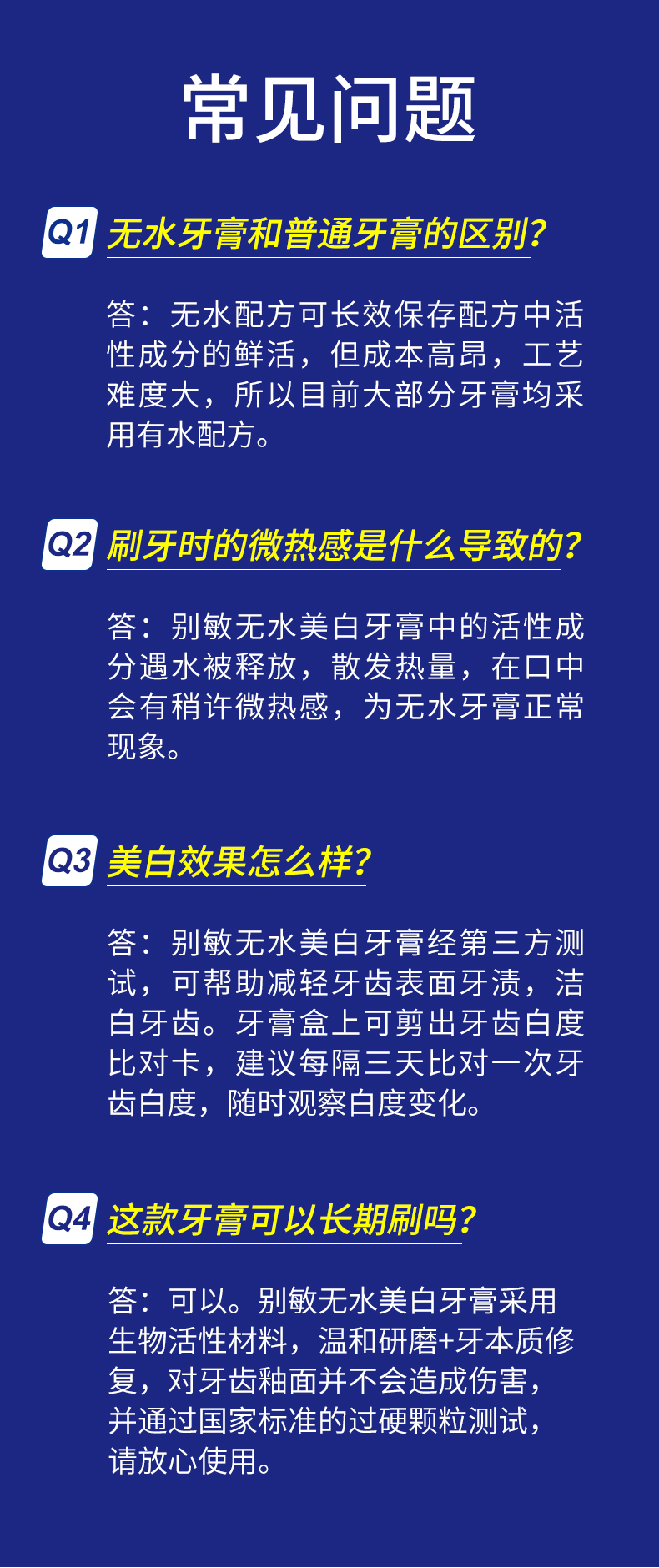 1、本品使用时会有微热感觉,为无水牙膏正常现象