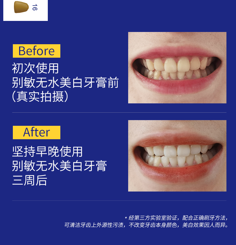 3、本产品不适用于儿童,不属于儿童牙,儿童不建议使用