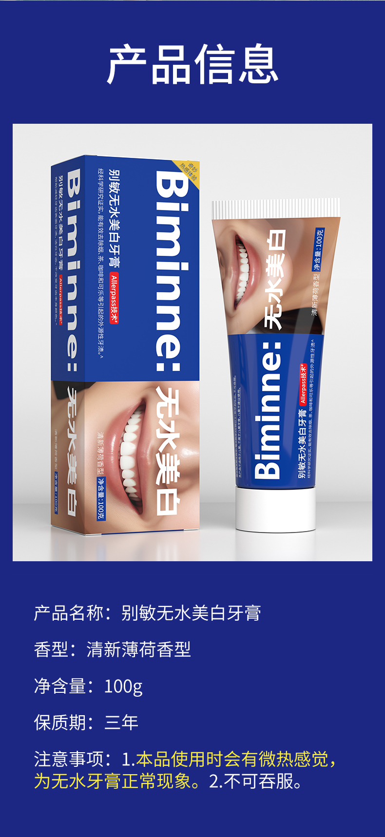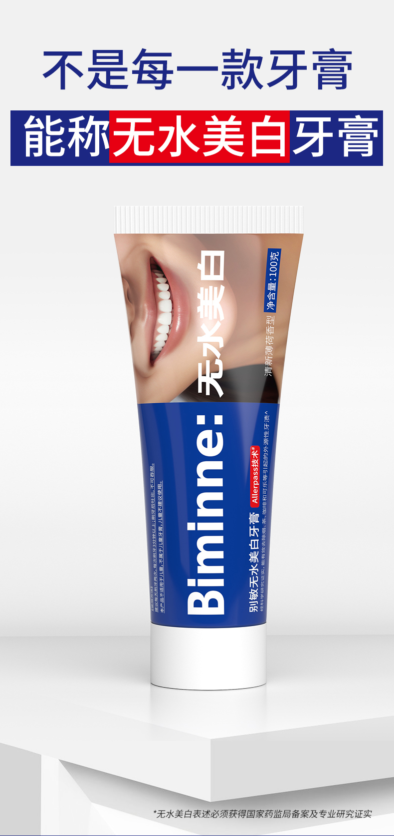 【牙膏界的“烟酰胺”】Biminne别敏无水美白牙膏 无水热感配方 含密集美白粒子 去渍修复亮白多效合一 100克/支