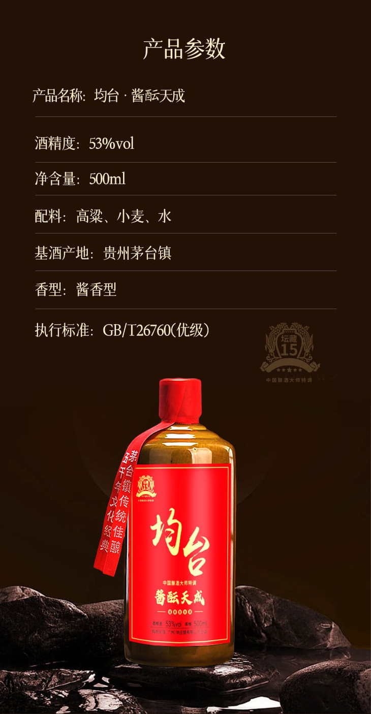 均台·酱酝天成酒 15年坤沙基酒 入口细腻回味绵长 53%vol酱香型 500ml/瓶