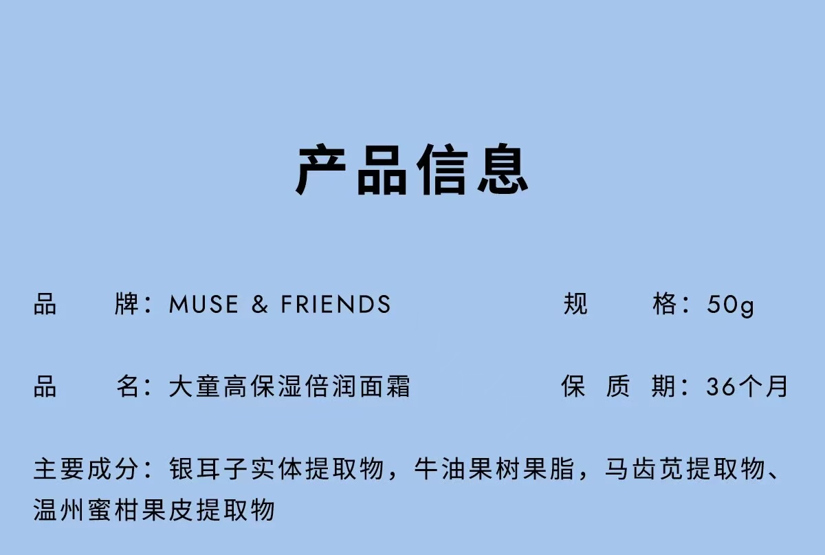 【面霜】MUSE&FRIENDS大童舒缓保湿滋润面霜