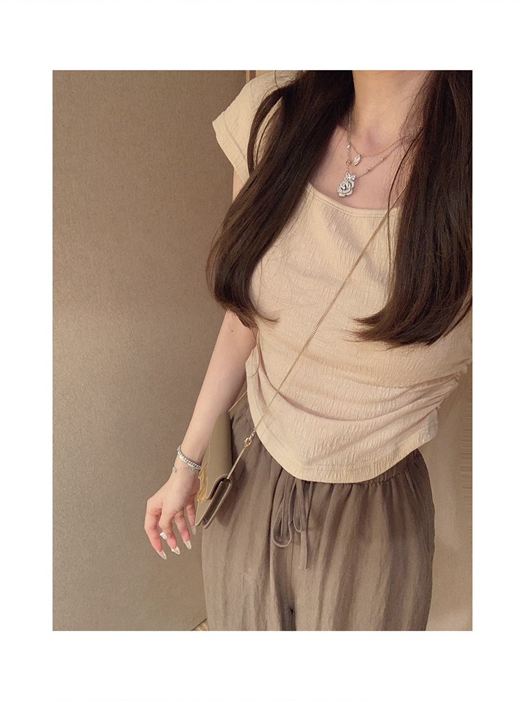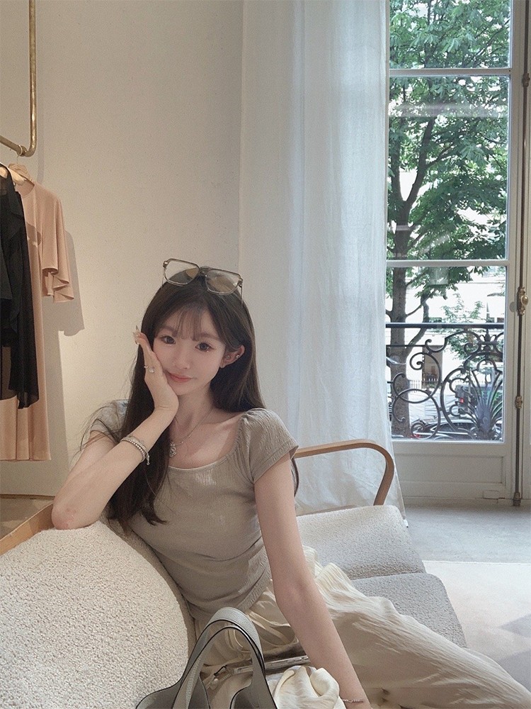 金蘑菇菇 见习爱神 版型t /巧妙版型 方领露锁骨设计感别致上衣