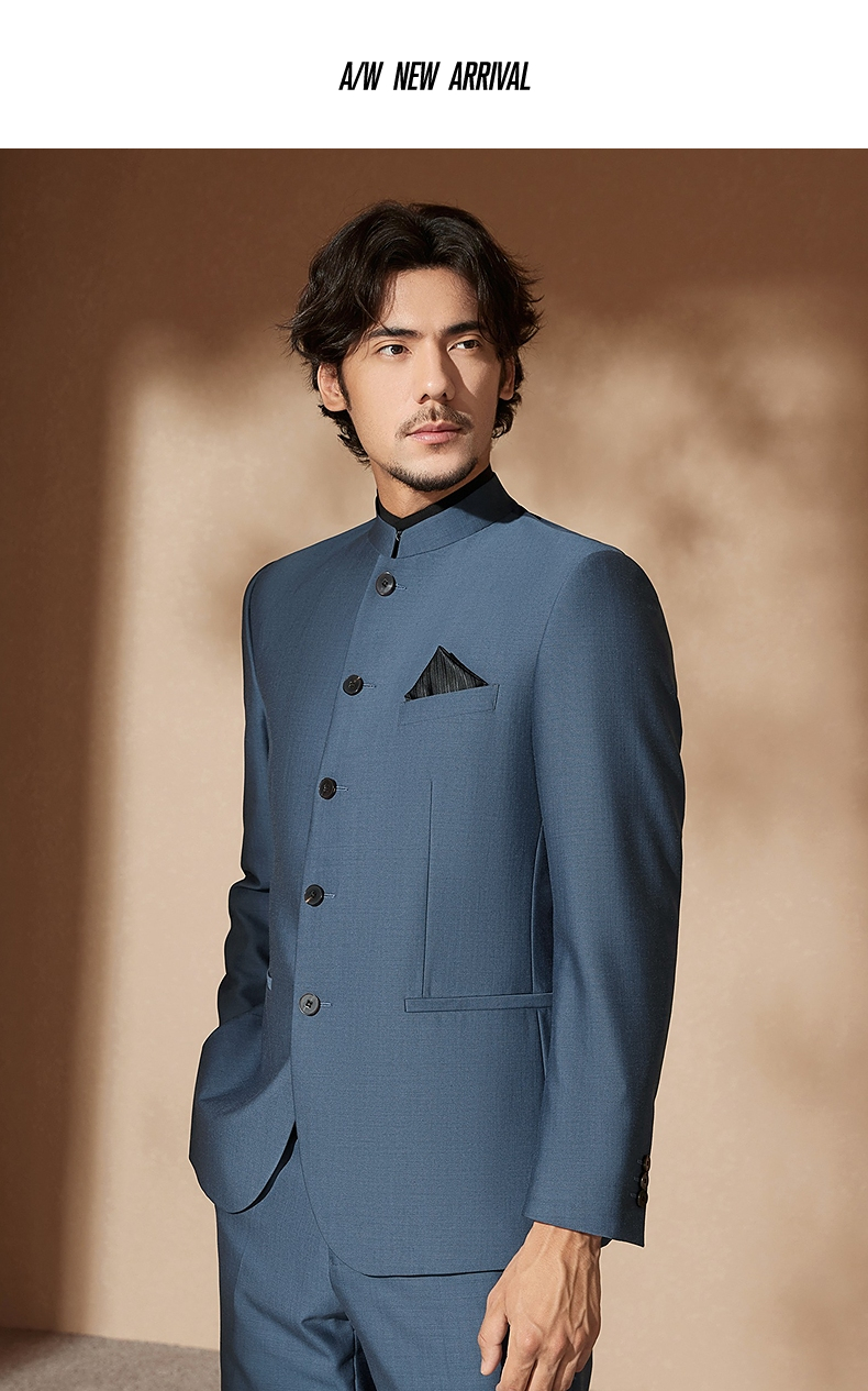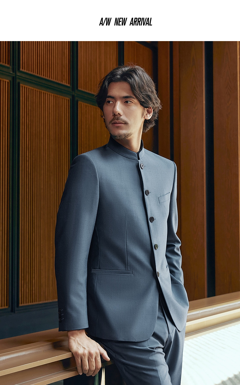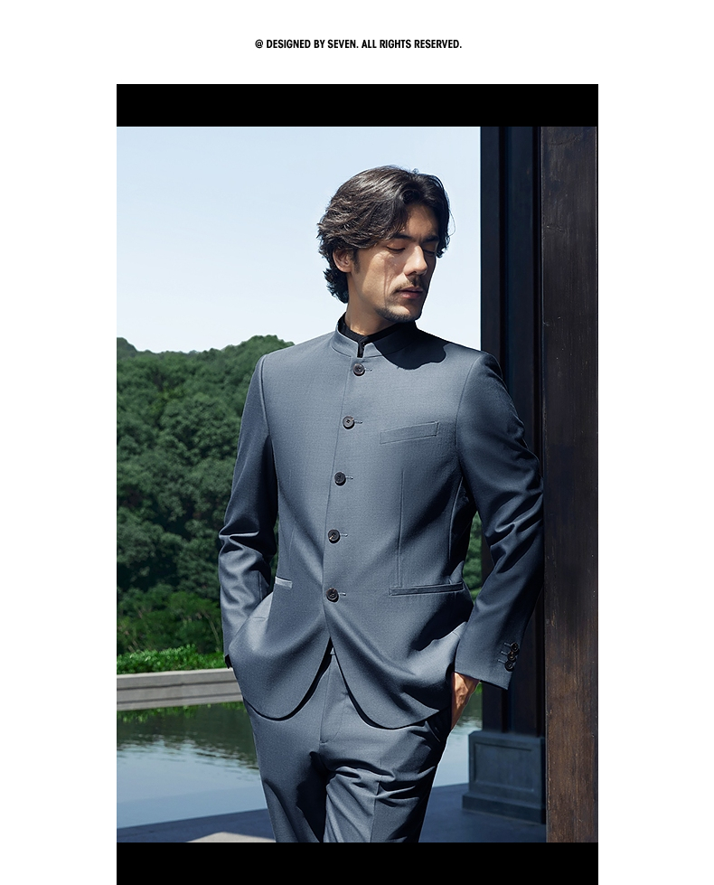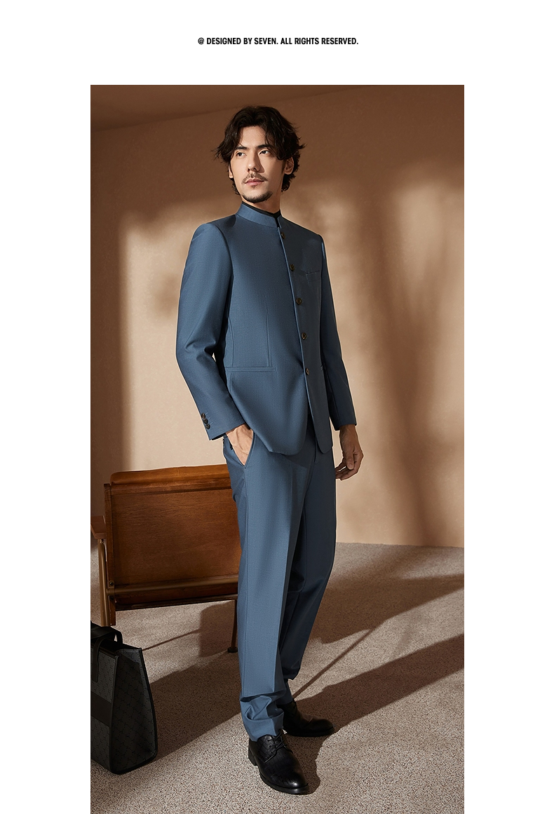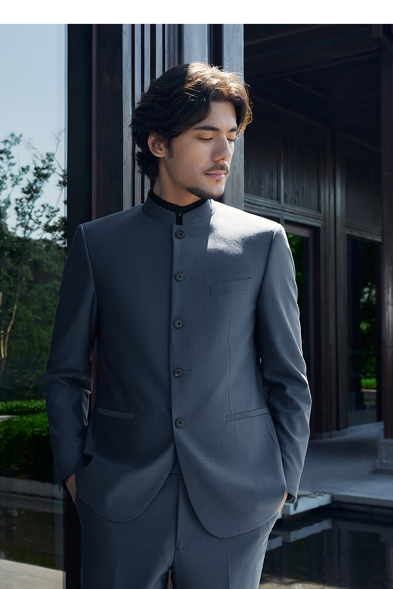 【婚礼季/毛料套西】柒牌西装套装男2025秋冬新款立领垫肩西服中山装礼服 127C71070