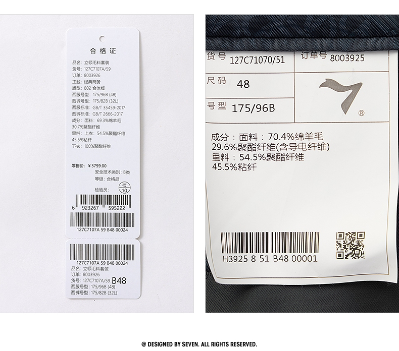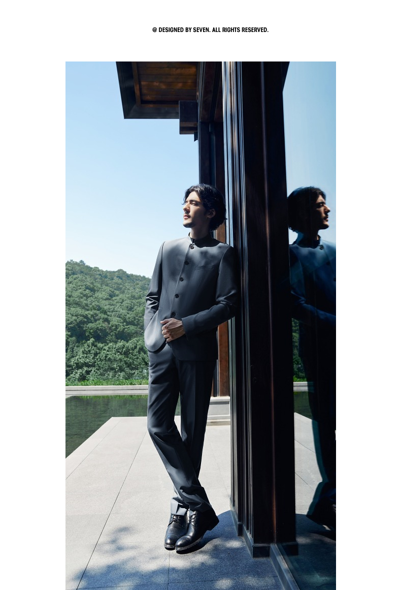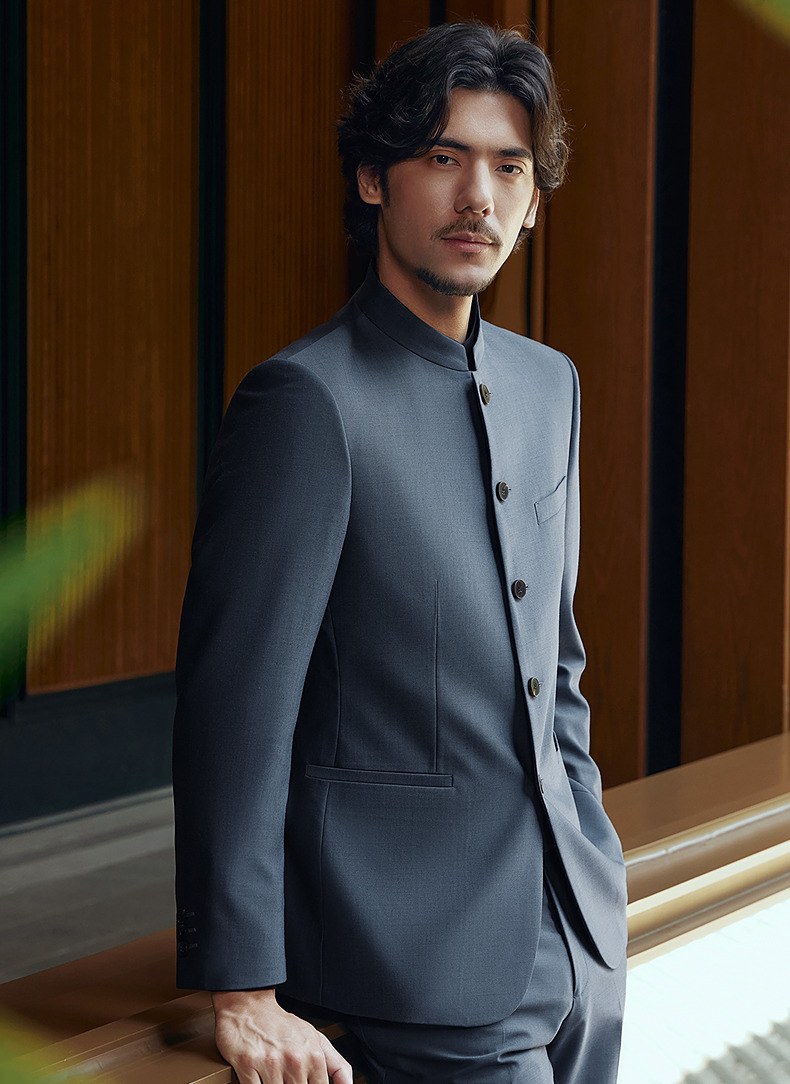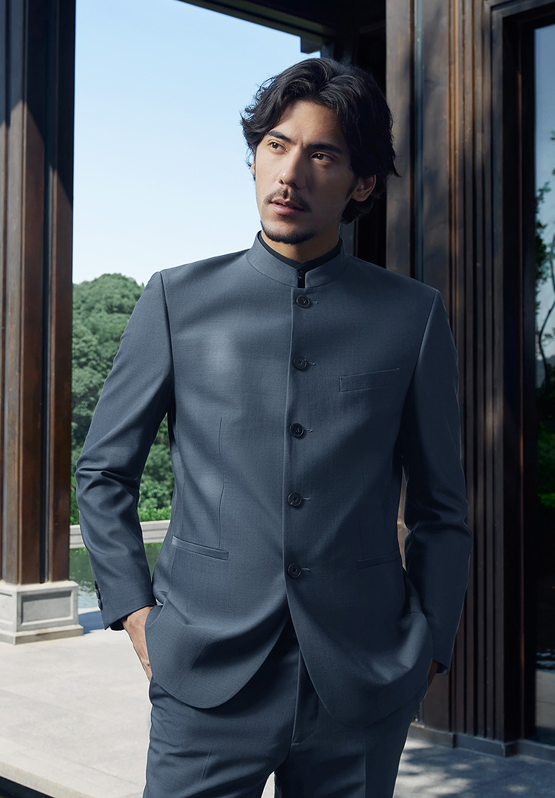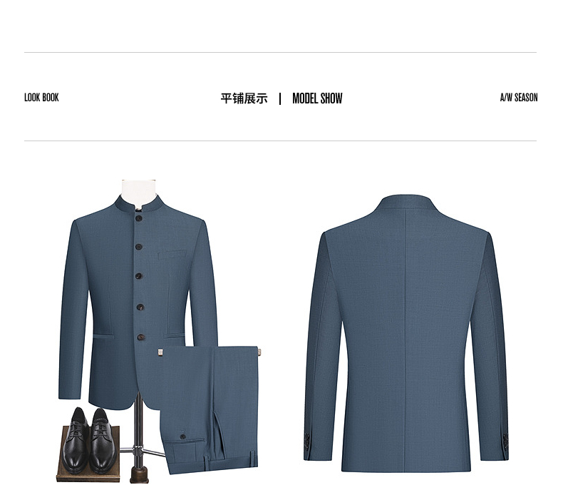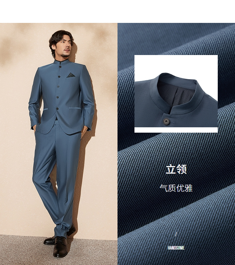 【婚礼季/毛料套西】柒牌西装套装男2025秋冬新款立领垫肩西服中山装礼服 127C71070