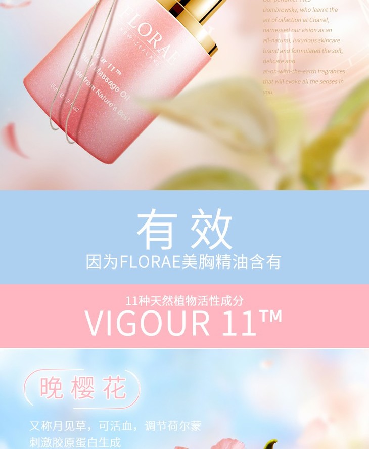 【保税仓】新西兰原装进口Florae馥洛蕾美胸精油胸部按摩护理油紧致滋润护肤