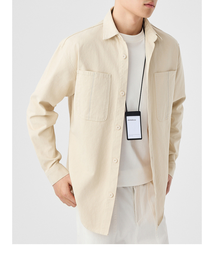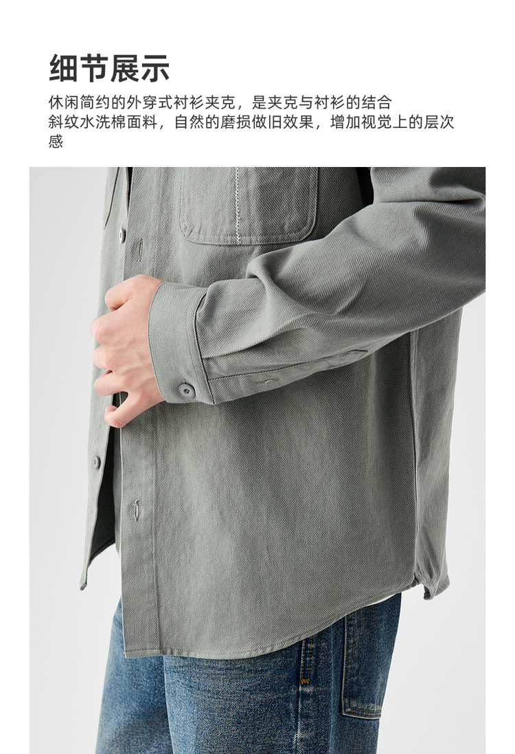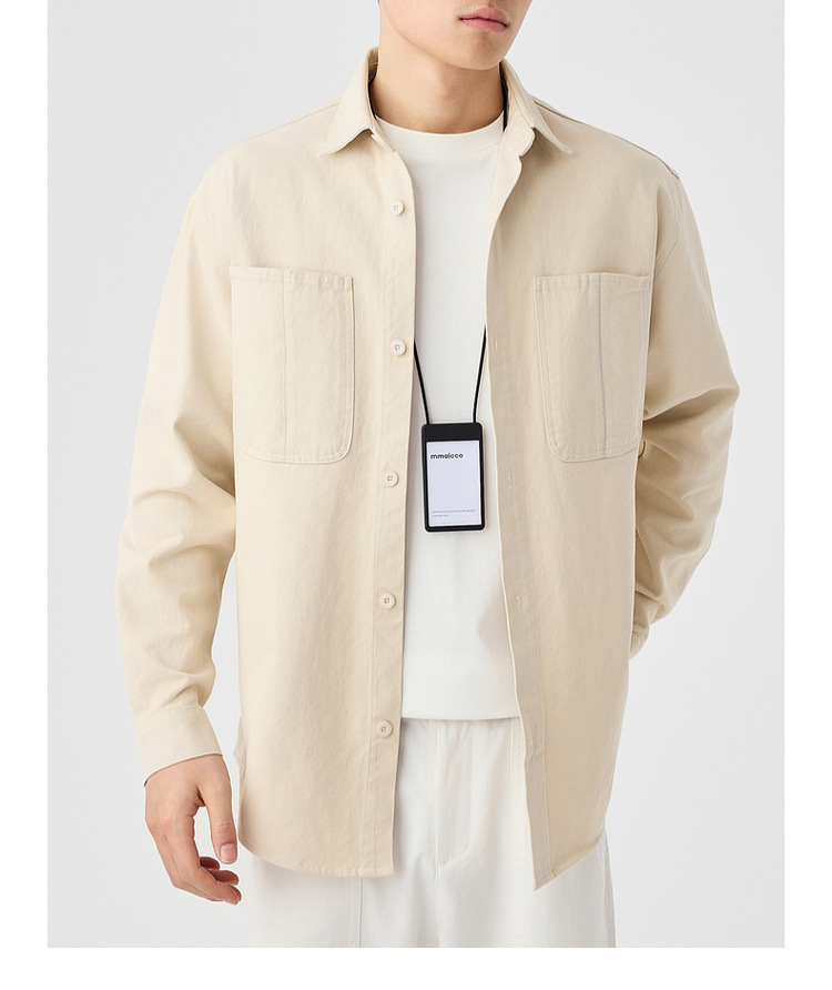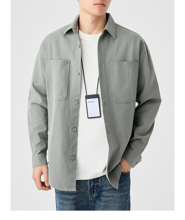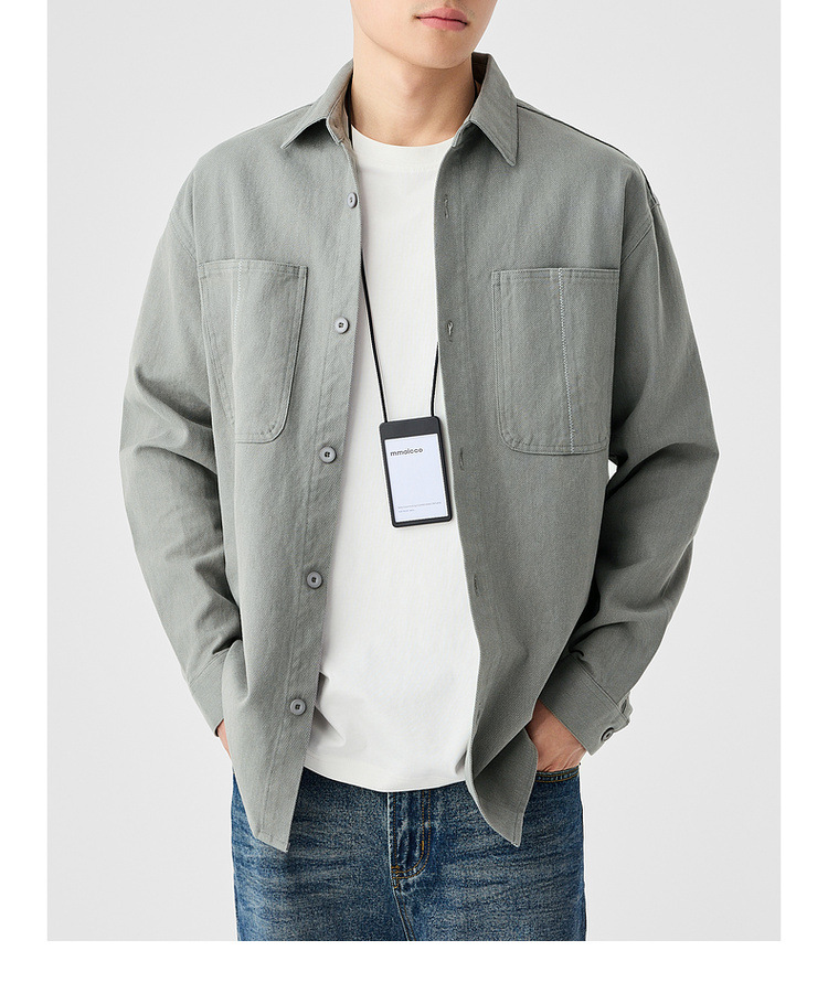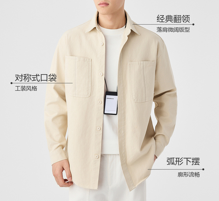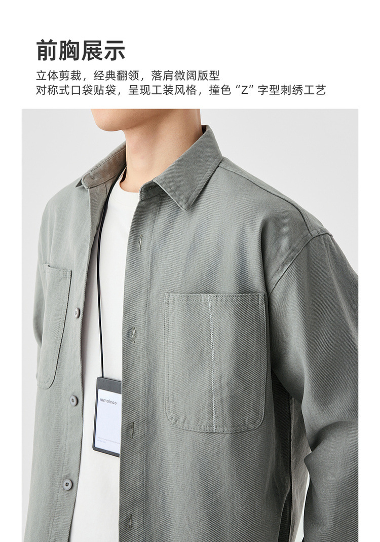 墨麦客男装斜纹水洗棉工装衬衫男2025春季新款口袋贴袋衬衣50312