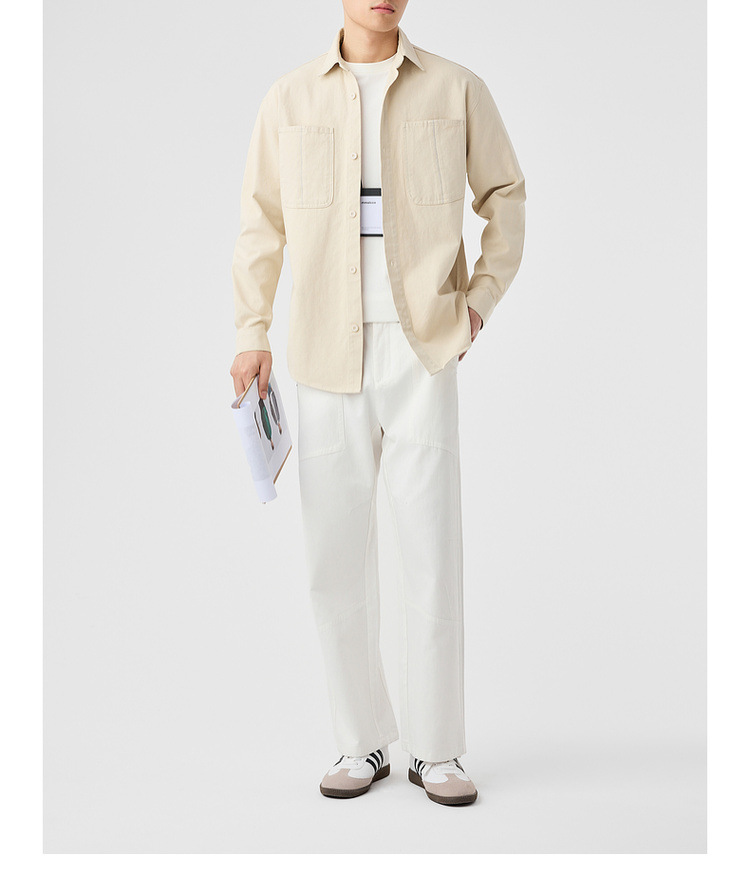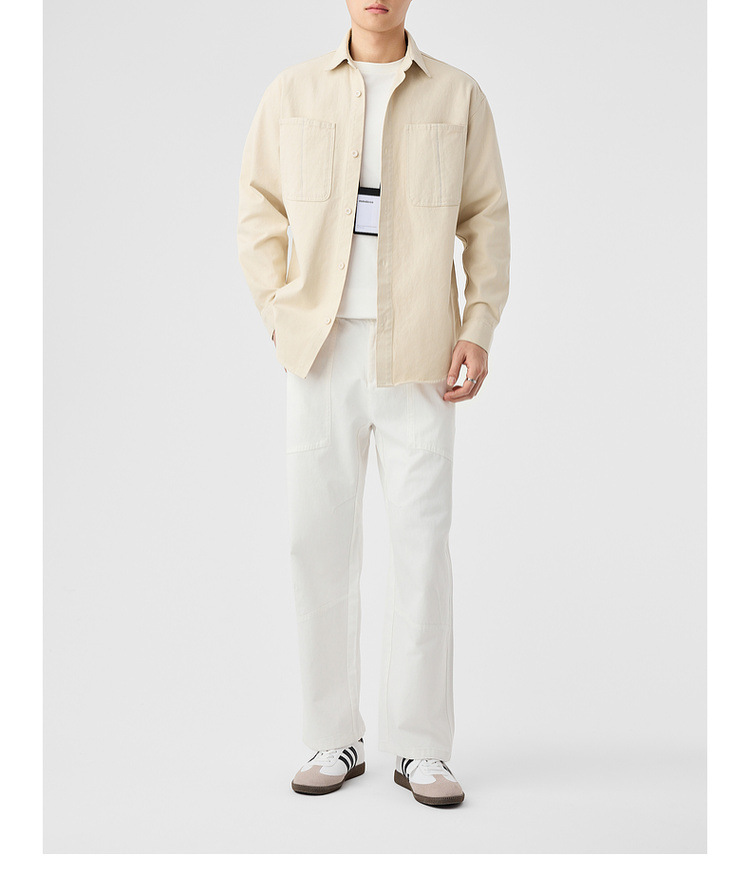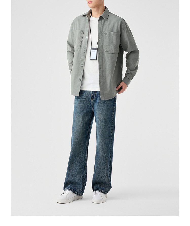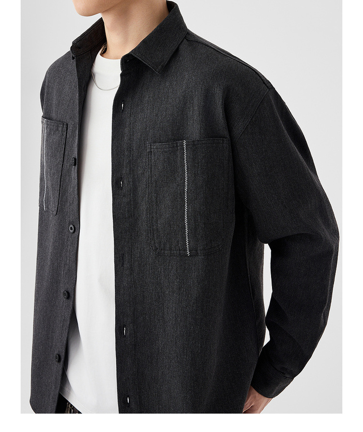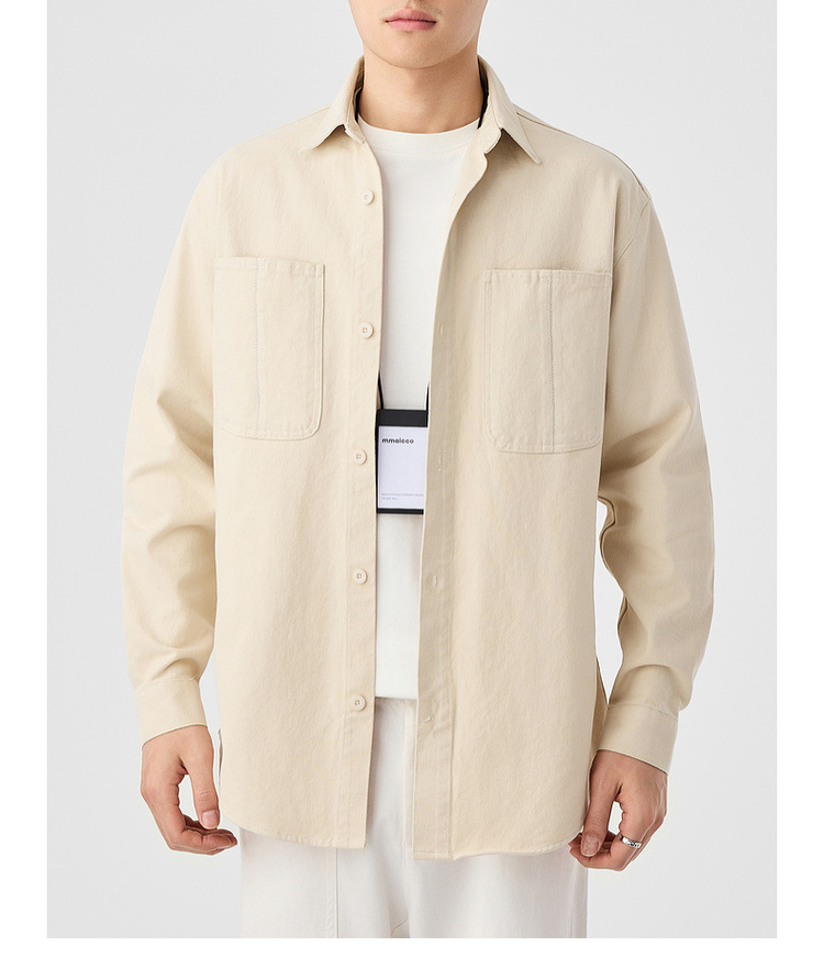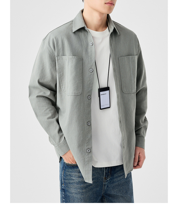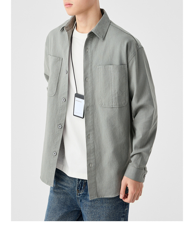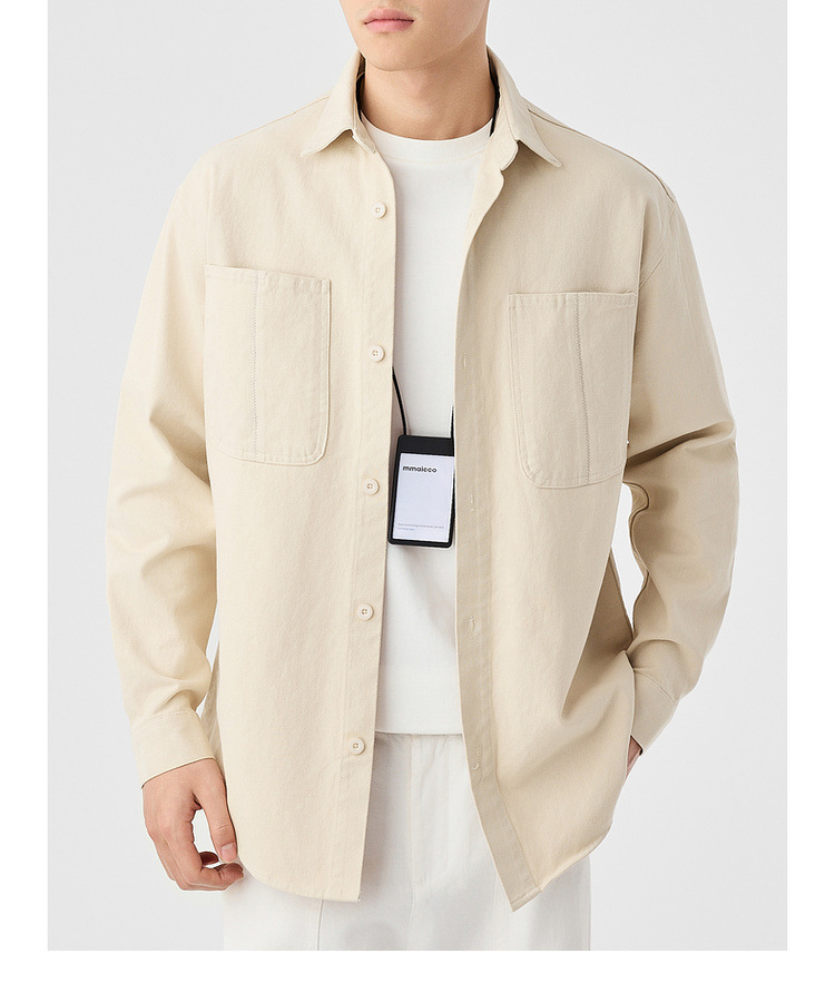 墨麦客男装斜纹水洗棉工装衬衫男2025春季新款口袋贴袋衬衣50312