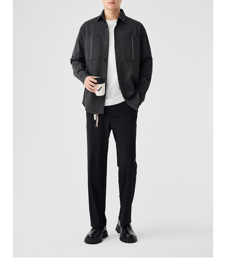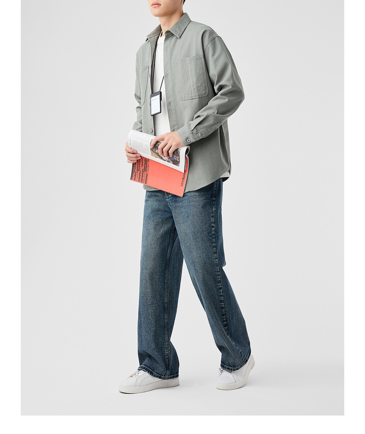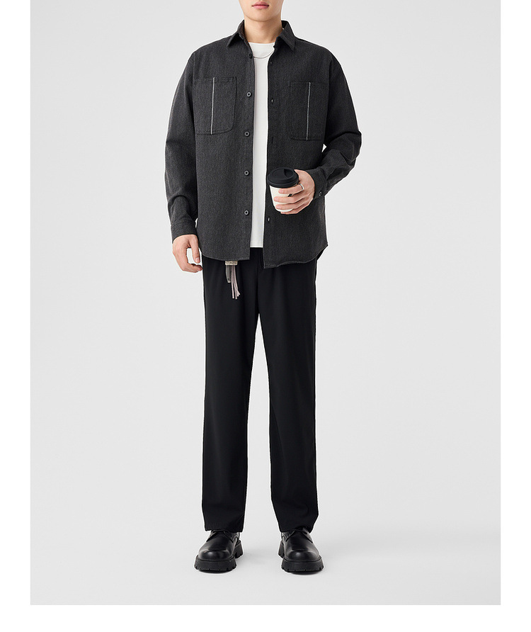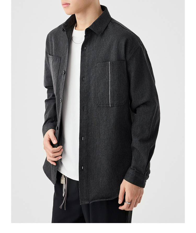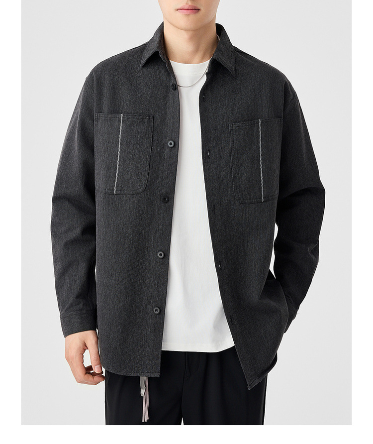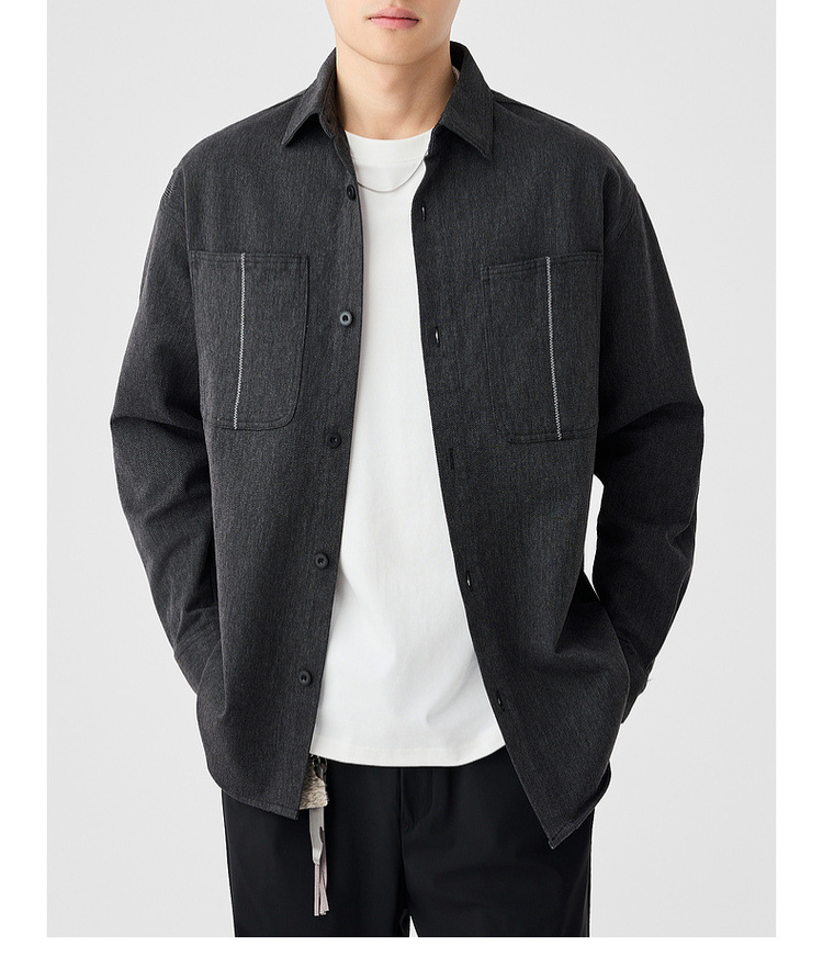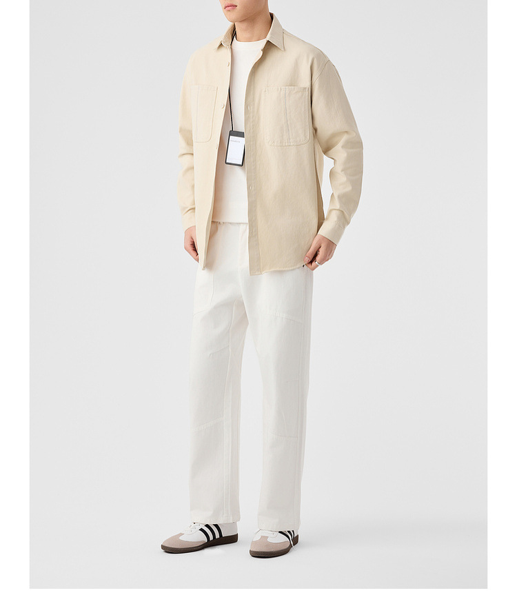 墨麦客男装斜纹水洗棉工装衬衫男2025春季新款口袋贴袋衬衣50312
