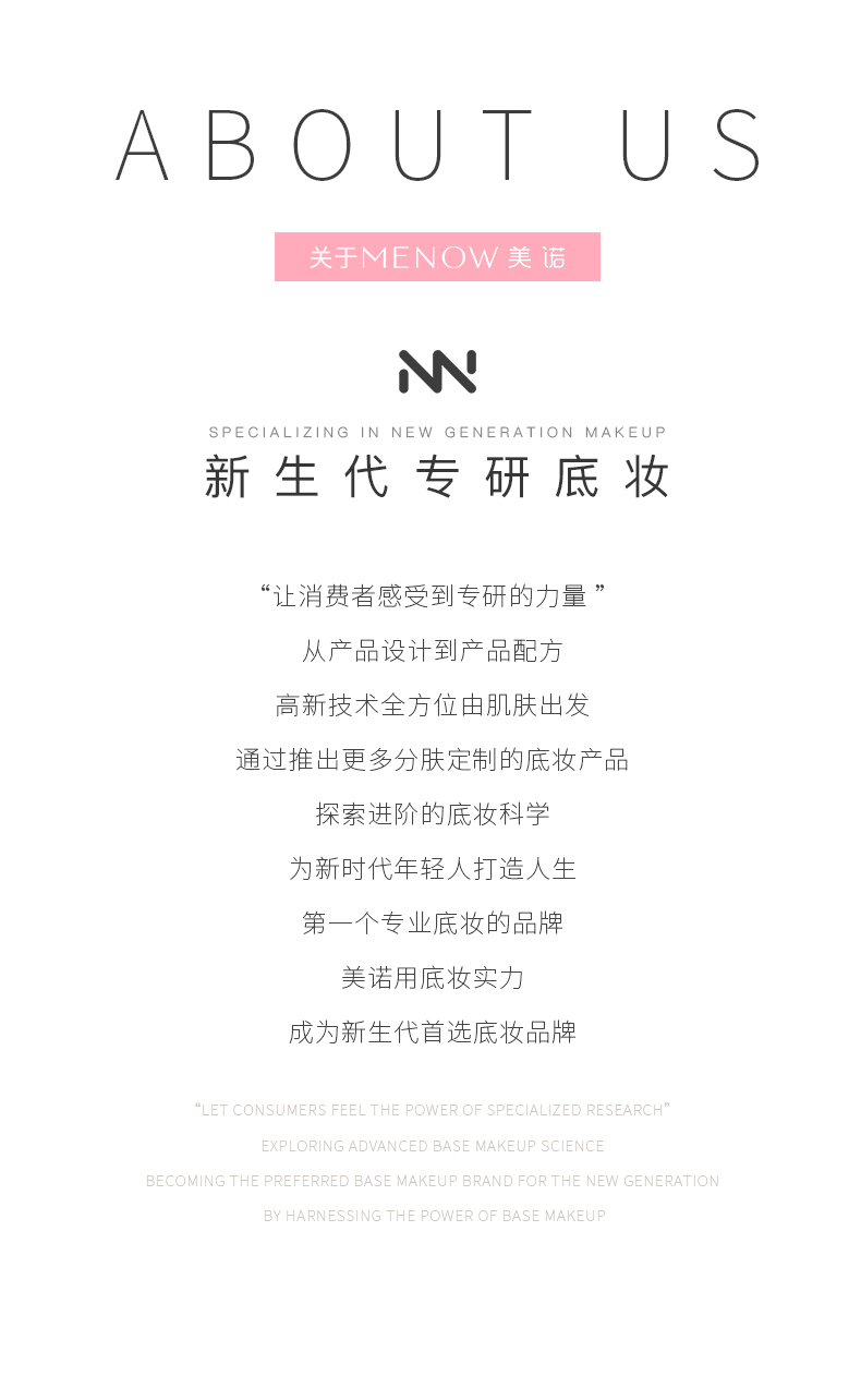 - 全球性彩妆品牌,专注开发高品质的适用性美妆产品。拥有20多年美妆经验,产品远销欧美等80多个国家。美诺彩妆致力于给用户带来“爱与美,年轻,不一样的品质彩妆体验”。